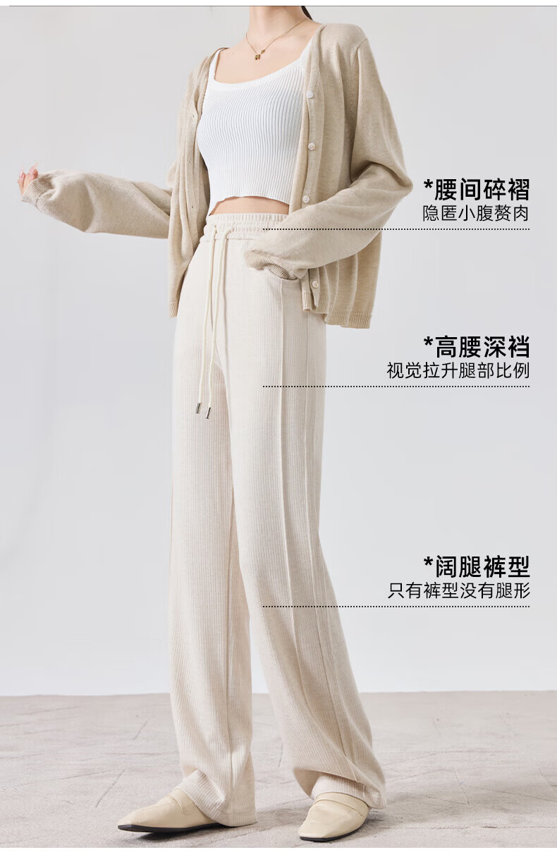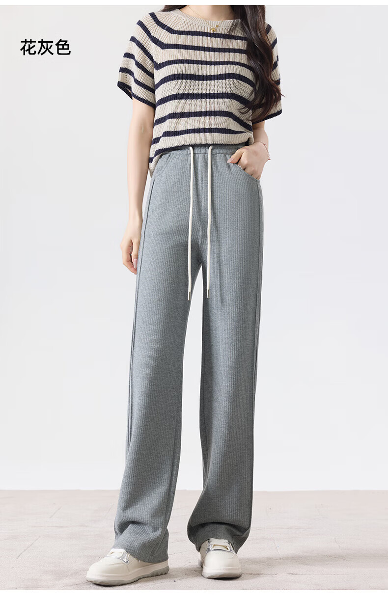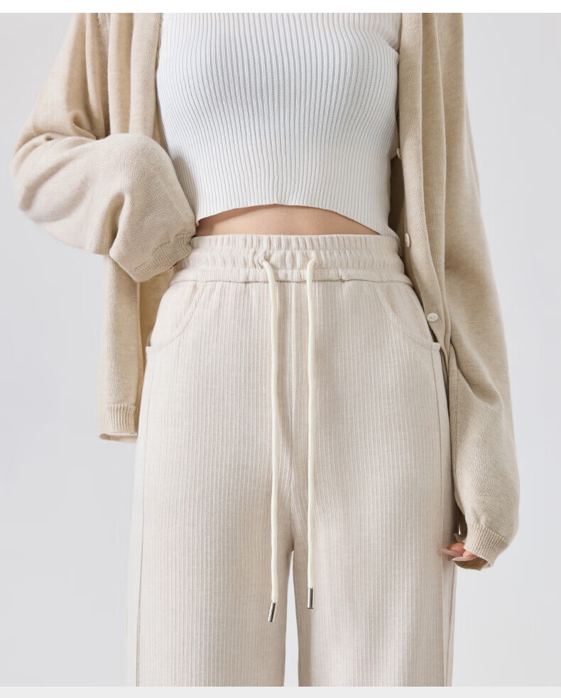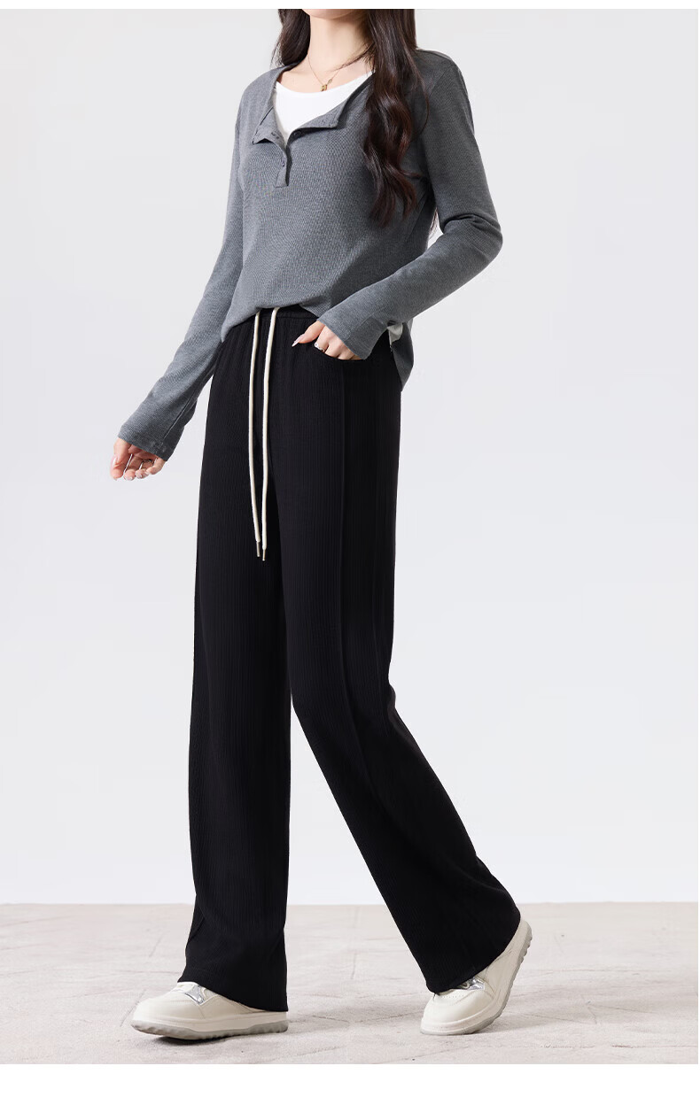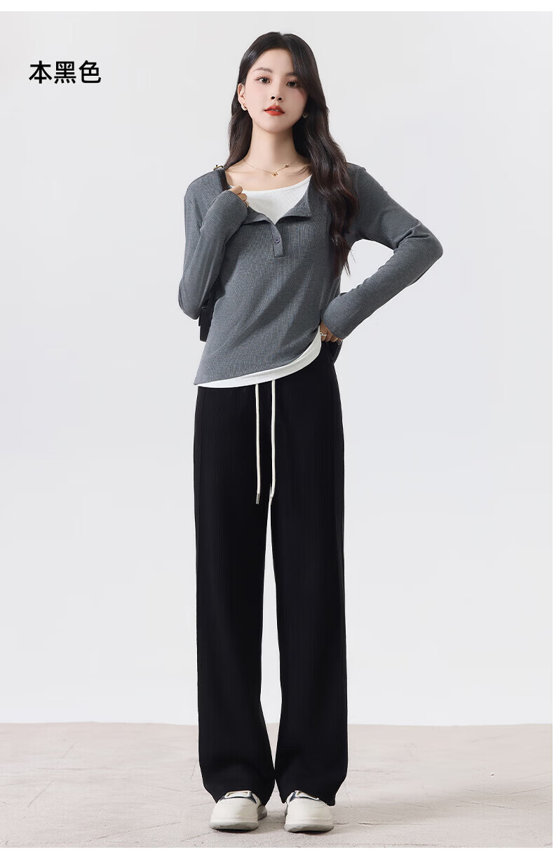 浪莎窄版直筒裤女春秋季2026新款高腰显瘦垂感小个子休闲运动阔腿裤子 奶杏色 【春秋款】 L 【适合116-130斤】