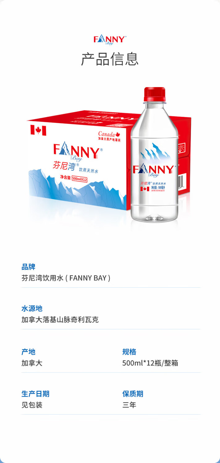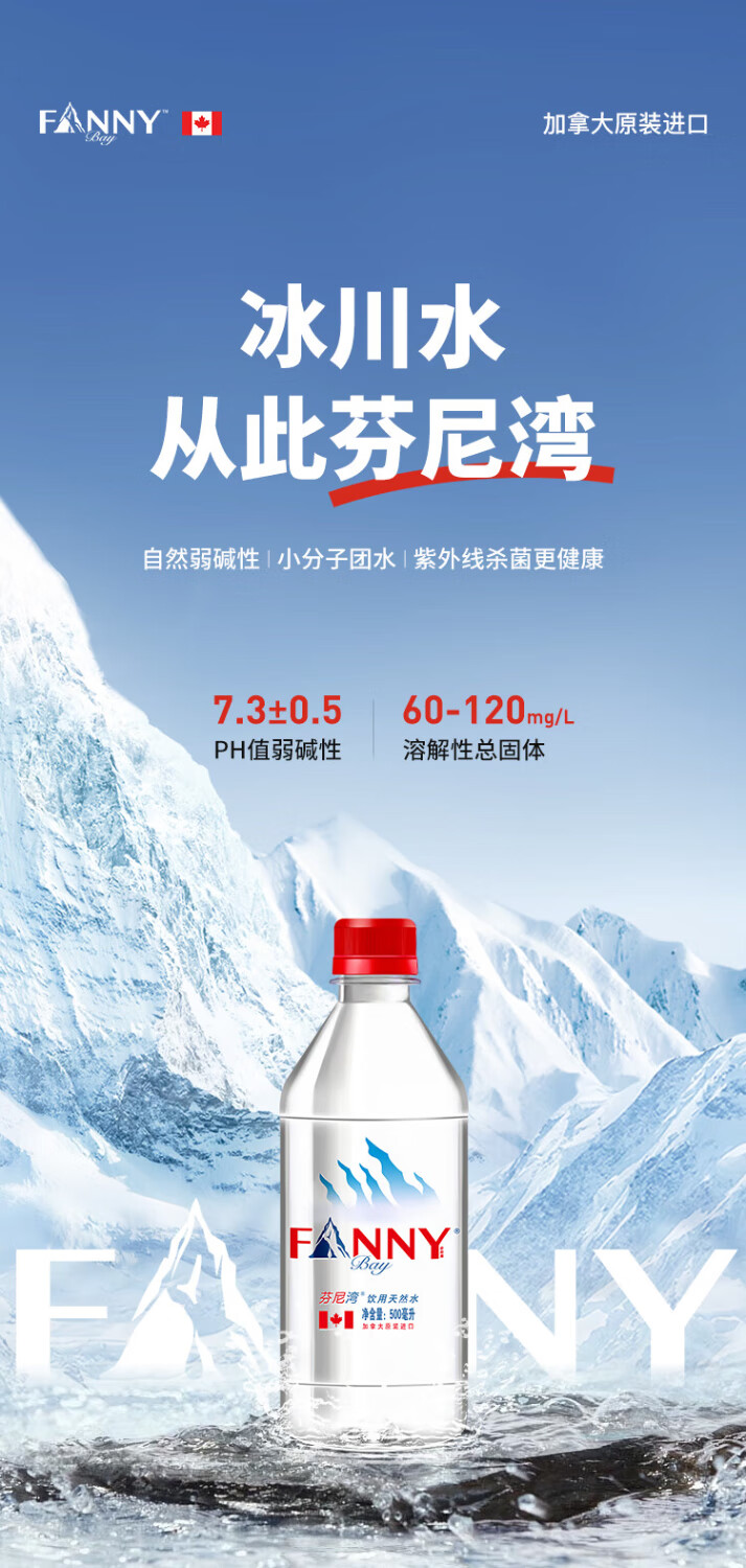 芬尼湾加拿大进口饮用天然水500ml*12瓶弱碱性小瓶整箱办公超市 (500ml*12瓶/箱)拍2箱送一箱