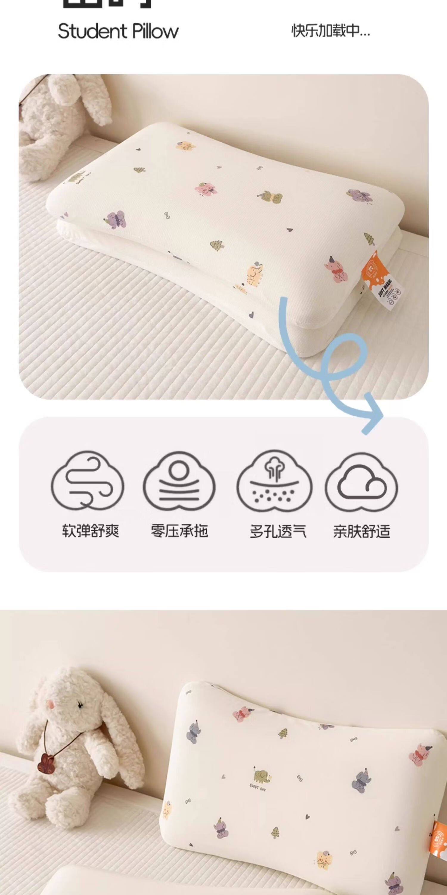 阿尔皮纳袋鼠儿童深睡记忆枕护颈椎枕慢回弹一对装小枕头学生宿舍单人一只枕芯 小象乐园【儿童顶配款】慢回弹记忆枕(单只装) 呵护宝宝脊椎发育