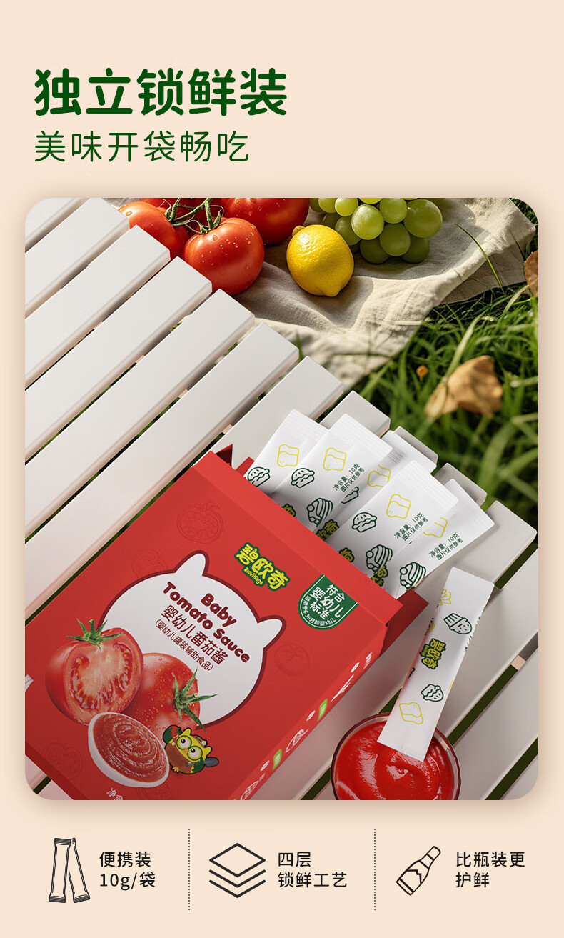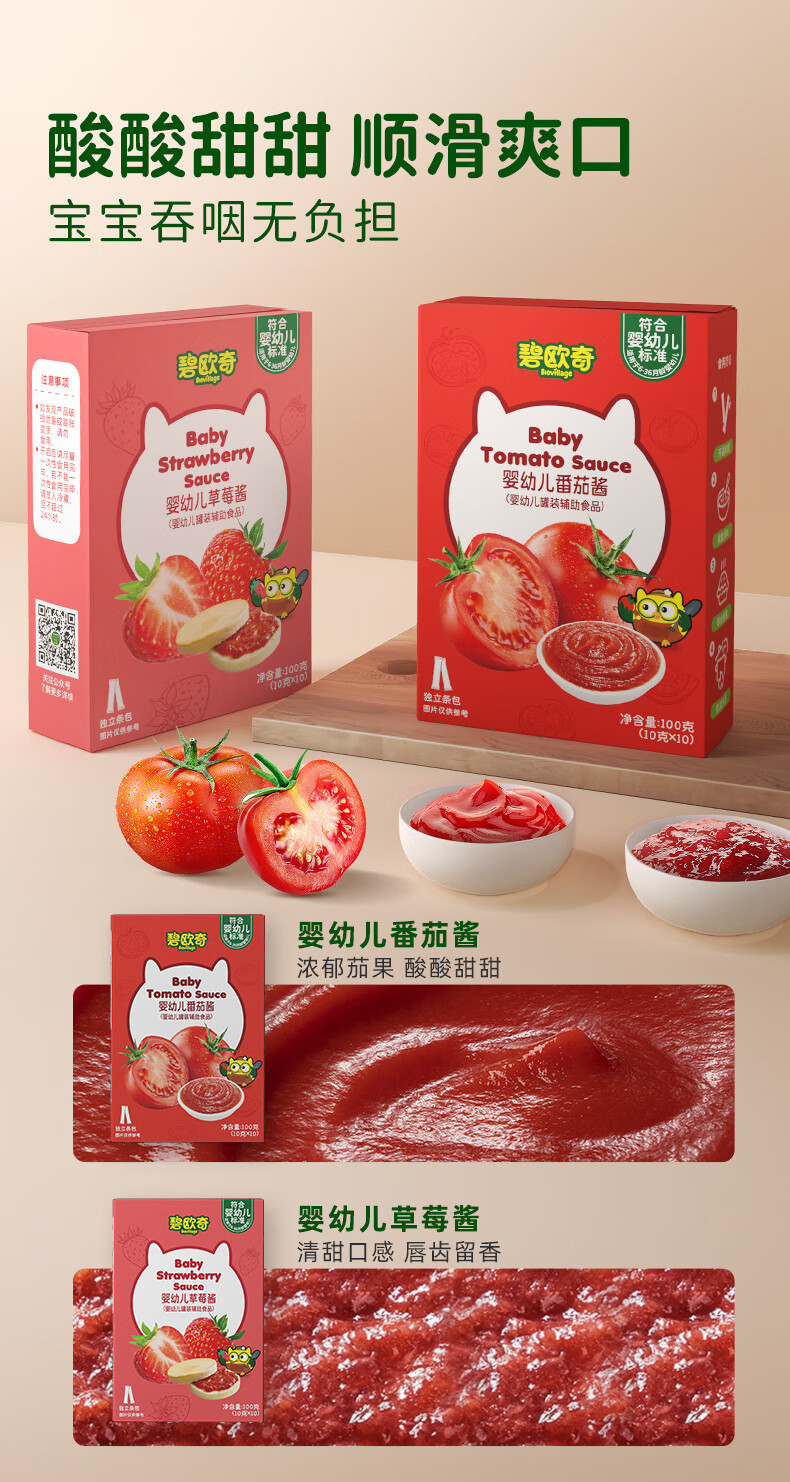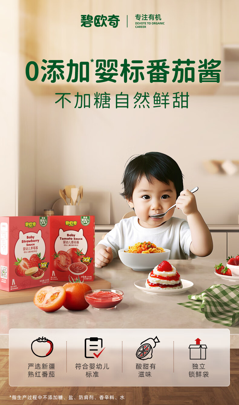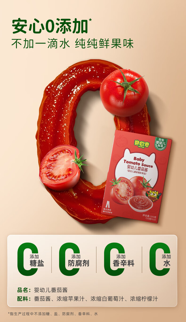 碧欧奇婴幼儿番茄酱100g 0添加宝宝儿童蘸料蕃茄拌饭酱果酱 独立袋装