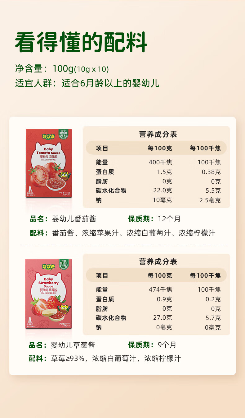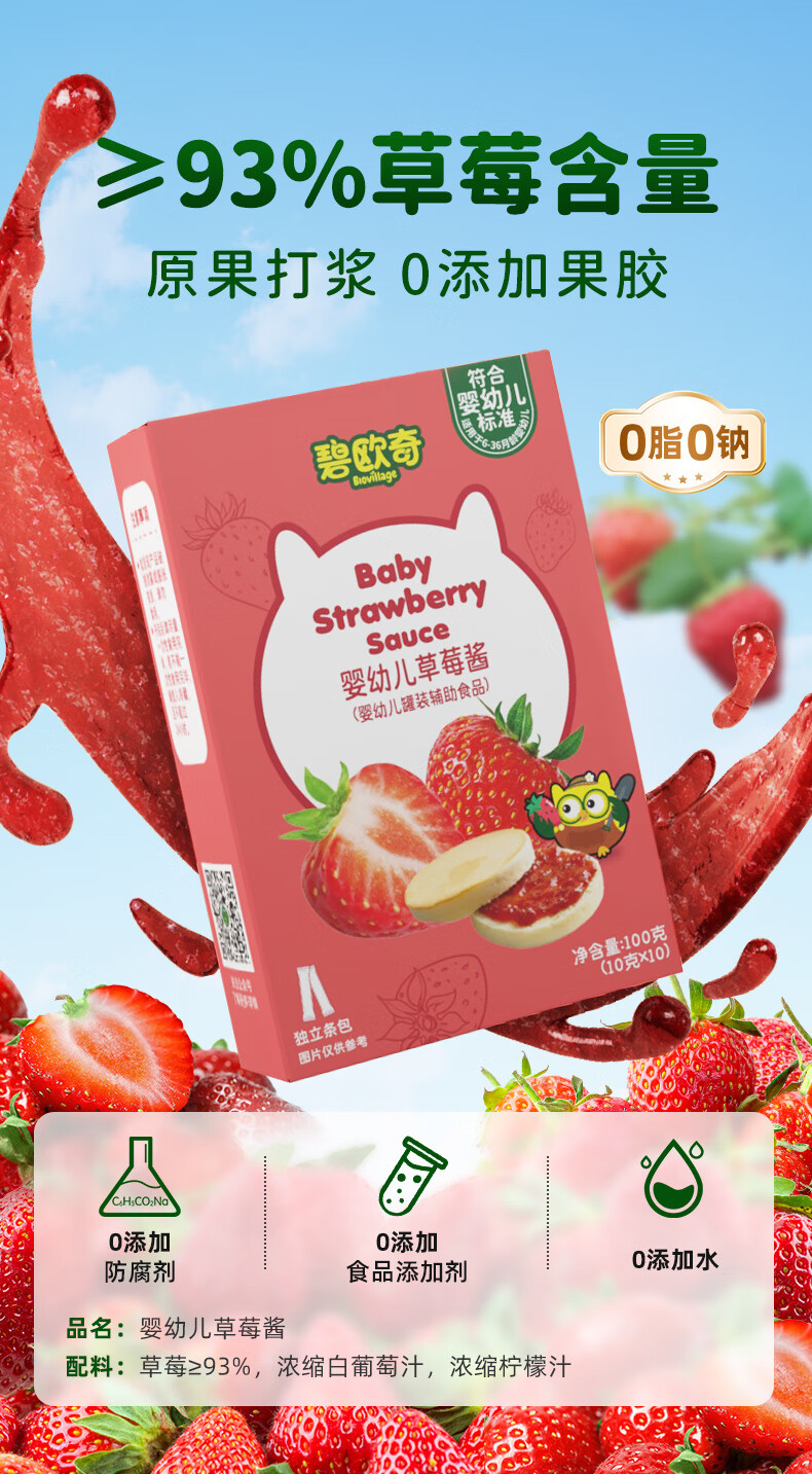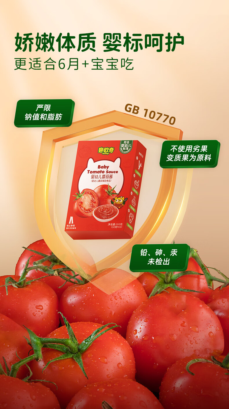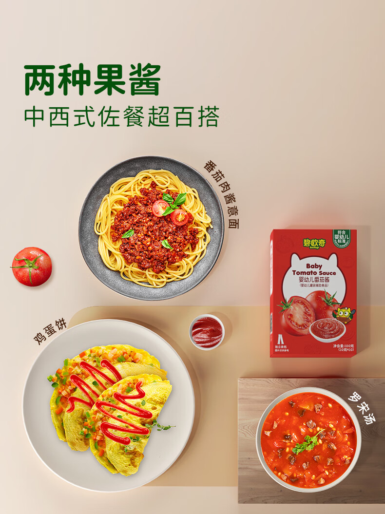 碧欧奇婴幼儿番茄酱100g 0添加宝宝儿童蘸料蕃茄拌饭酱果酱 独立袋装