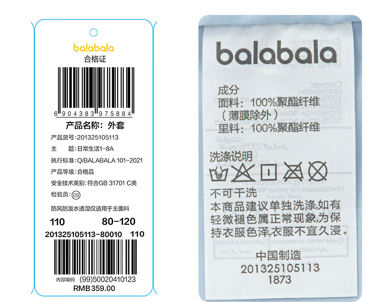 巴拉巴拉宝宝外套防风防泼水软壳衣2025秋装上衣【商场同款】201325105011
