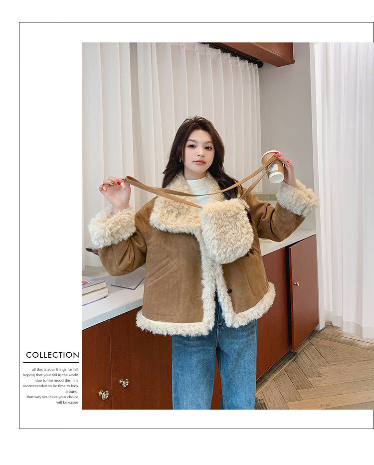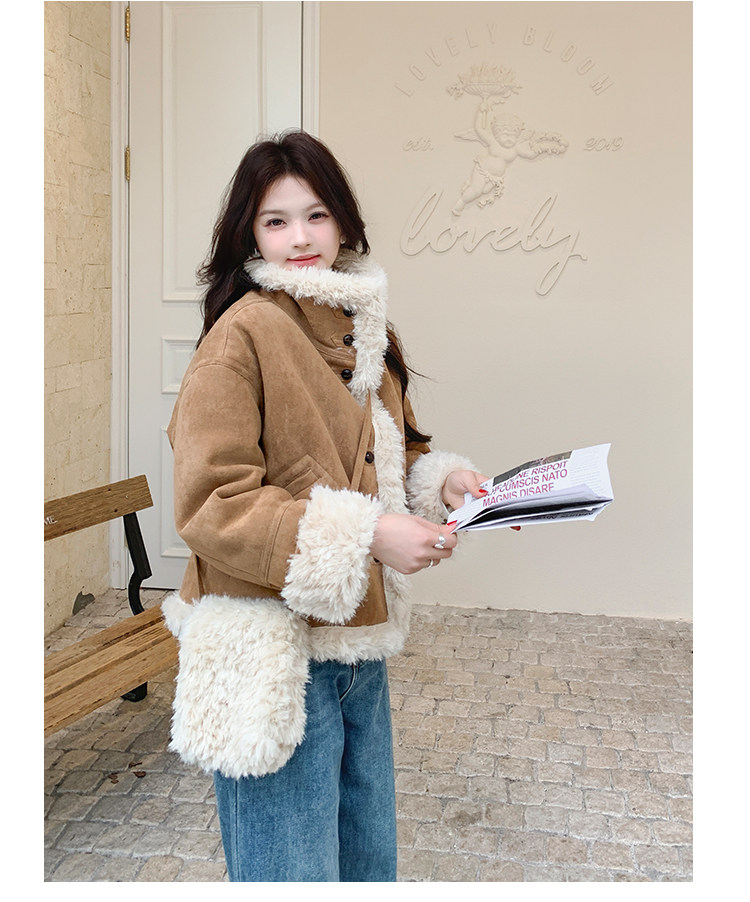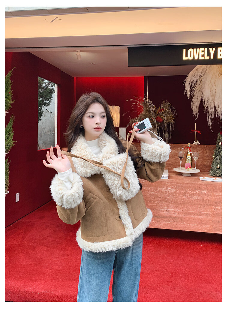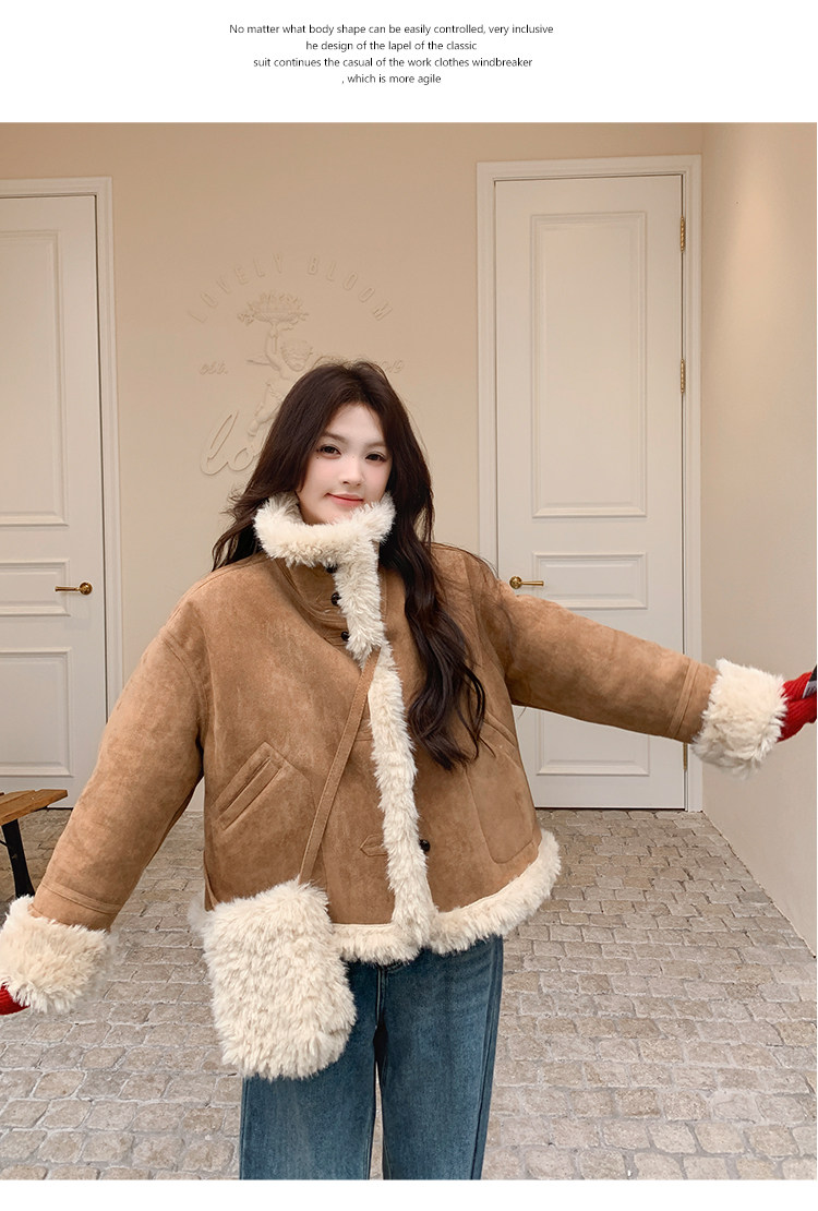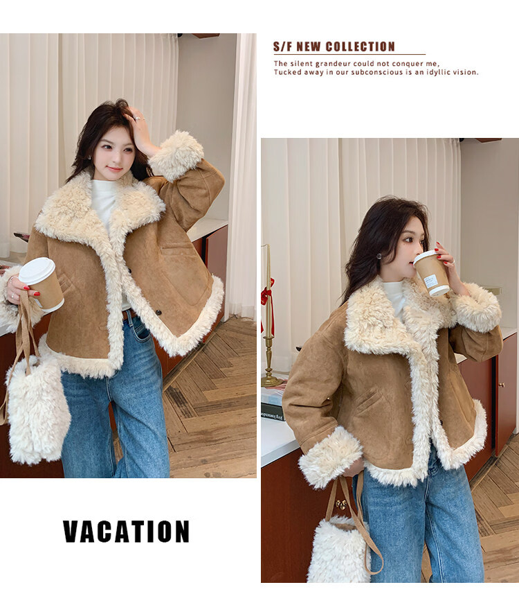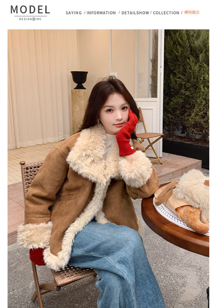 MODX羊羔毛皮毛一体外套女短款2026新款冬季加绒加厚小个子羊羔绒棉服 卡其色 S 95-110斤