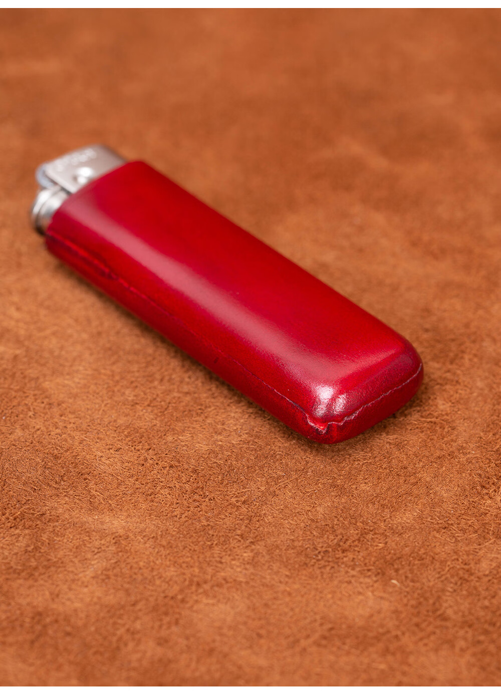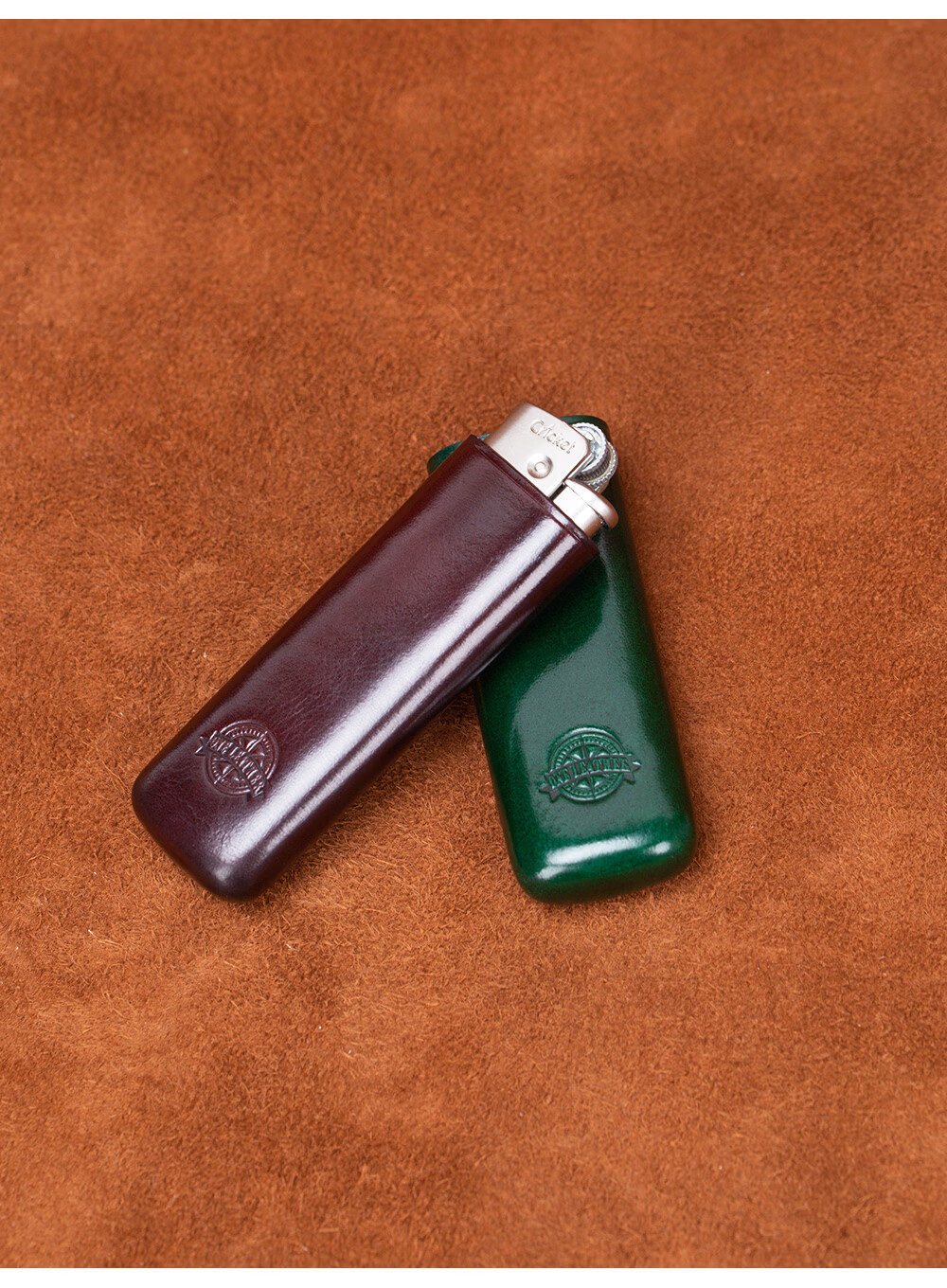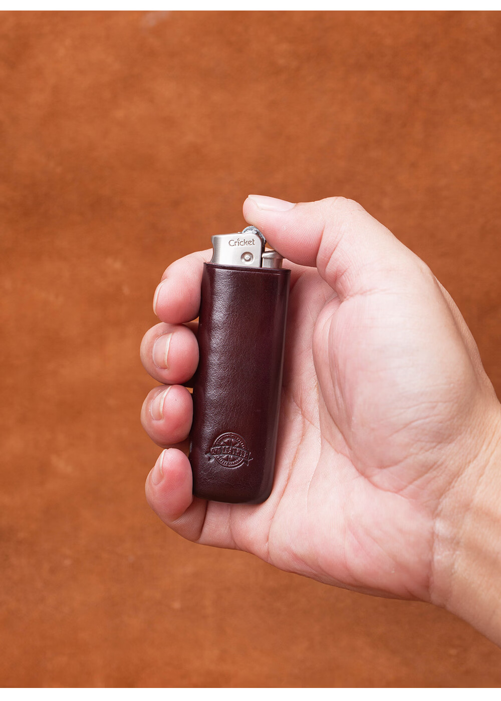 一皮(ONE LEATHER)草蜢防风充气打火机皮套 真皮手工无边距创意保护壳【微瑕疵品】 酒红色(不含打火机)