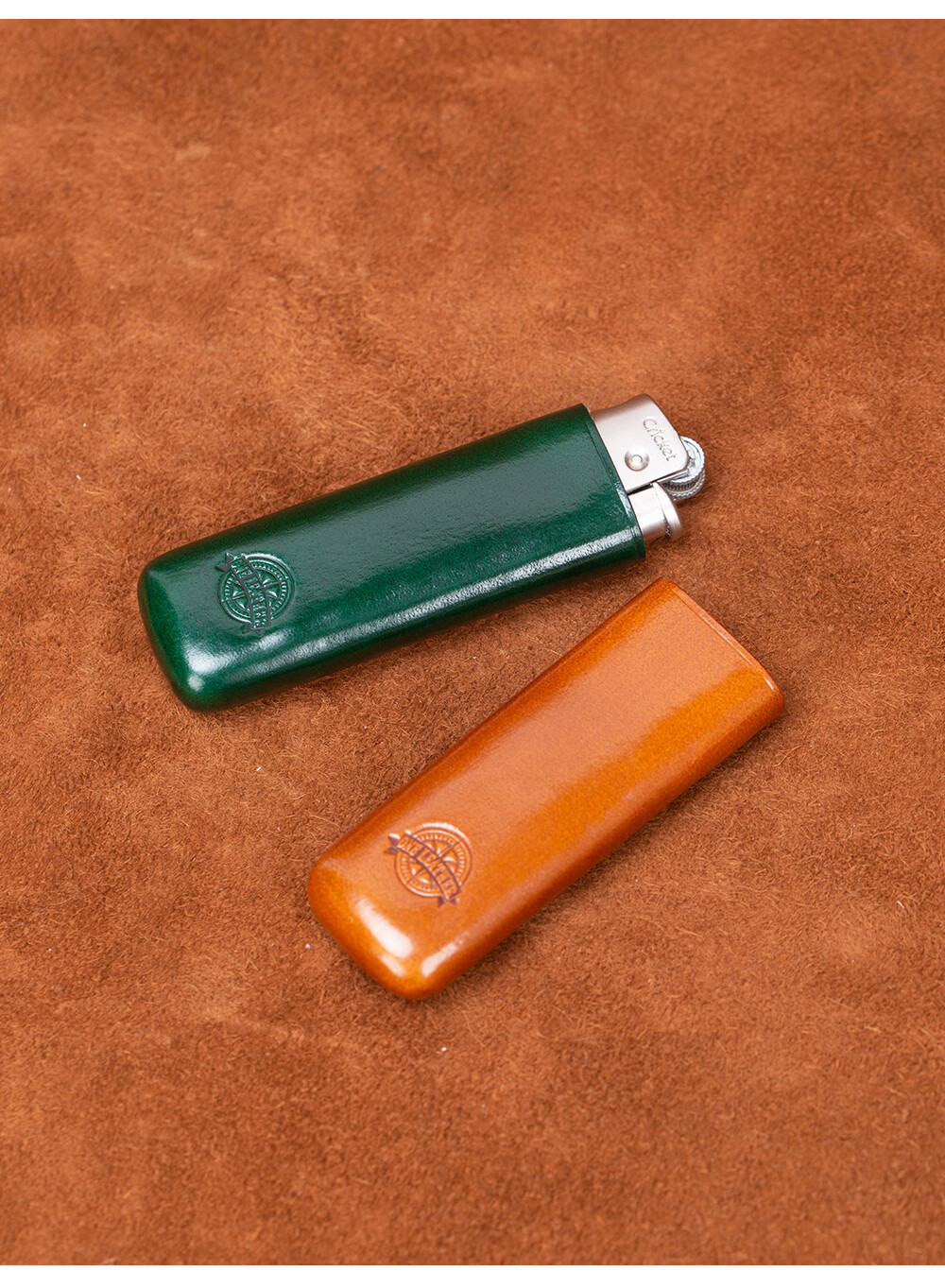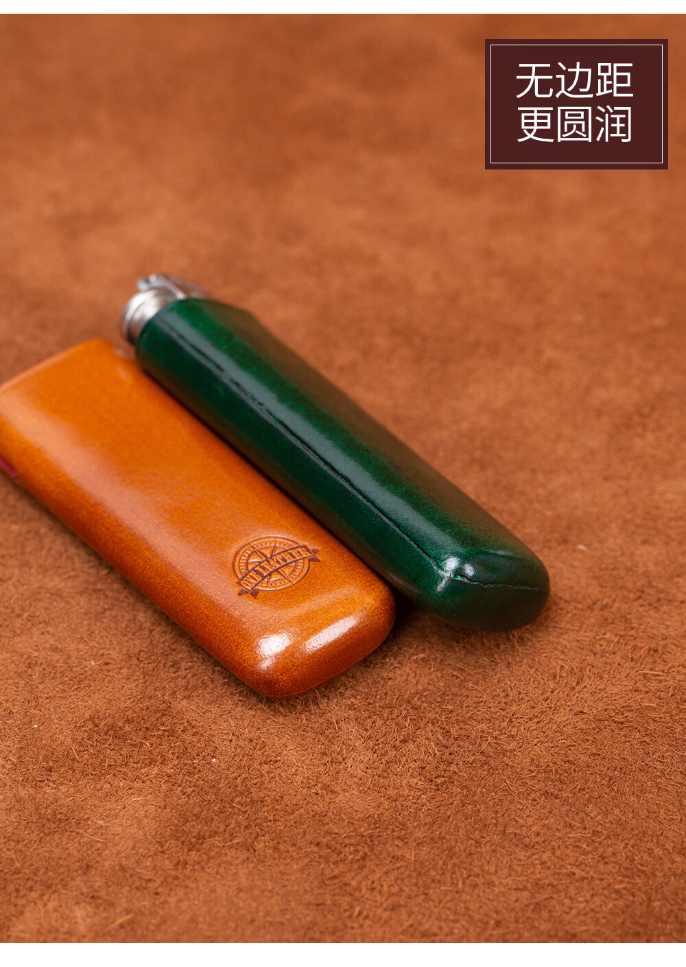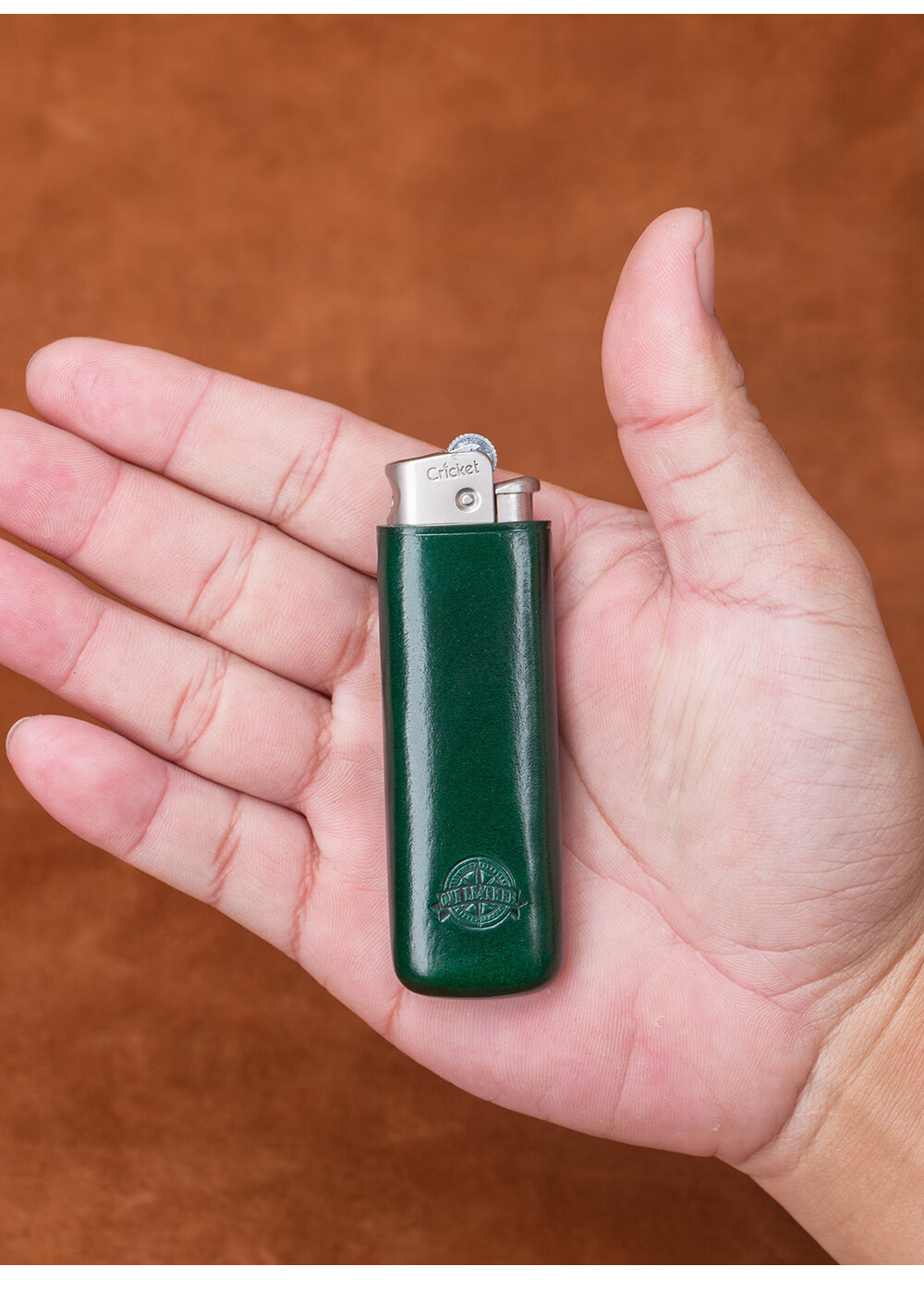 一皮(ONE LEATHER)草蜢防风充气打火机皮套 真皮手工无边距创意保护壳【微瑕疵品】 绿色(不含打火机)