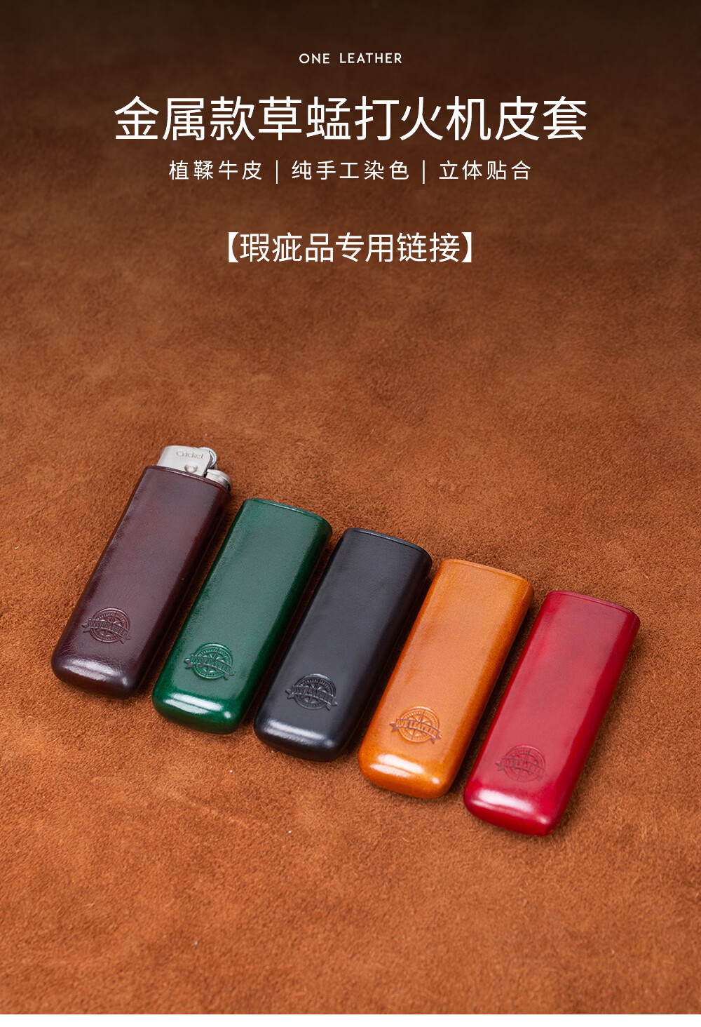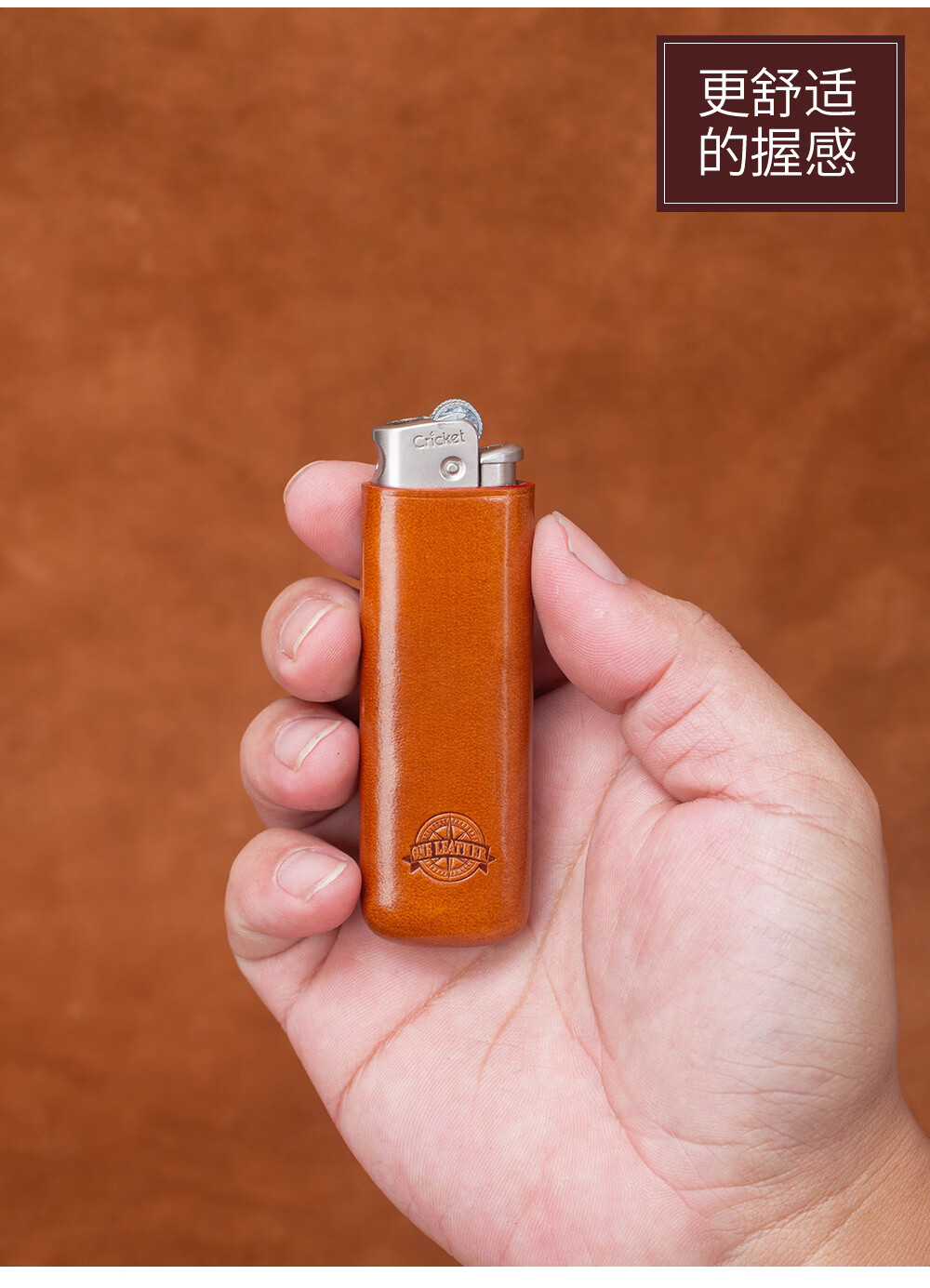 一皮(ONE LEATHER)草蜢防风充气打火机皮套 真皮手工无边距创意保护壳【微瑕疵品】 棕色(不含打火机)