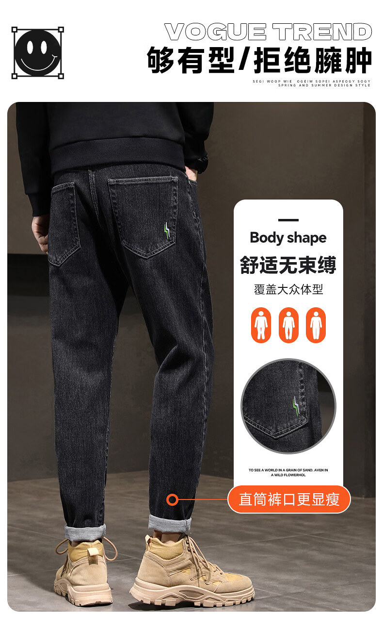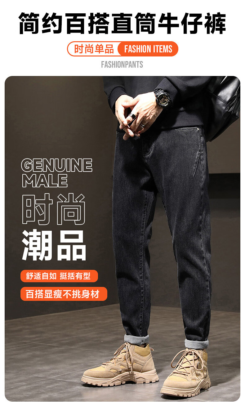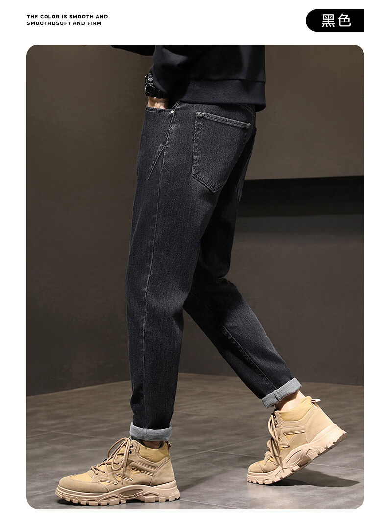 真维斯(Jeanswest)2026秋季新款裤子男潮流帅气牛仔裤简约小脚韩式修身牛仔休闲裤子 黑色 【秋季新款】 28 2尺1