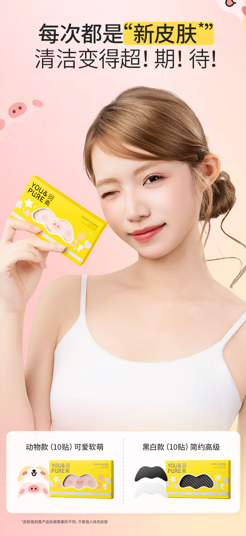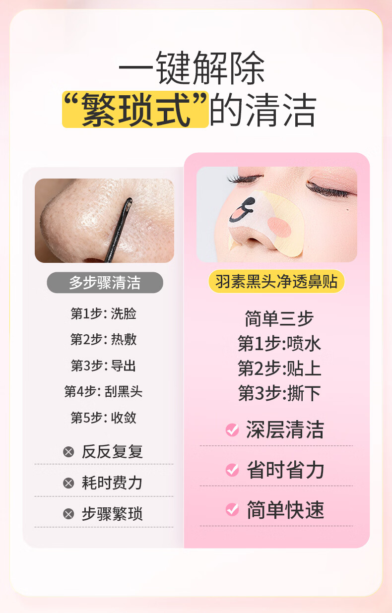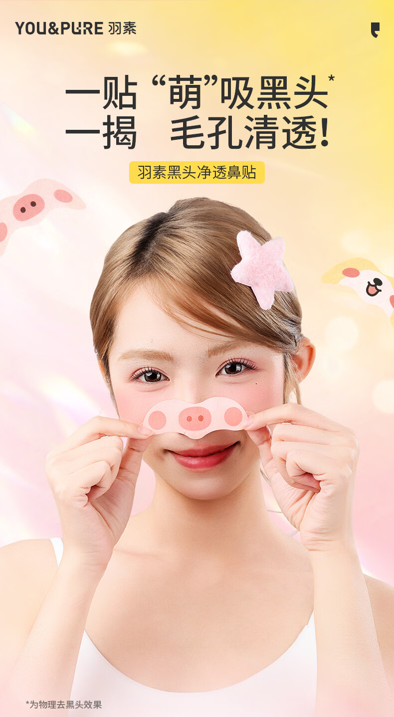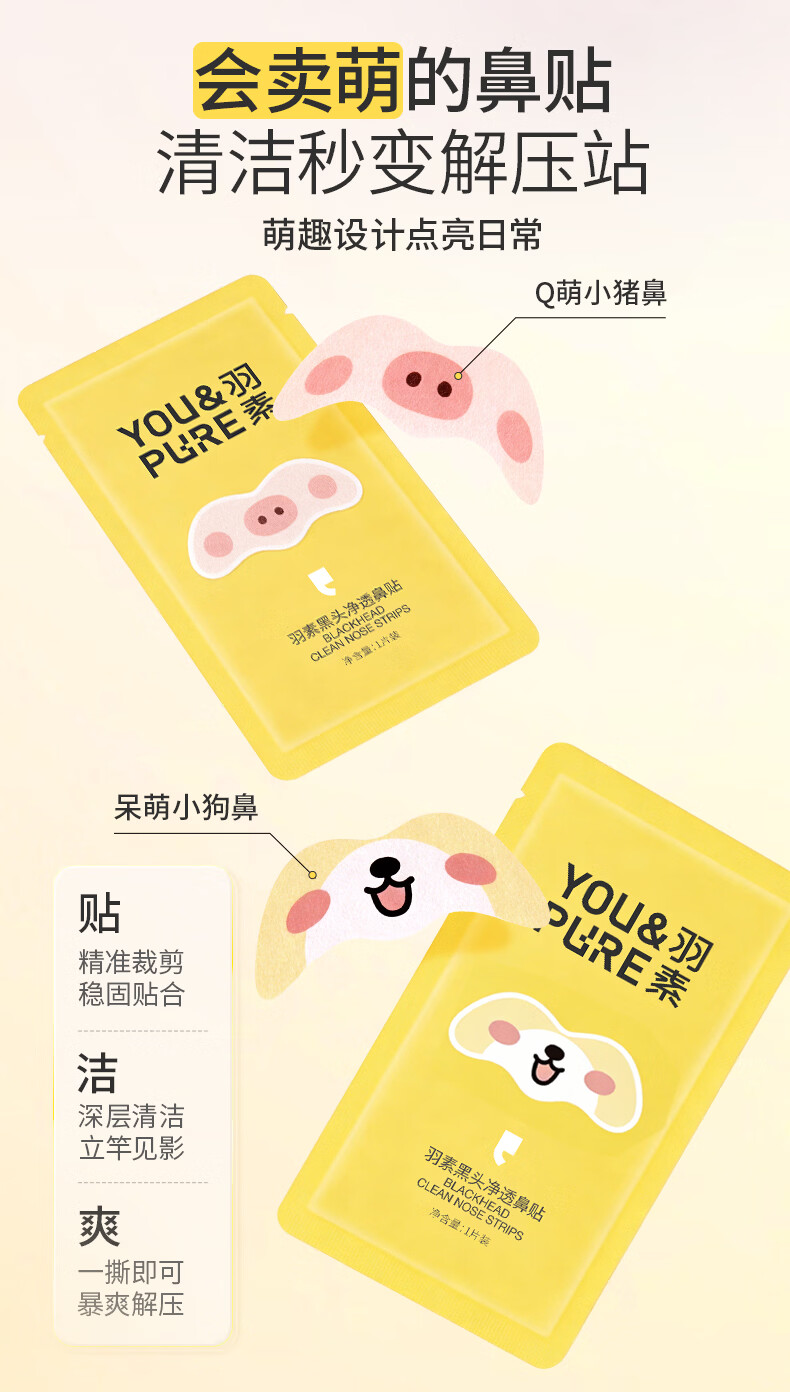羽素去黑头鼻贴膜免撕拉面膜导出精华液粉刺草莓鼻收缩毛孔 黑头净透鼻贴10片装(动物款)