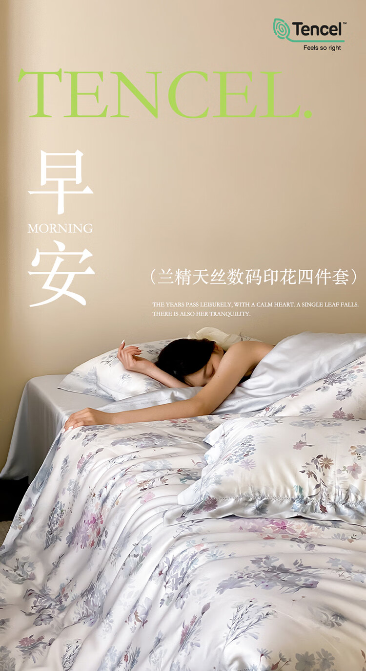 ROLAND LIVE莱赛尔天丝60四件套夏季丝滑凉感透气小清新被套床单床上用品 YX 天丝四件套-初夏蓝 1.5米床 床单款 【被套200*230cm】