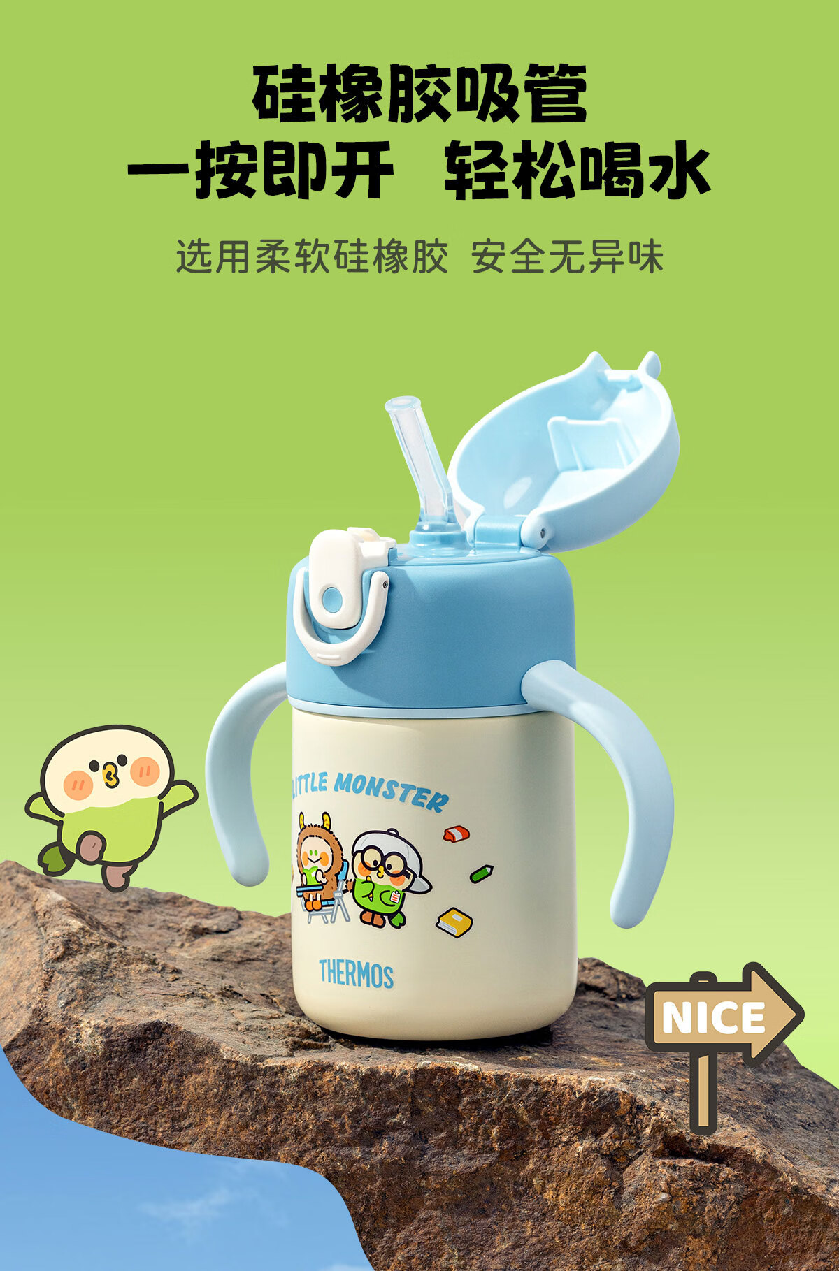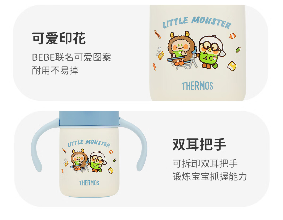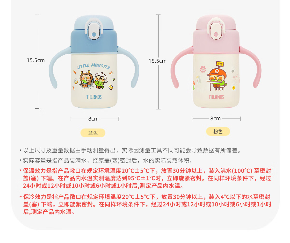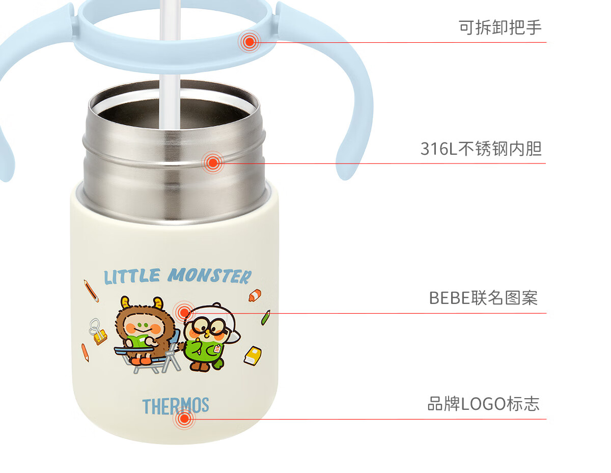膳魔师(THERMOS)把手款小学生吸管杯316L不锈钢保温杯幼儿园儿童开学水杯350ml 粉