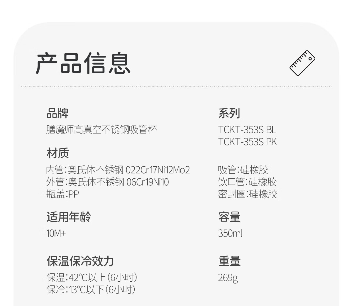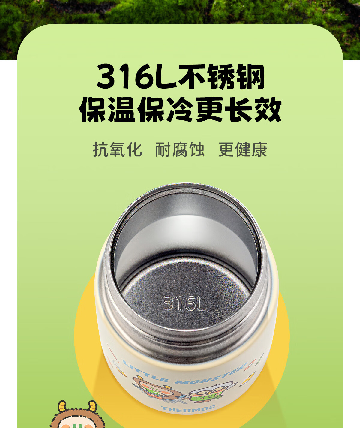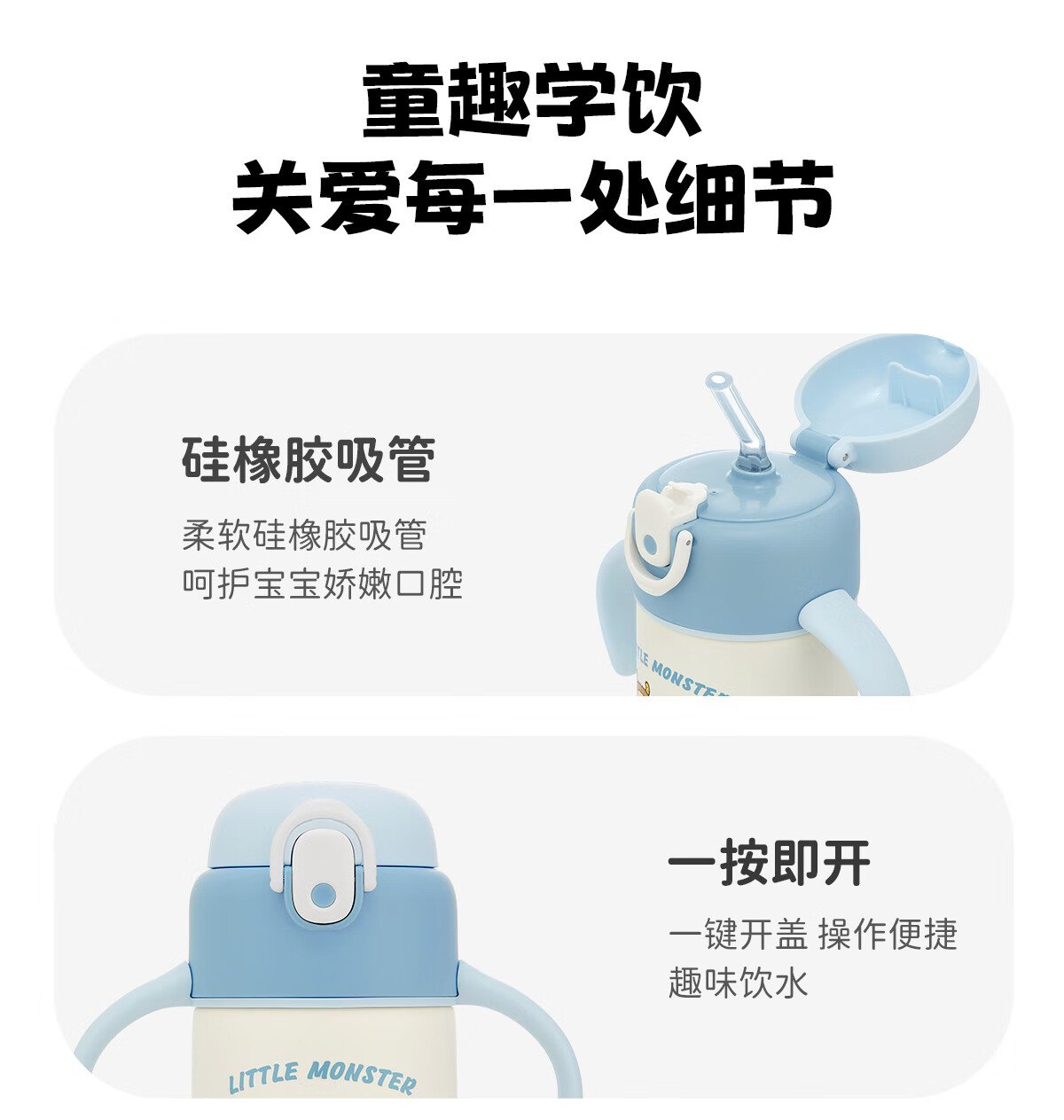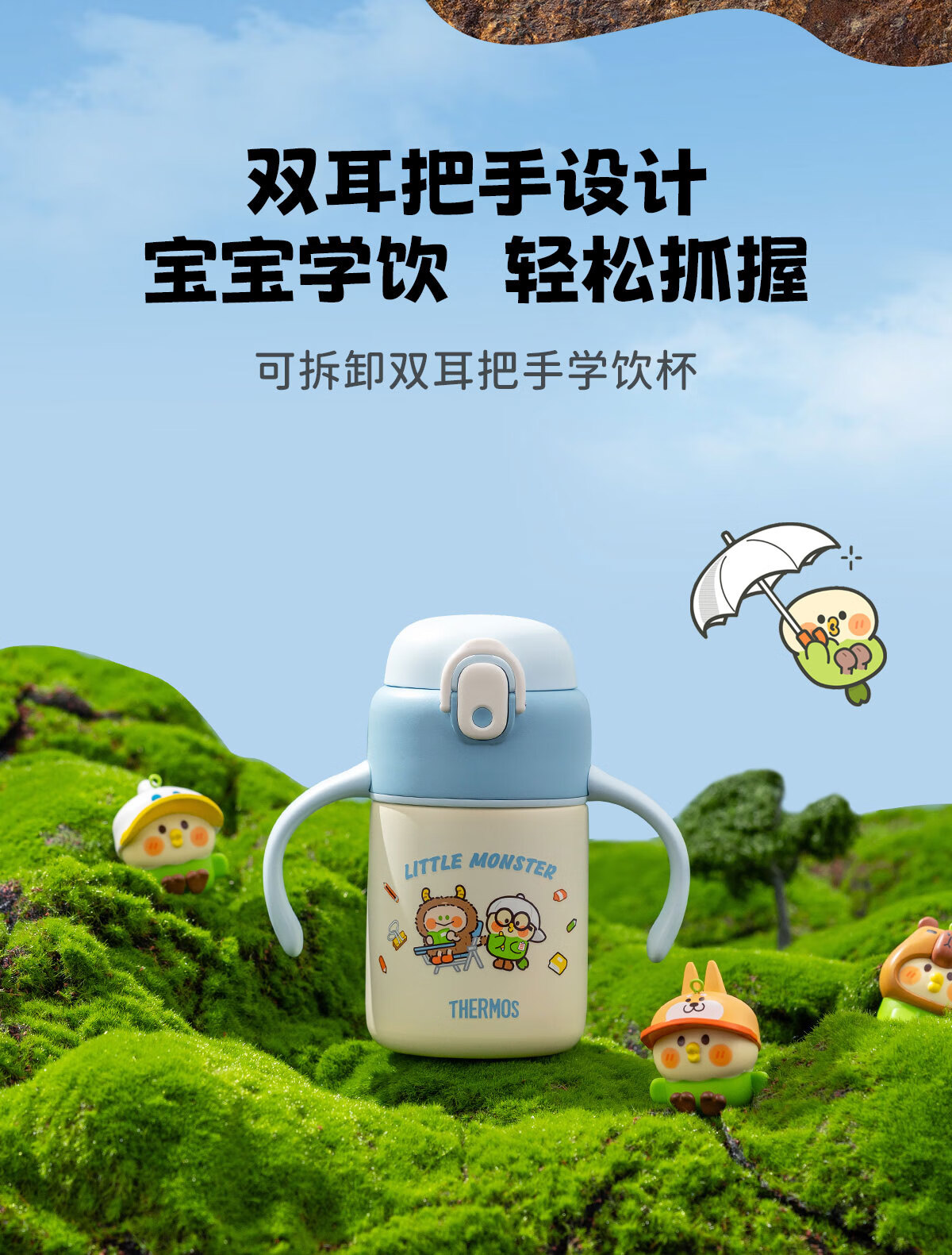 膳魔师(THERMOS)把手款小学生吸管杯316L不锈钢保温杯幼儿园儿童开学水杯350ml 粉