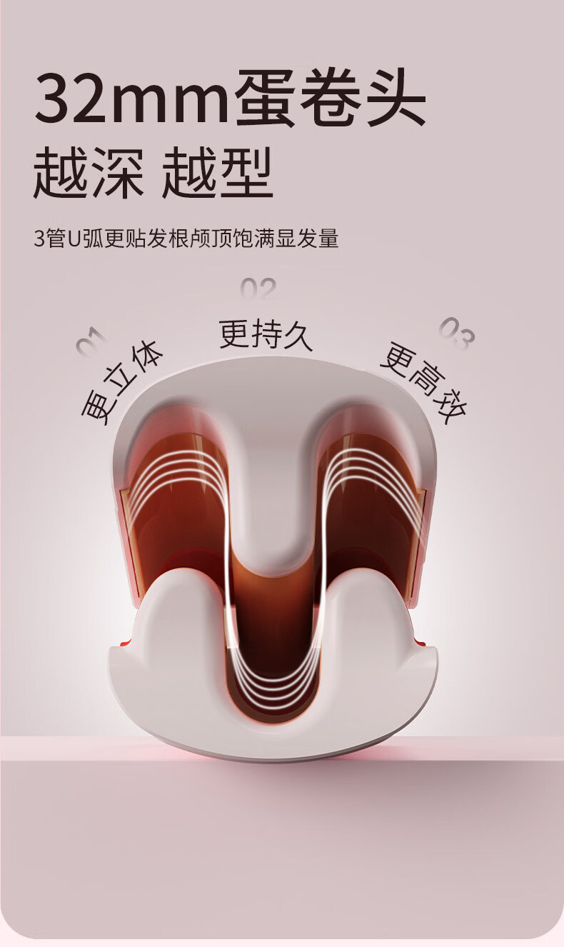 卷博士升级冷风换头多功能多合一自动卷发棒直发梳大波浪卷发神器持久 粉色 32mm 换头三合一28M-32M-直发梳