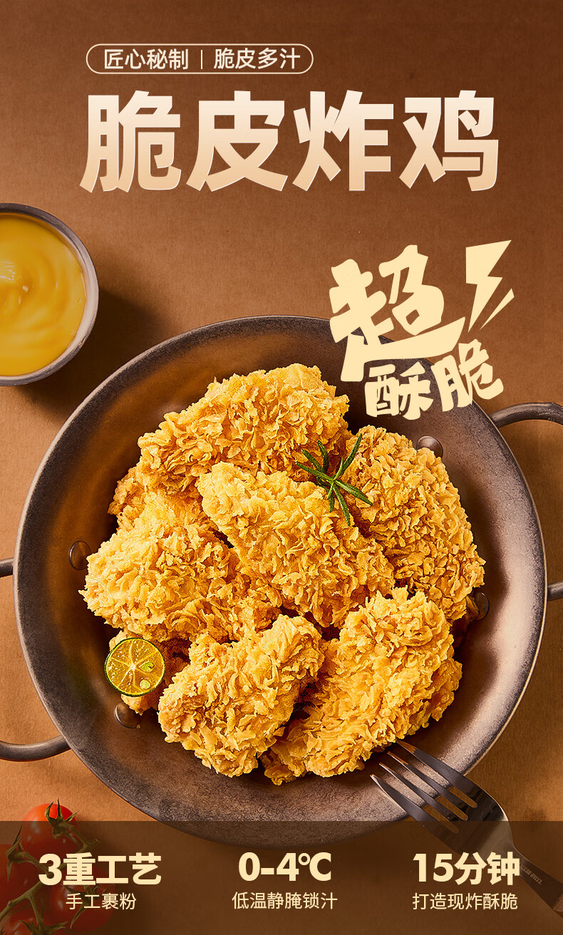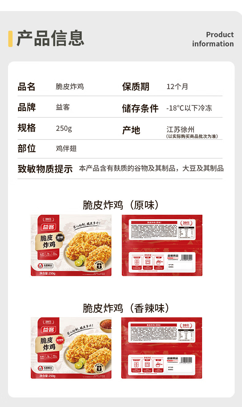 益客脆皮炸鸡250g包半成品空气炸锅油炸小吃冷冻食材烧烤 250g*6袋 混合口味(原味+香辣)