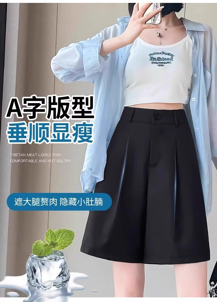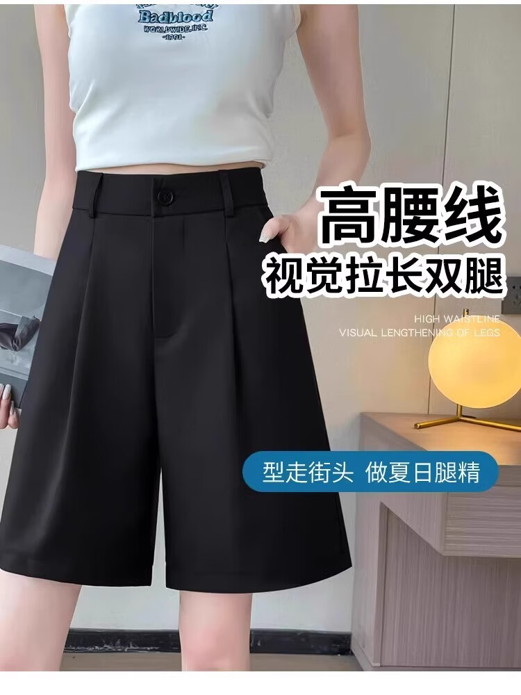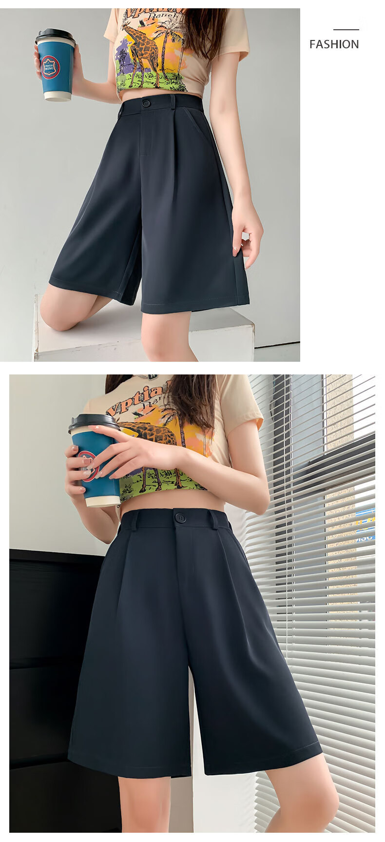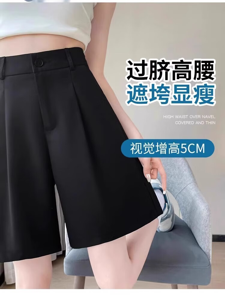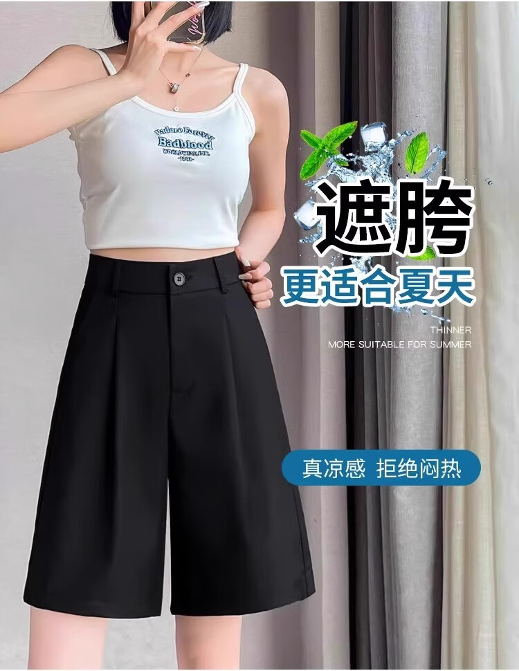 浪莎西装短裤女夏季新款小个子冰丝休闲阔腿裤宽松薄款凉感透气五分裤 黑色 【单扣-轻薄透气】 L 【推荐101-110斤】