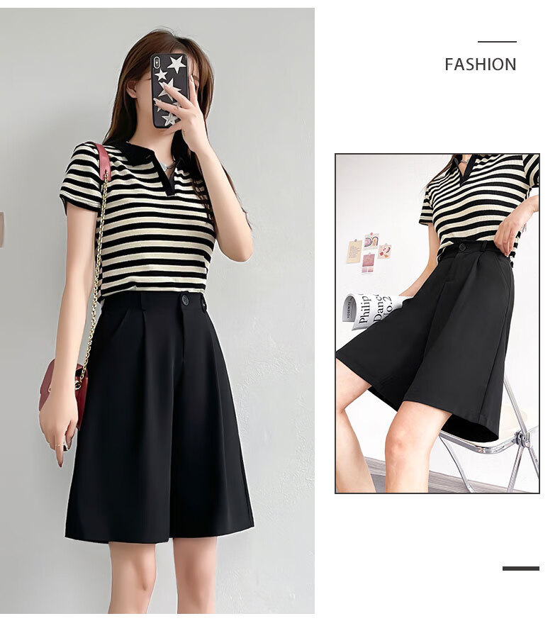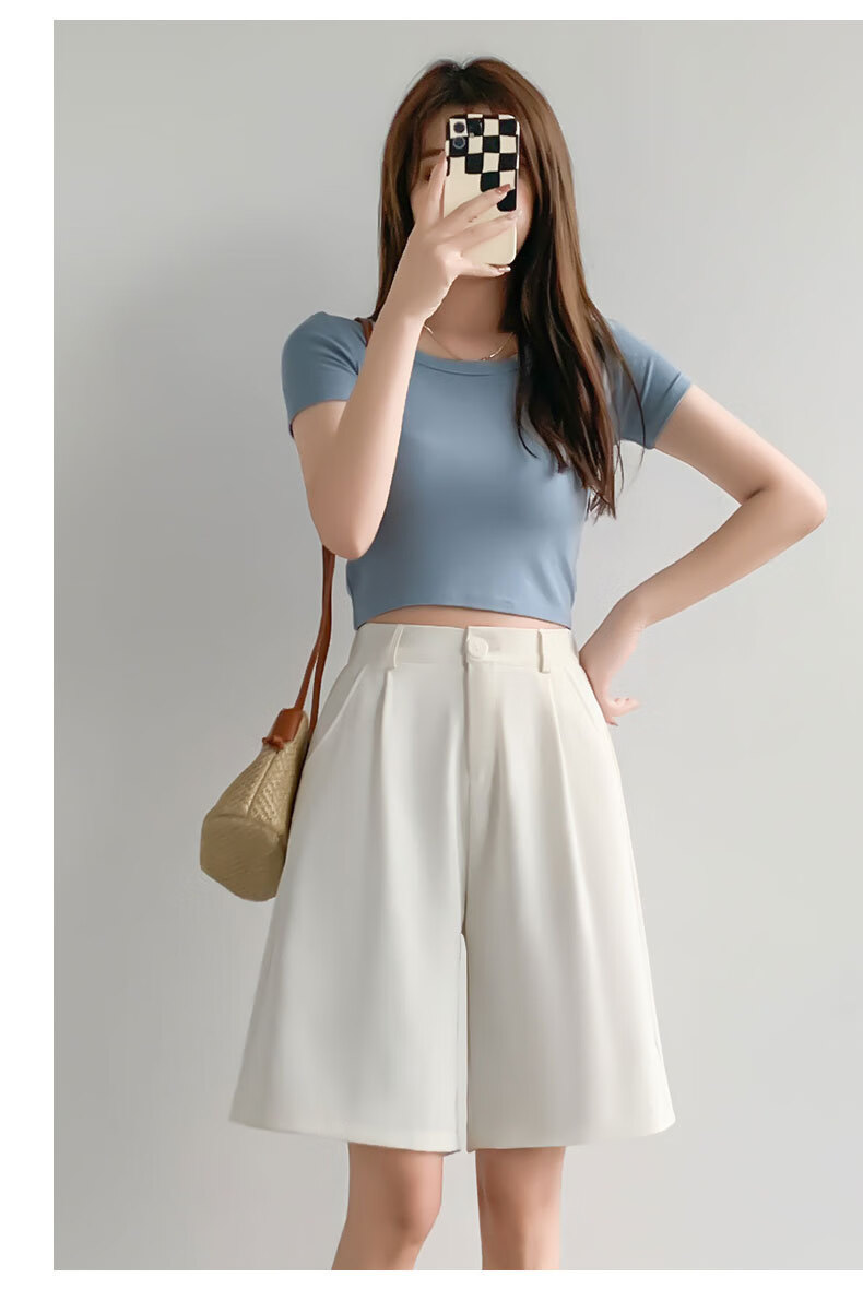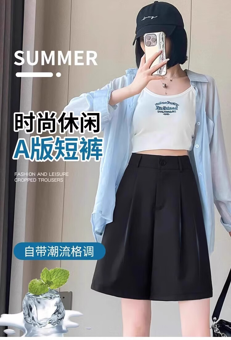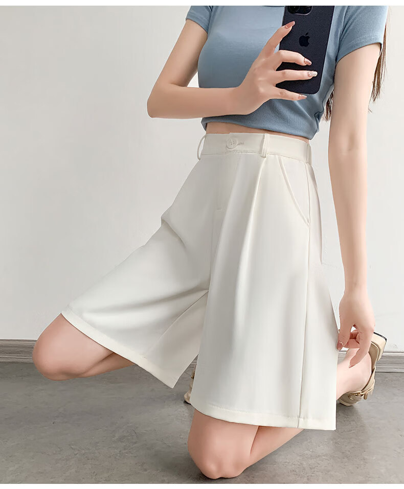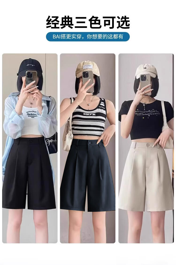 浪莎西装短裤女夏季新款小个子冰丝休闲阔腿裤宽松薄款凉感透气五分裤 黑色 【单扣-轻薄透气】 L 【推荐101-110斤】