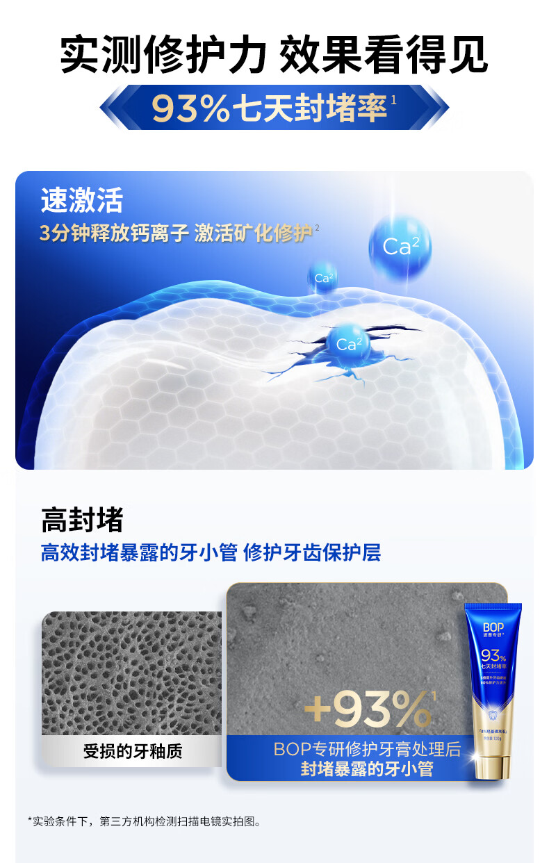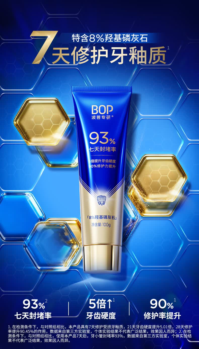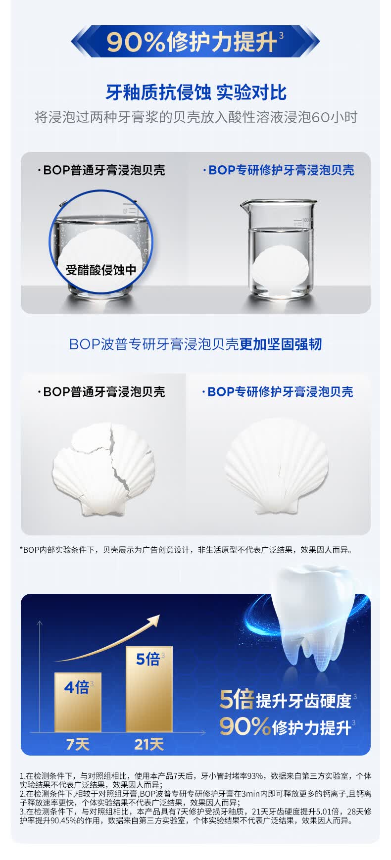 波普专研(bop)【权威机构功效实测】修护牙釉质牙膏洁牙抗敏感羟基磷灰石100g*3