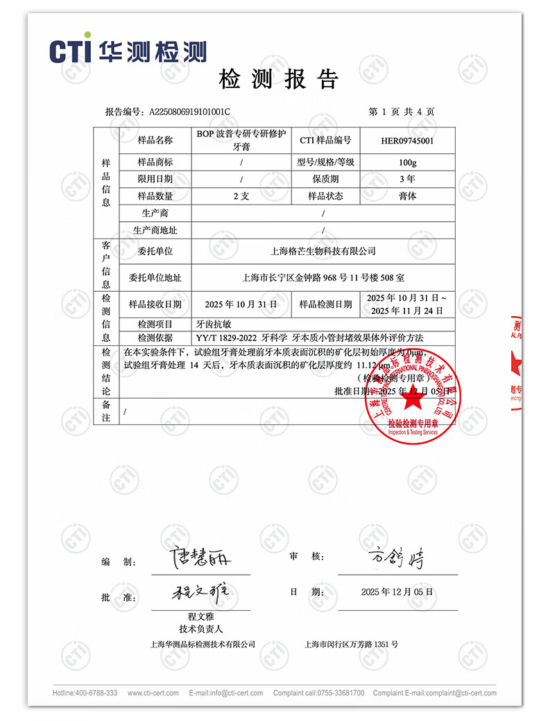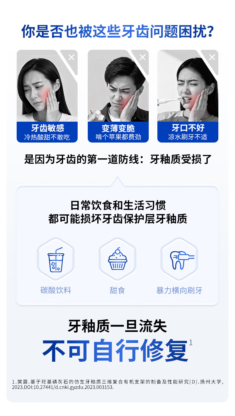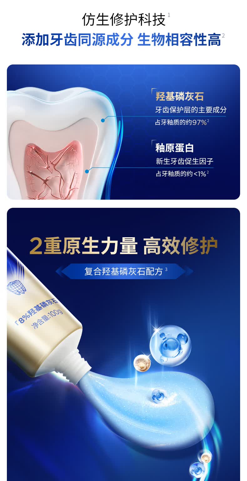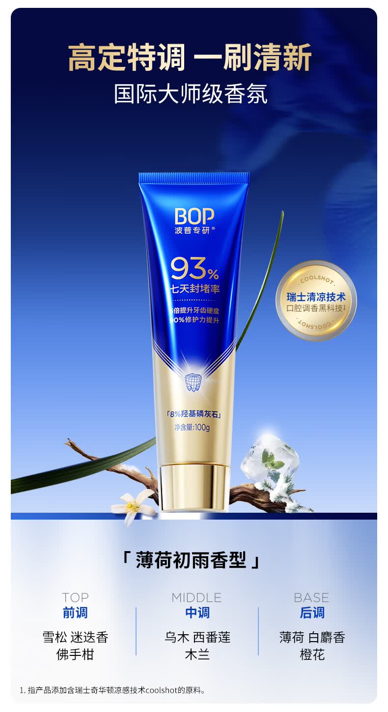 波普专研(bop)【权威机构功效实测】修护牙釉质牙膏洁牙抗敏感羟基磷灰石100g*3