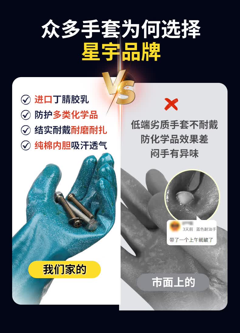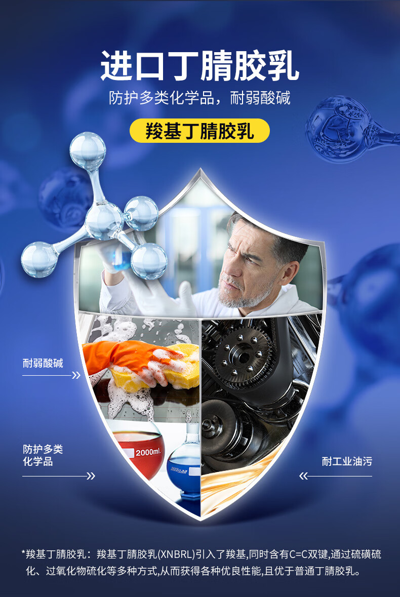 实验手套丁腈耐酸碱实验橡胶防油防化耐油工业工作劳保耐磨防酸碱 1双 耐油耐酸碱 【进口丁腈胶】 XL