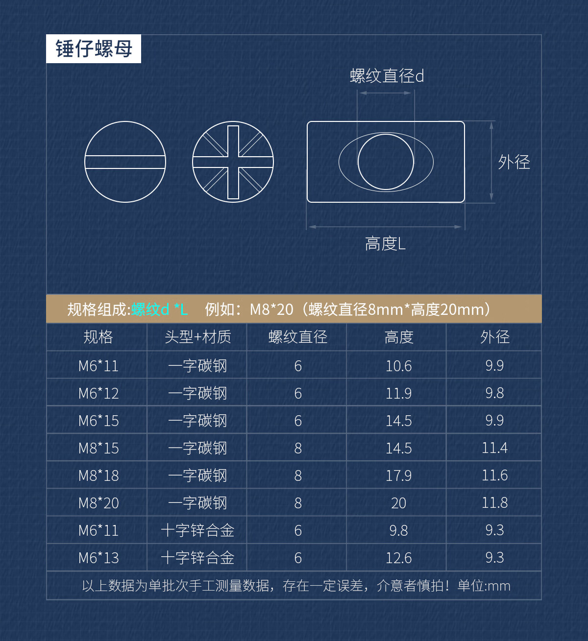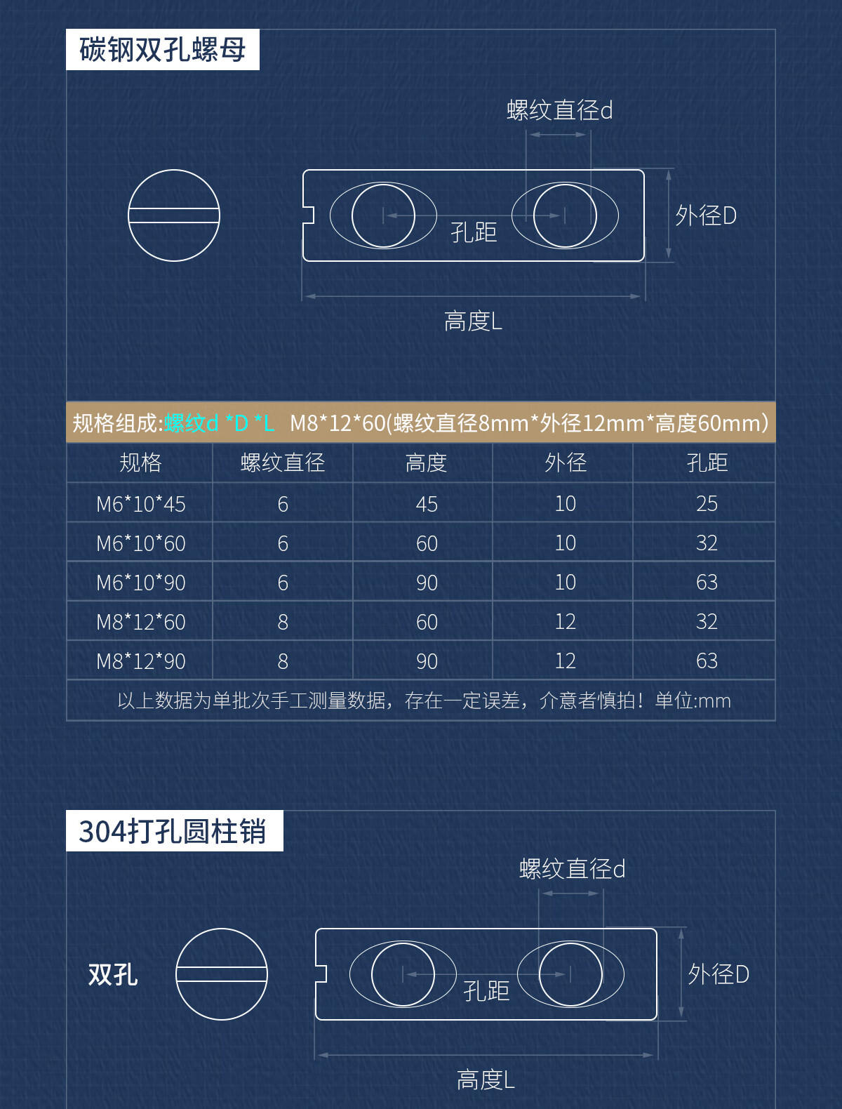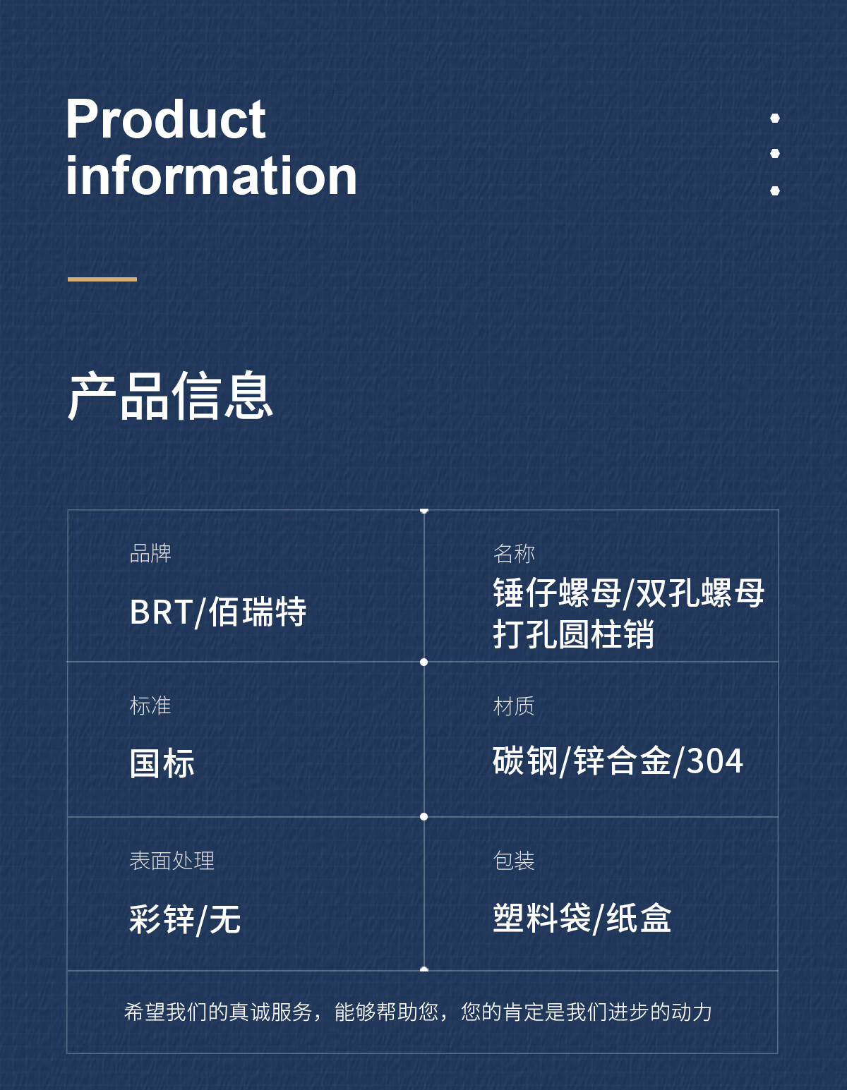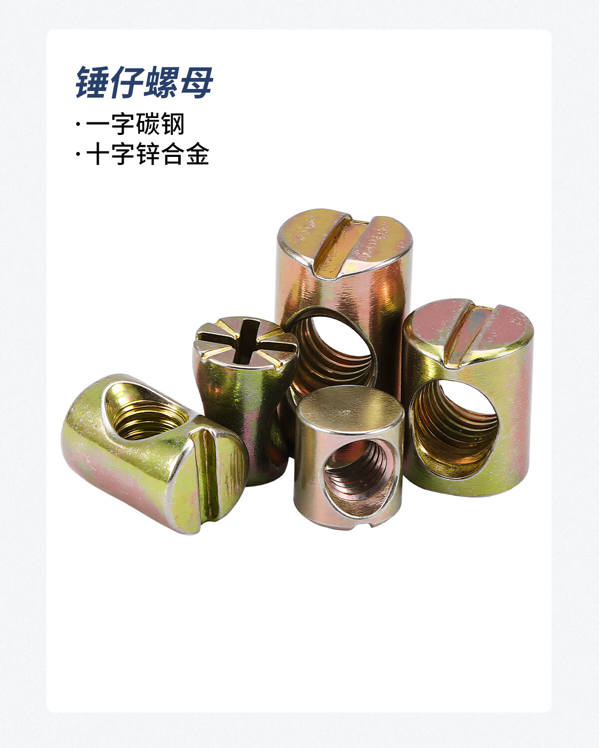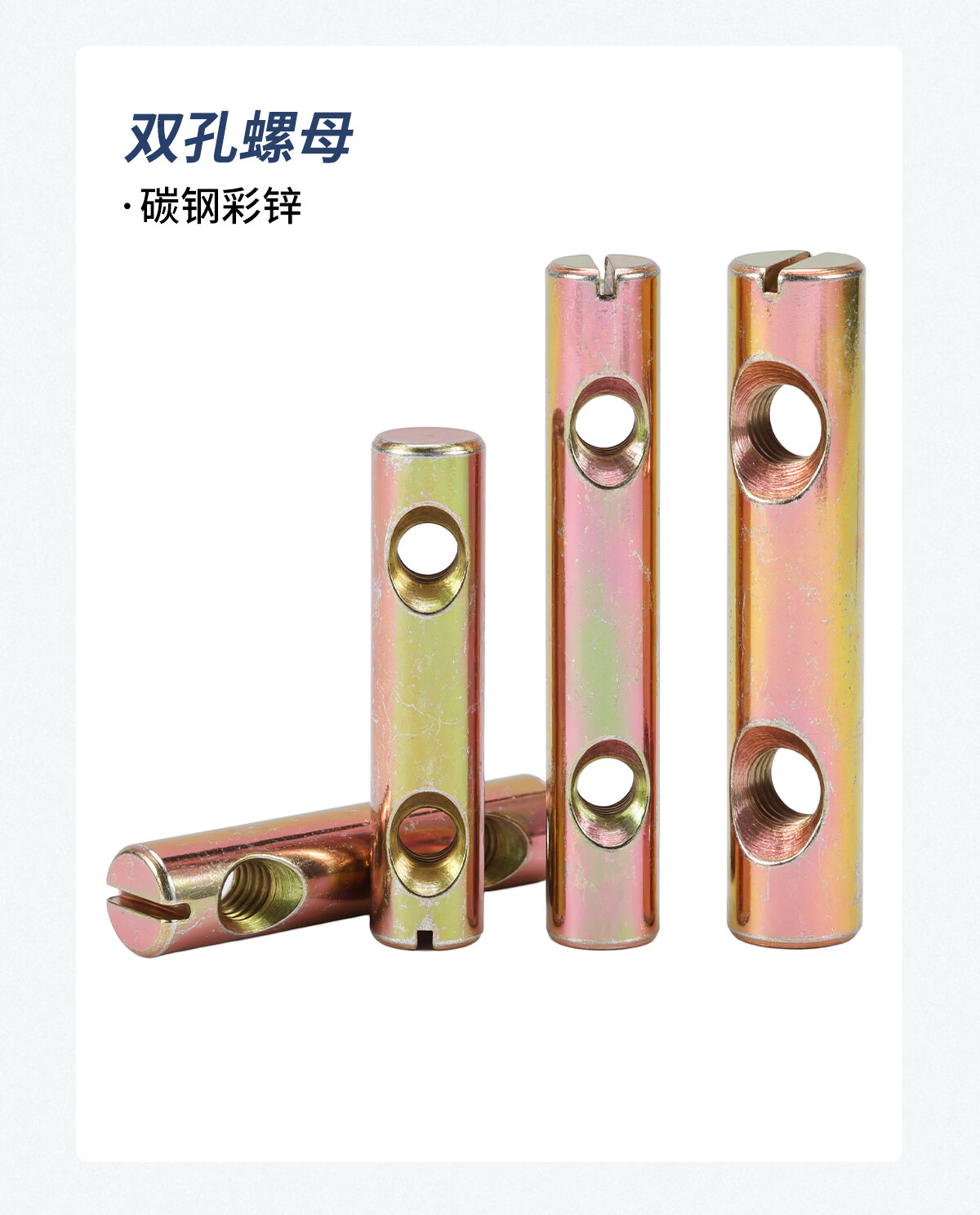 佰瑞特304不锈钢打孔圆柱销M2.5-M8碳钢锌合金锤仔螺母彩锌双孔螺 锤仔螺母M6*11(一字铁材质)彩锌(25粒)