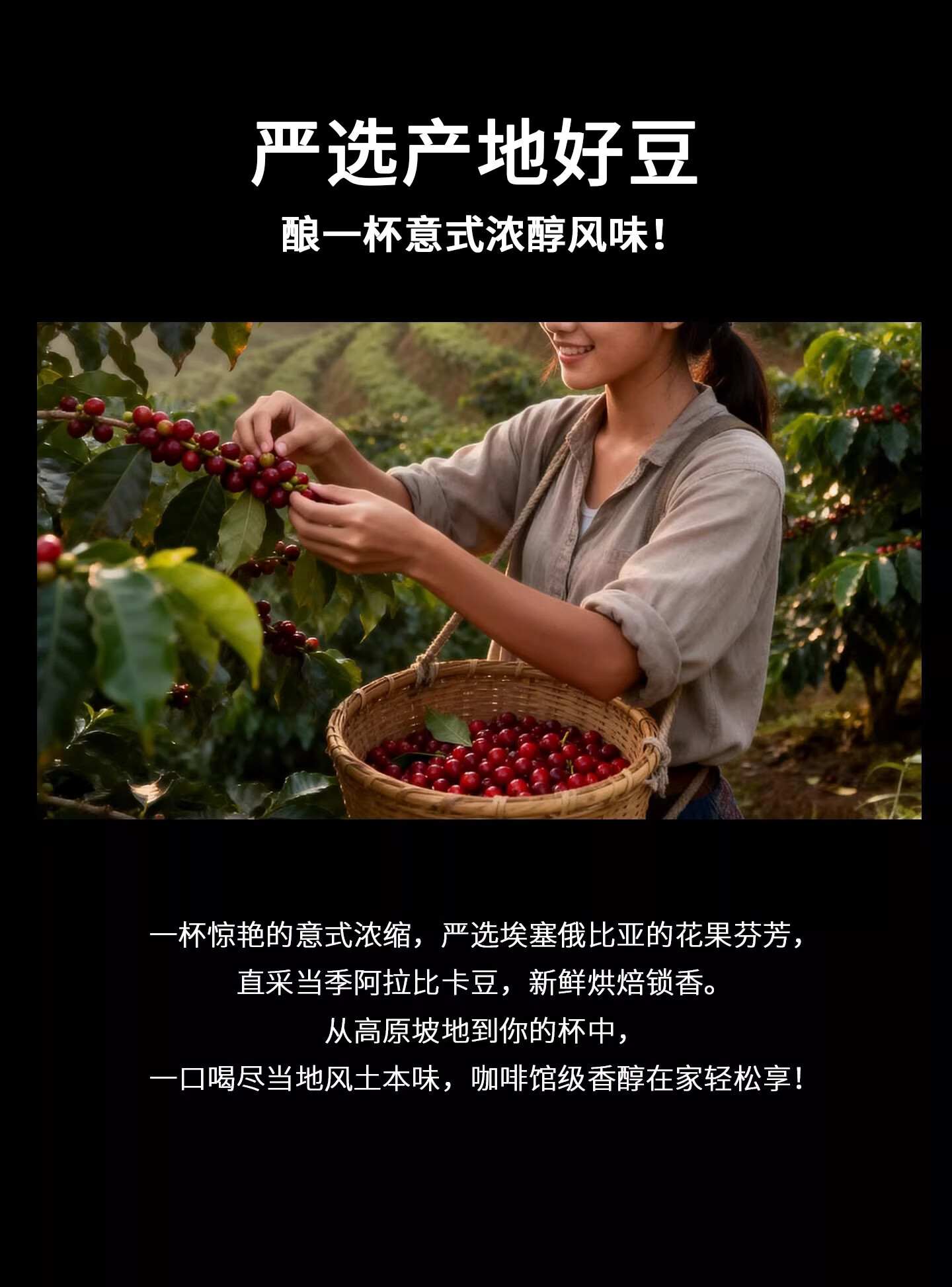Bincoo蜜果甜醺拼配意式咖啡豆中深烘焙咖啡机摩卡壶萃取美式拿铁 227g袋装