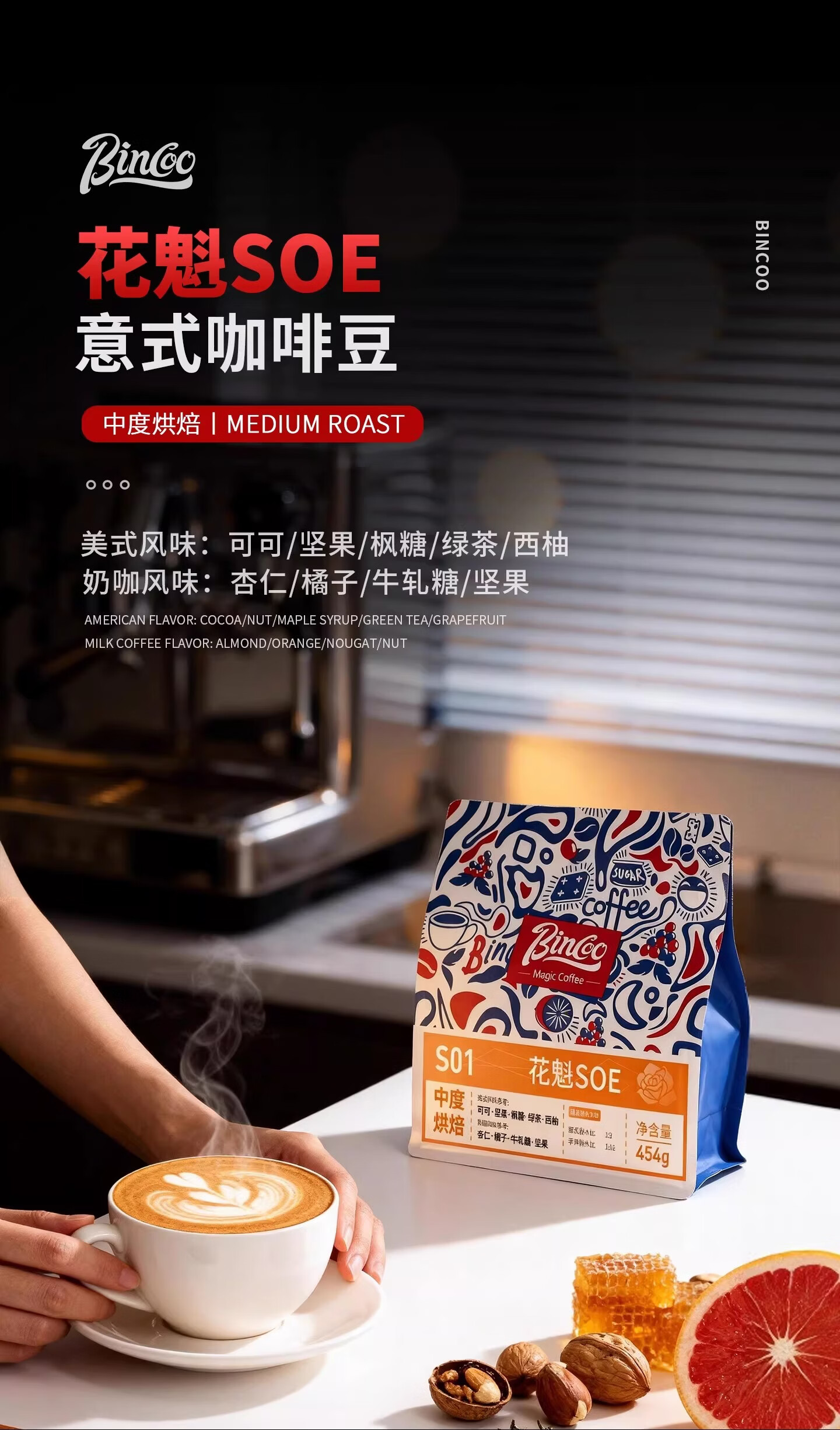 Bincoo花魁SOE意式拼配咖啡豆咖啡机摩卡壶萃取用中深烘焙冰美式 45g盒装 中度烘焙