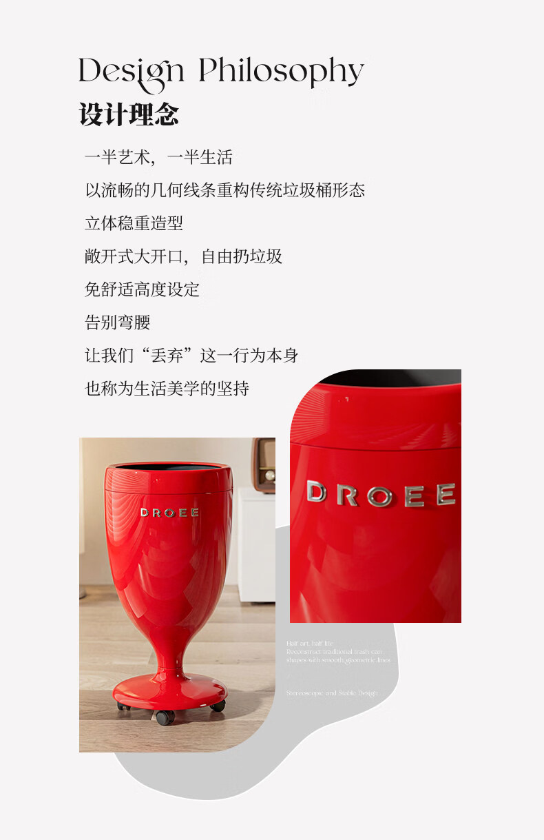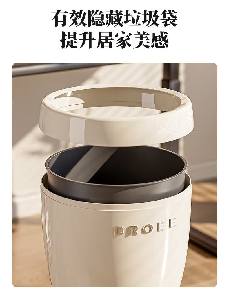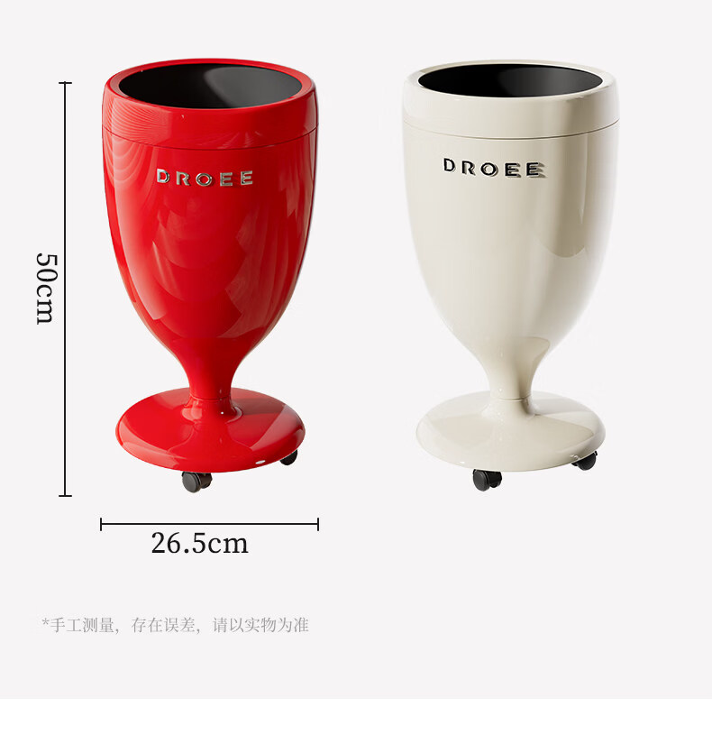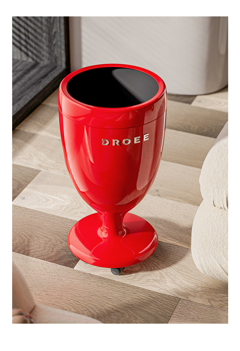 艾仕可(ASCOR)创意高脚杯免弯腰垃圾桶轻奢高颜值家用客厅厨房大容量带轮可移动 奶油白【大敞口设计-四滑轮款】