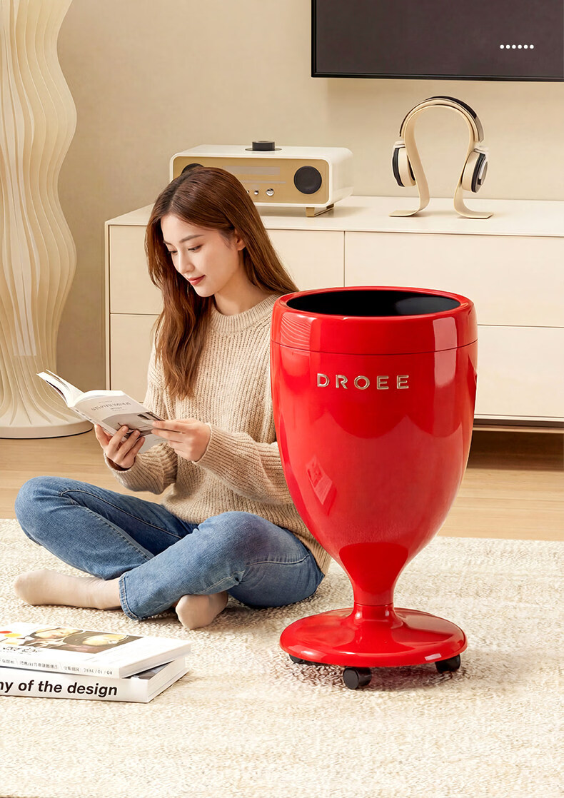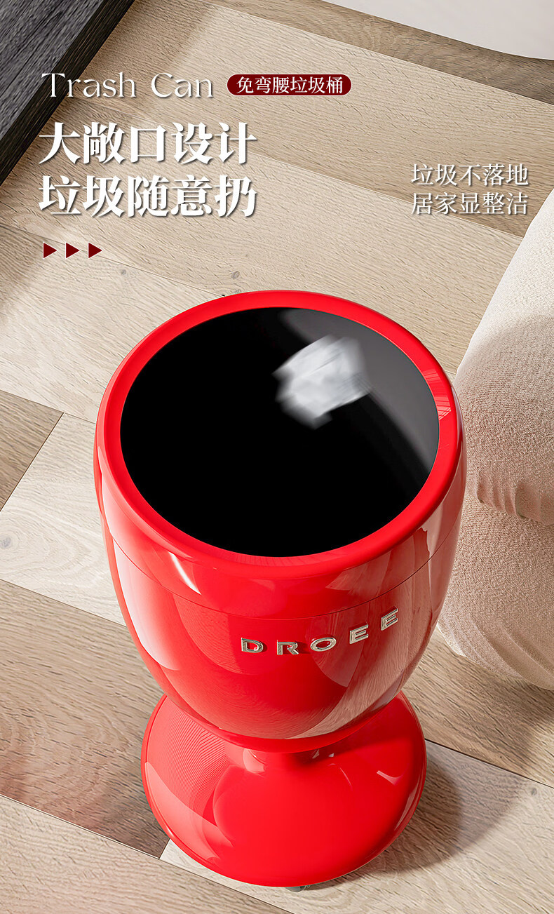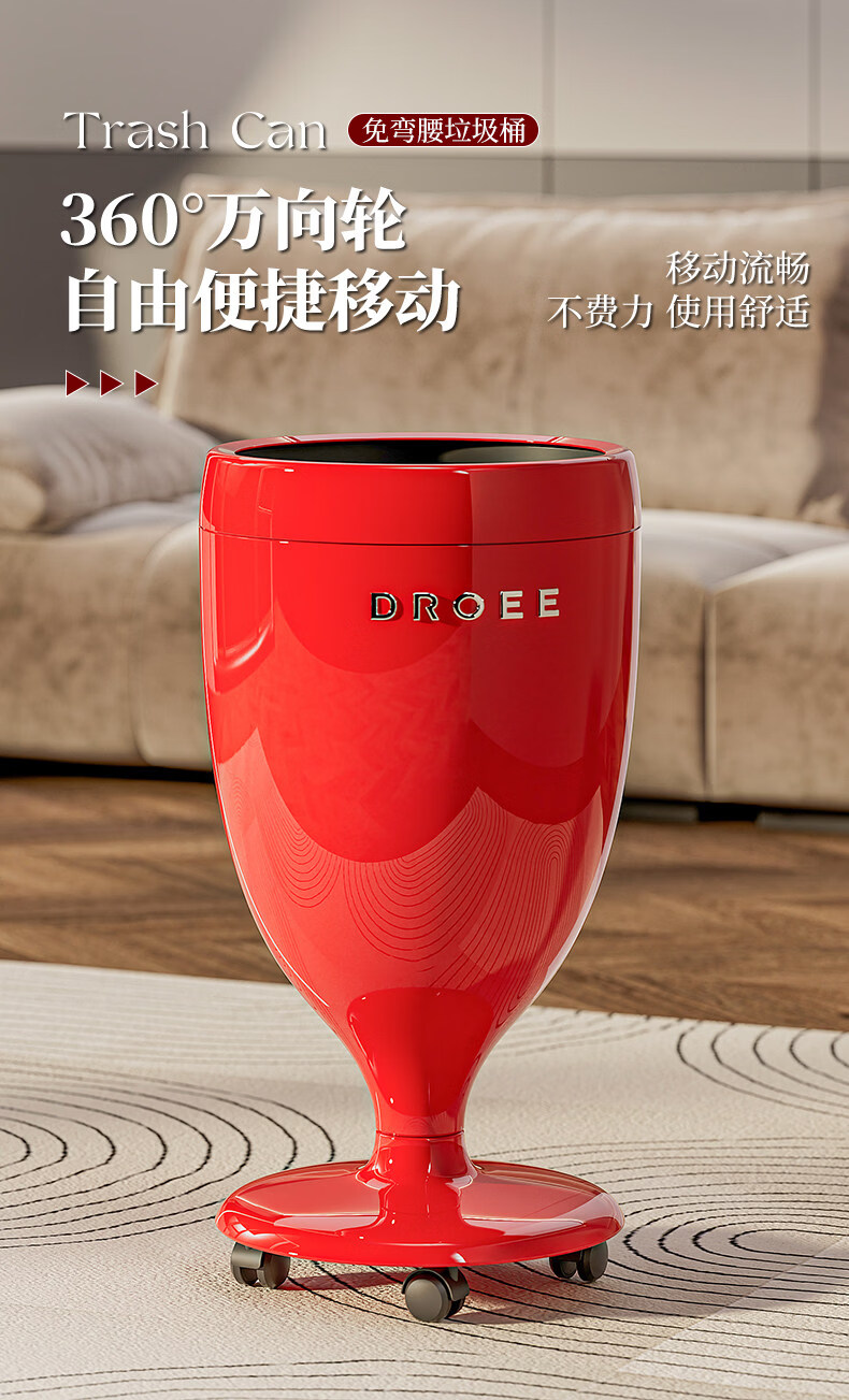 艾仕可(ASCOR)垃圾桶家用客厅卧室2026新款高颜值大号轻奢厨房厕所高脚翻盖纸篓 太空舱-红色【滑轮款360°顺滑】