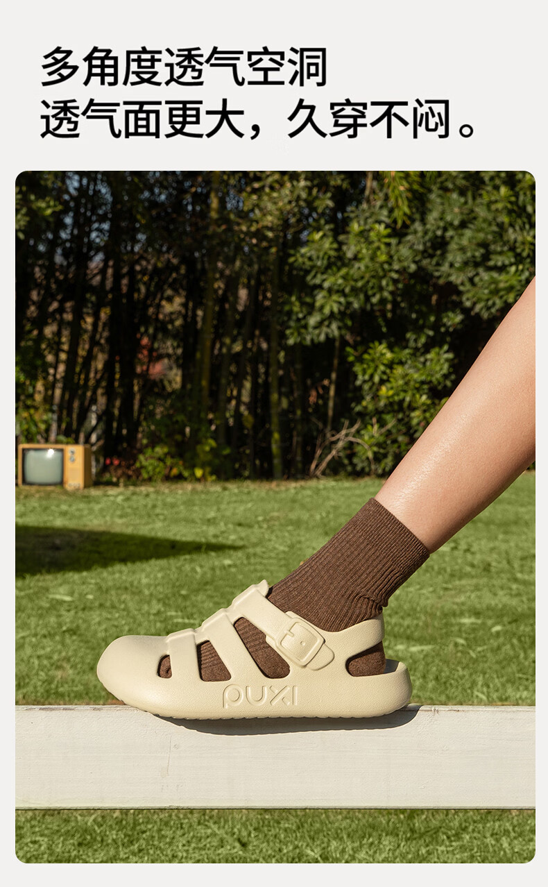 朴西【官方正品】朴西罗马鞋女款新款凉鞋拖鞋夏季户外穿凉拖圆头拖鞋 焦糖棕 【搭配袜子穿更舒适】 39-40 【推荐买大一码】