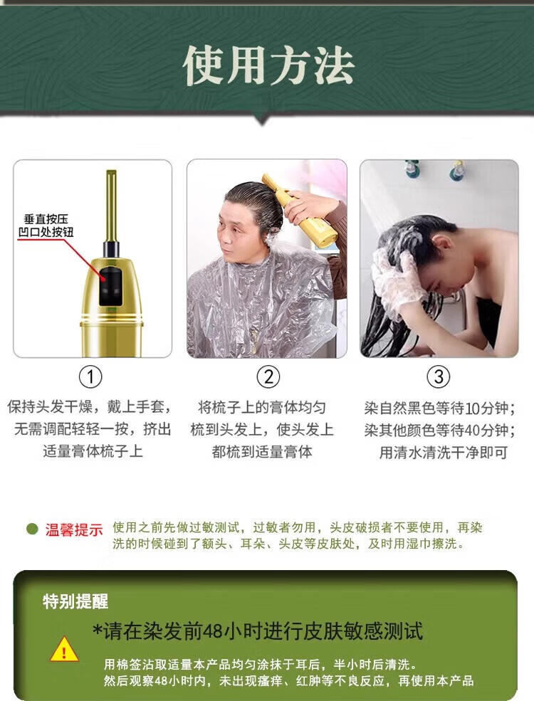 同仁堂(TRT)染发膏一梳黑染发剂植物无刺激不沾头皮盖白发男 咖啡色1瓶 植物盖白