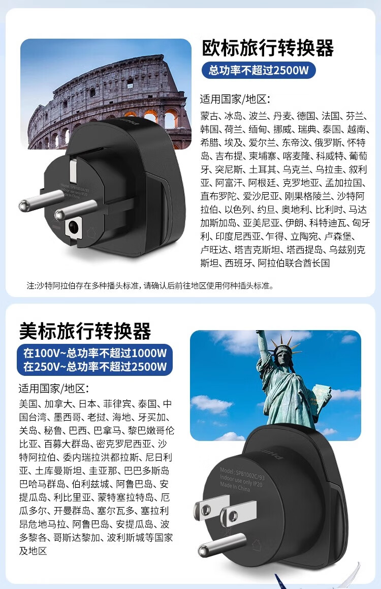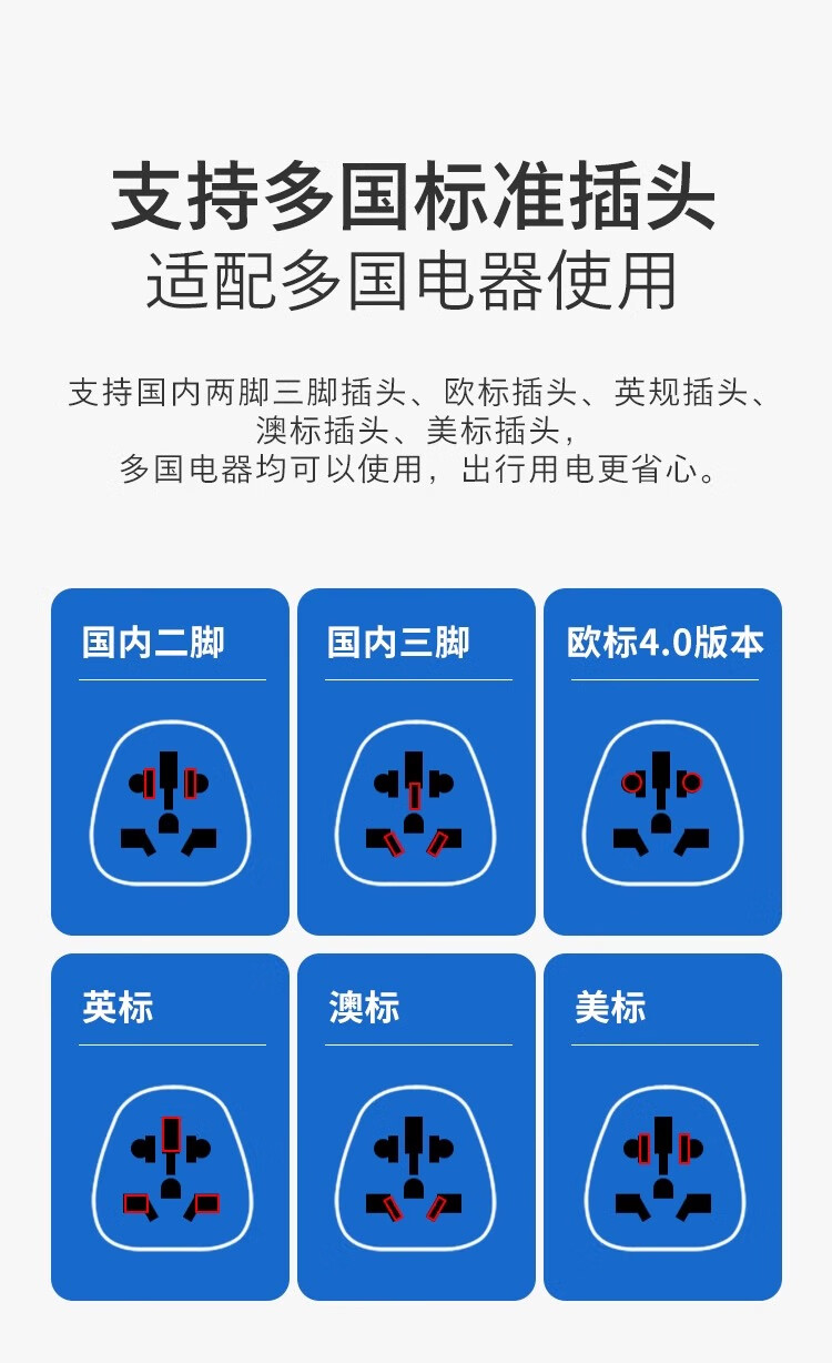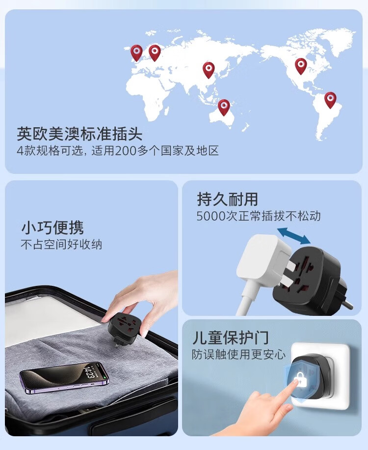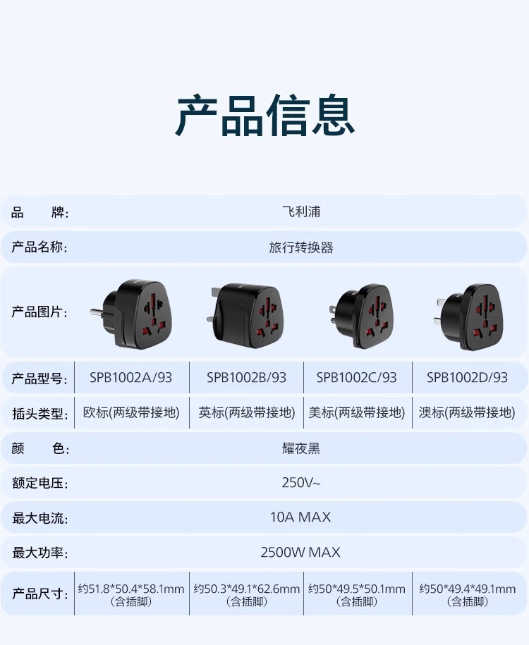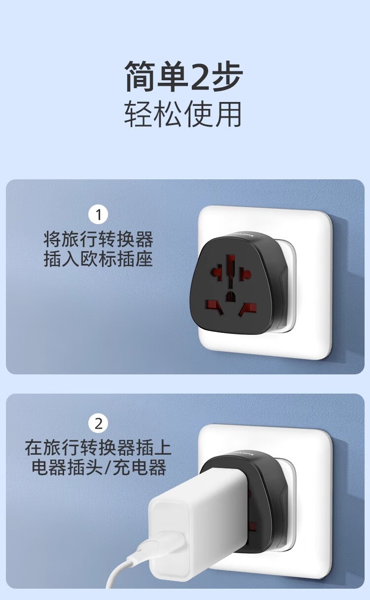 飞利浦(PHILIPS)出国转换插头英标/欧标/美标/澳标多国旅行转换器一转多国适用韩国美国日本东南亚欧洲 英标转国标