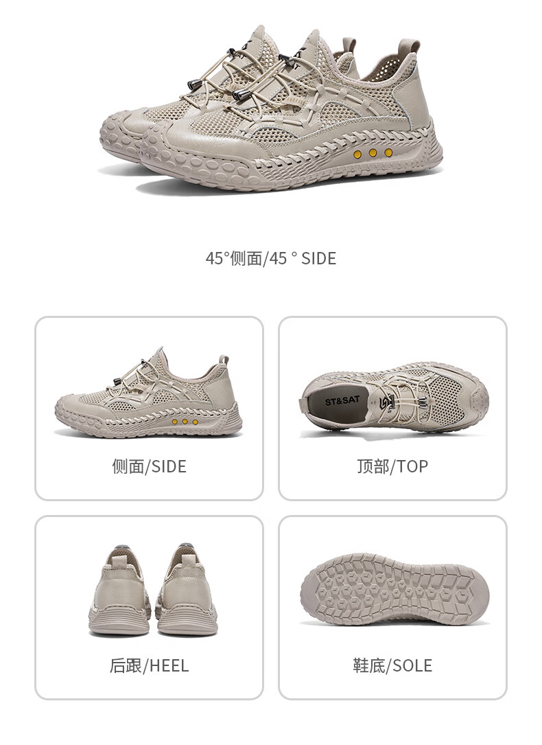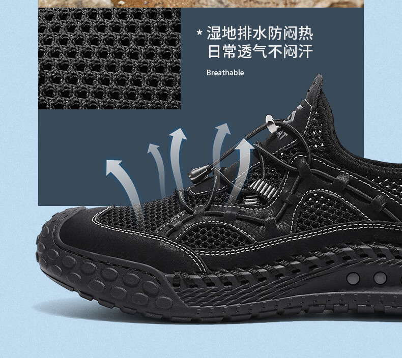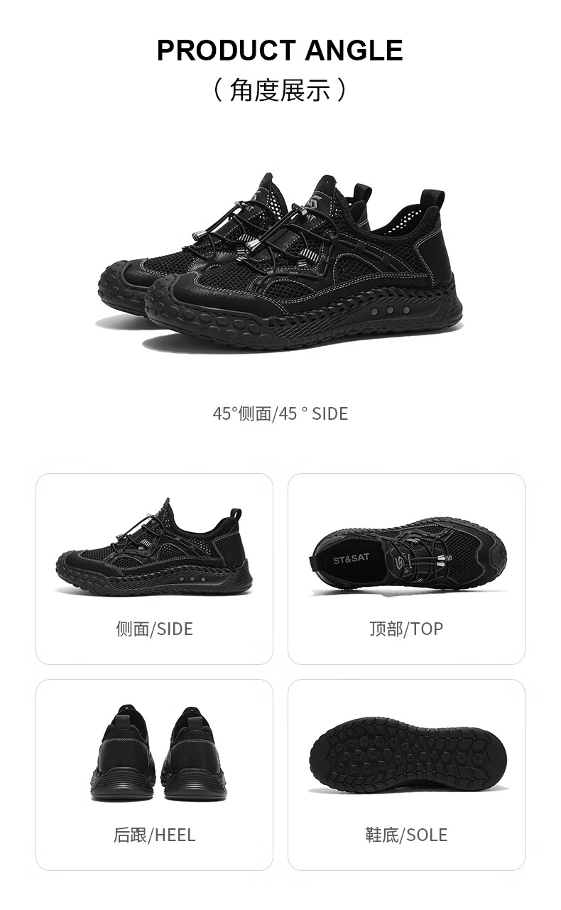 星期六(St&Sat)男鞋夏季透气网面鞋男户外舒适防滑飞织鞋青少年镂空椰子运动鞋男 黑色 41 (255mm) 标准运动鞋尺码