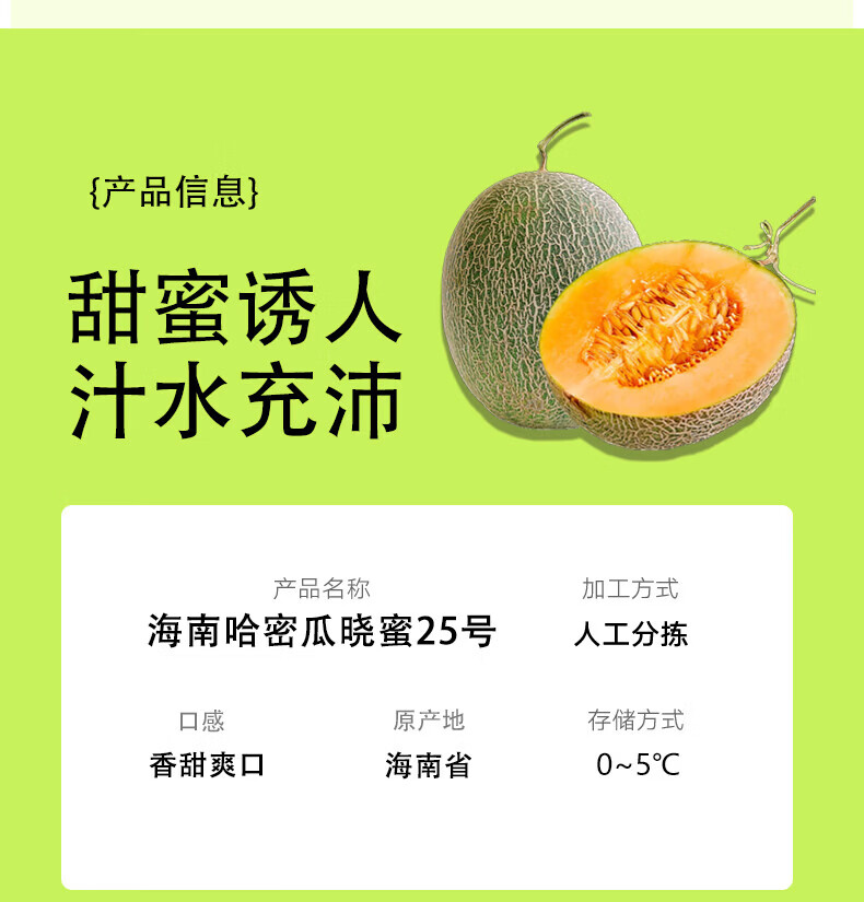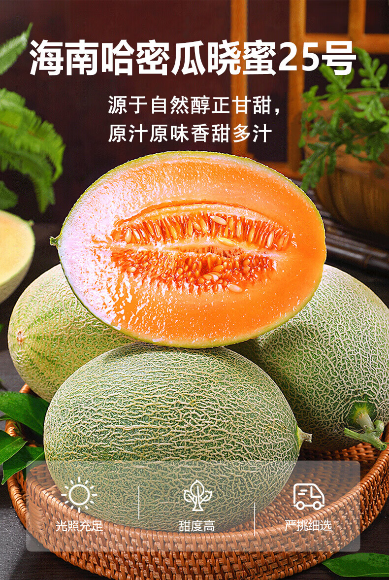 海南 哈密瓜 新鲜甜瓜 生鲜水果 脆甜可口 优选净重4.5-5斤【1-3个】