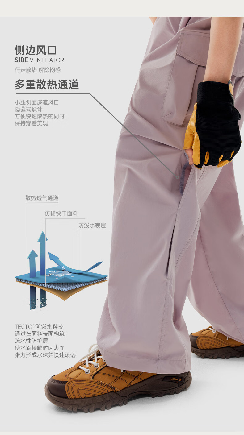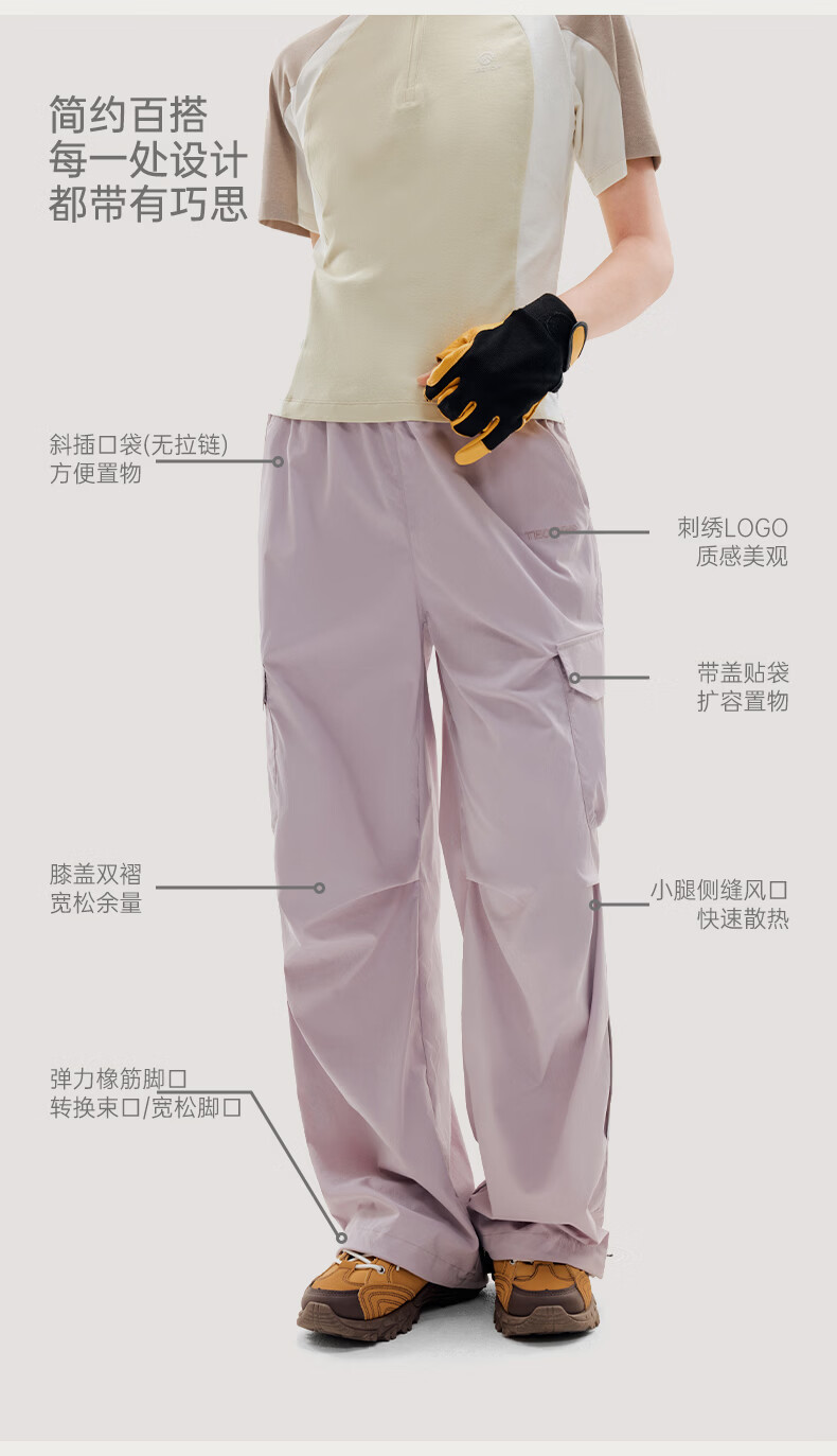 探拓(TECTOP)26新款工装裤女户外休闲裤春夏季透气登山长裤 云墨黑 S