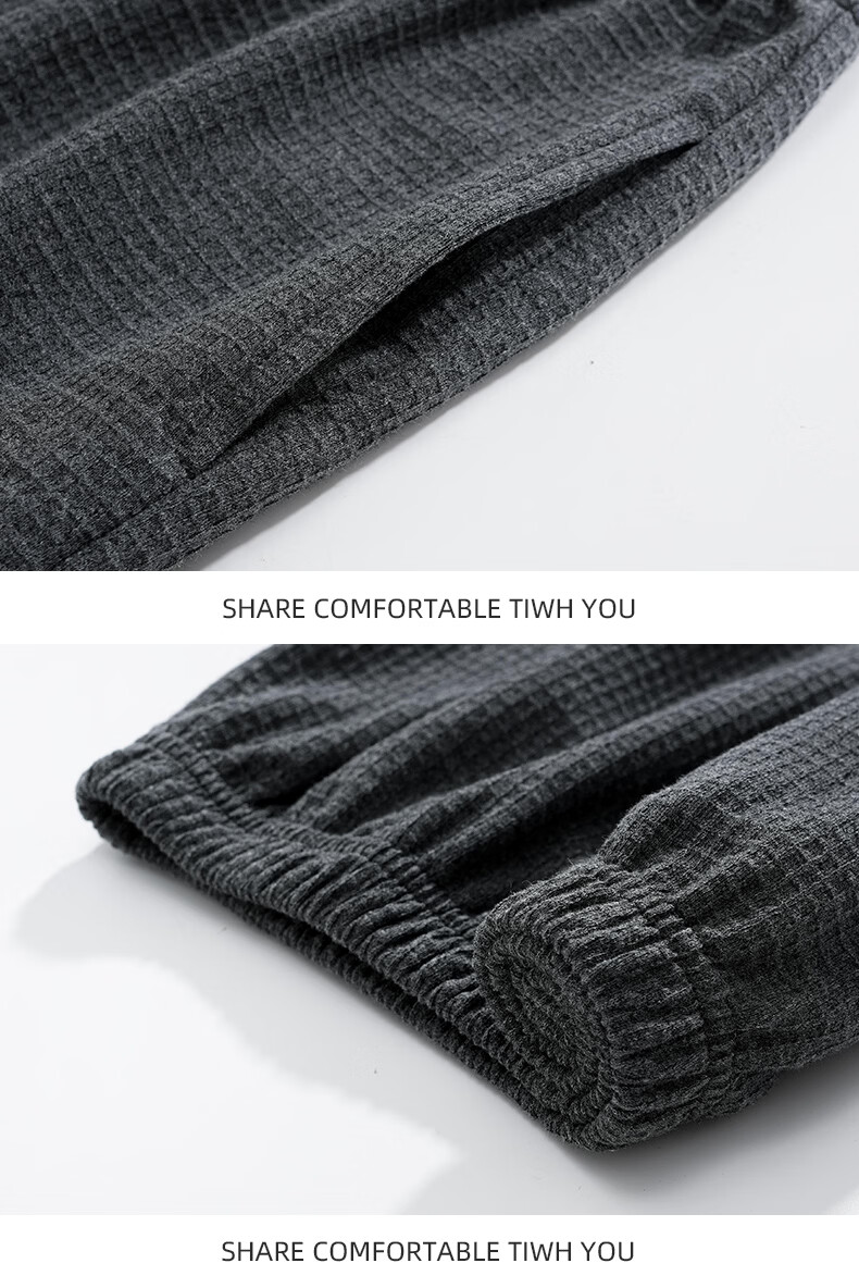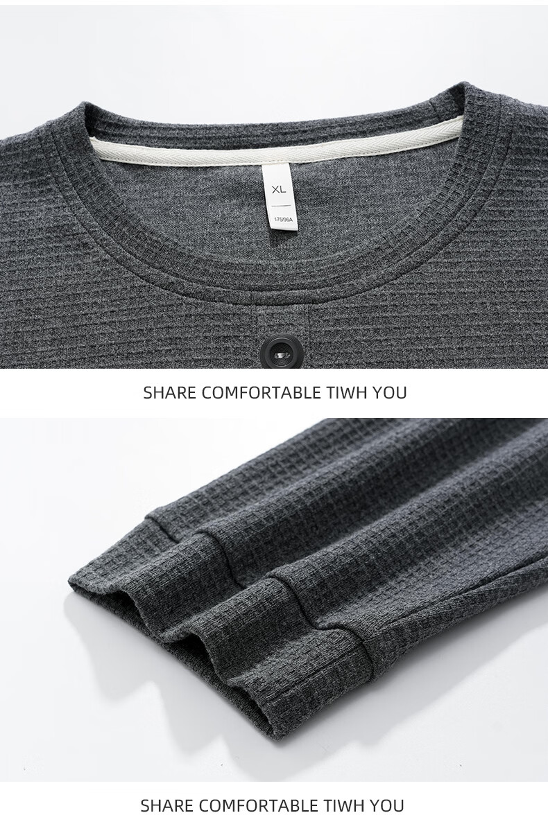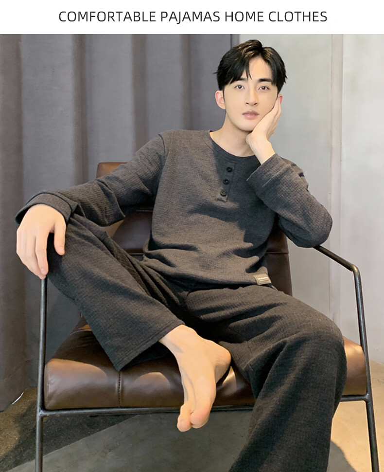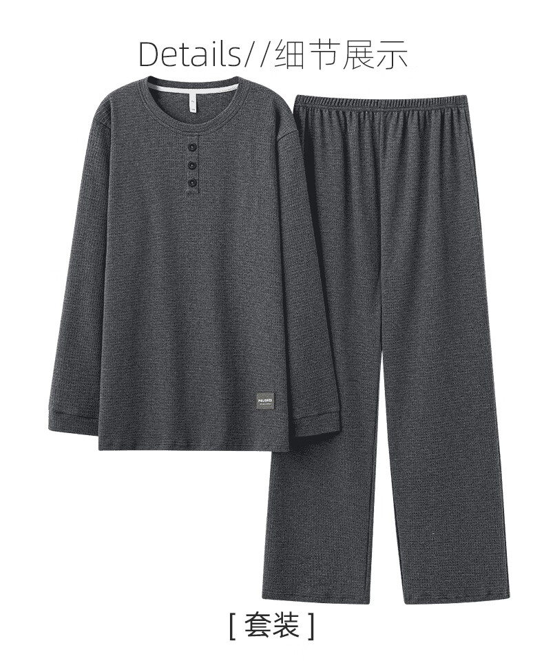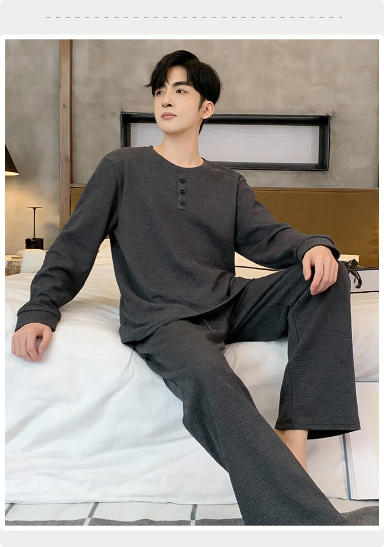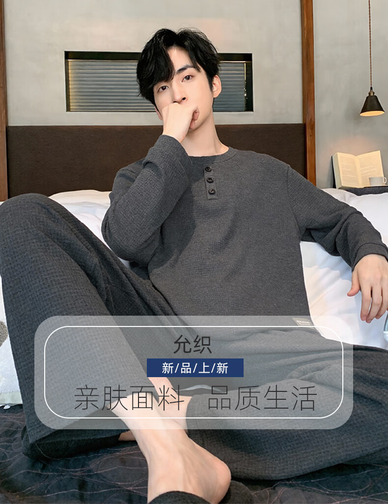 允织华夫格纯棉睡衣男士春秋季新款长袖宽松大码高级感男款家居服套装 8616-深灰 2XL (180) :建议155-180斤穿着