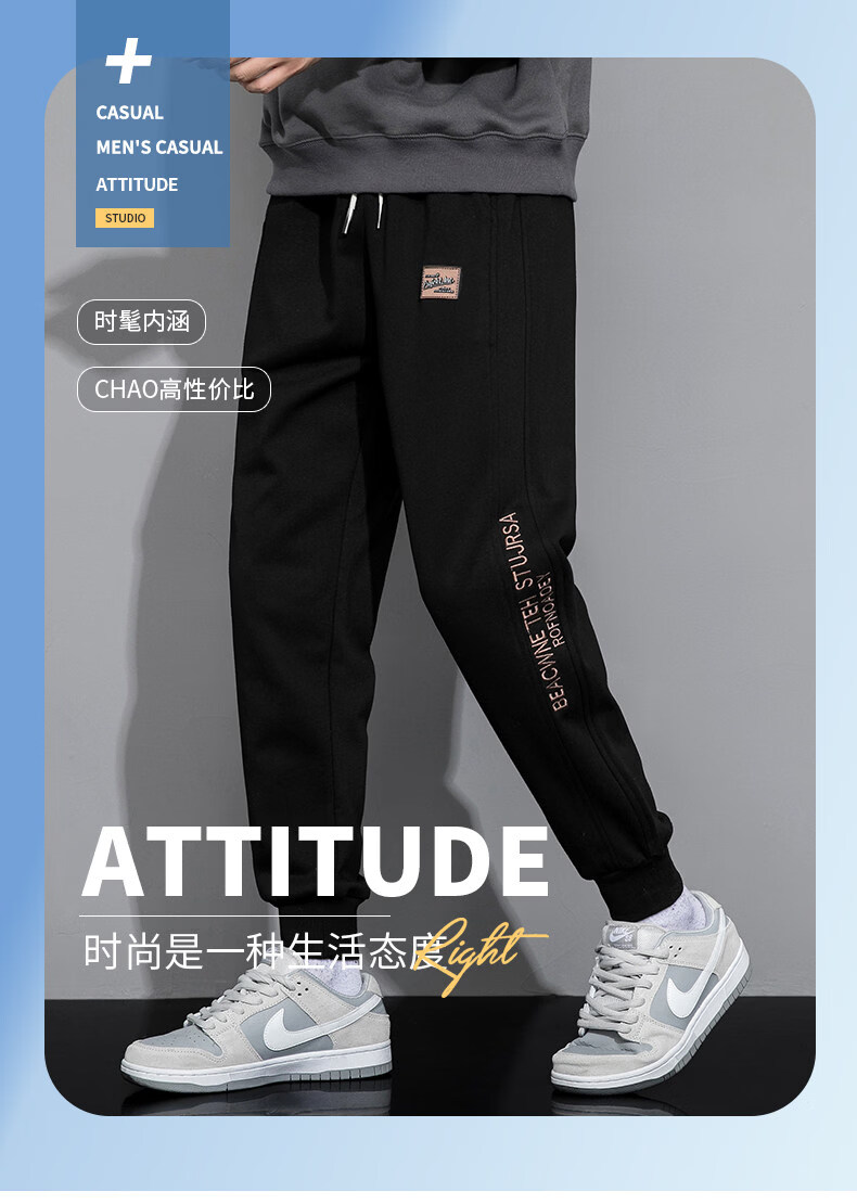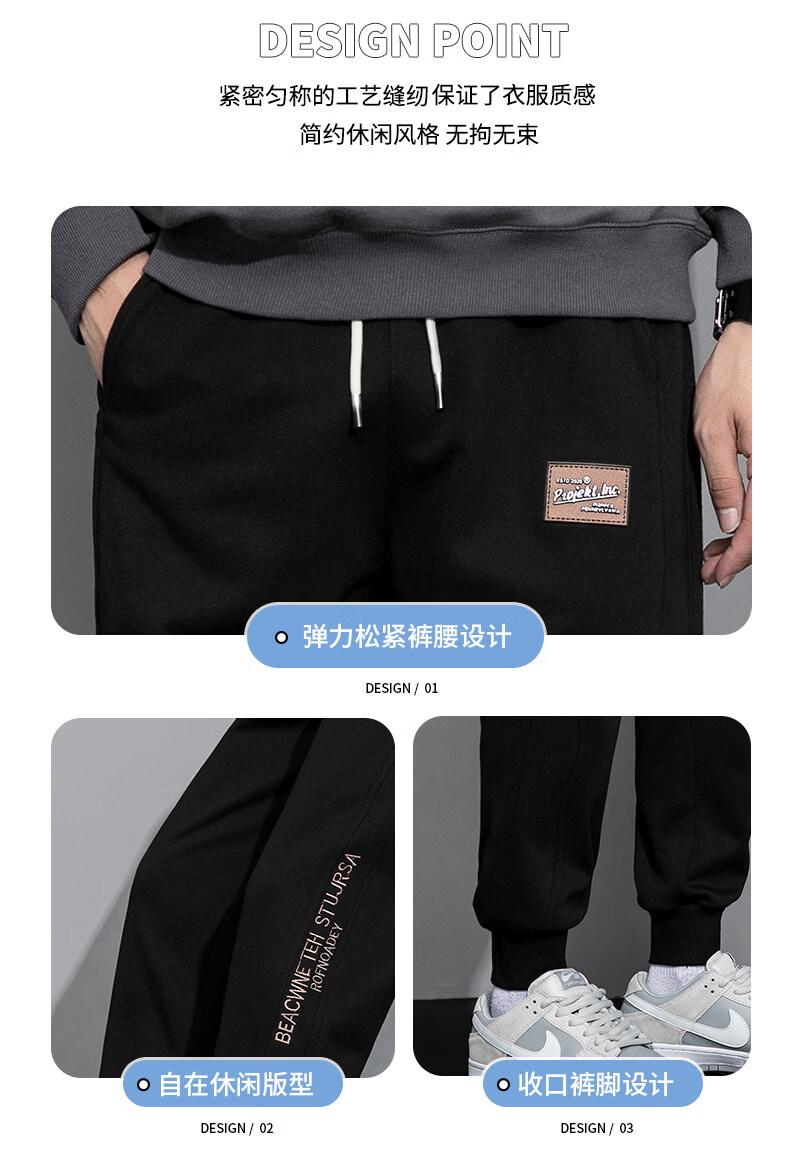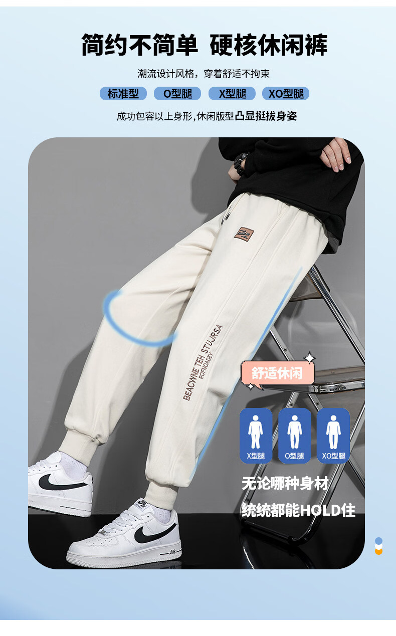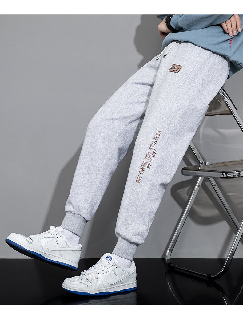 真维斯(Jeanswest)2026新款重磅卫裤男士春季宽松束脚潮牌运动裤休闲简约男装长裤子 麻灰 【春季升级舒适版】 M 【建议90-115斤】