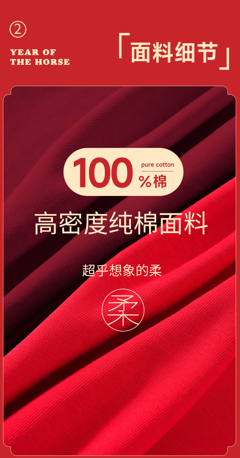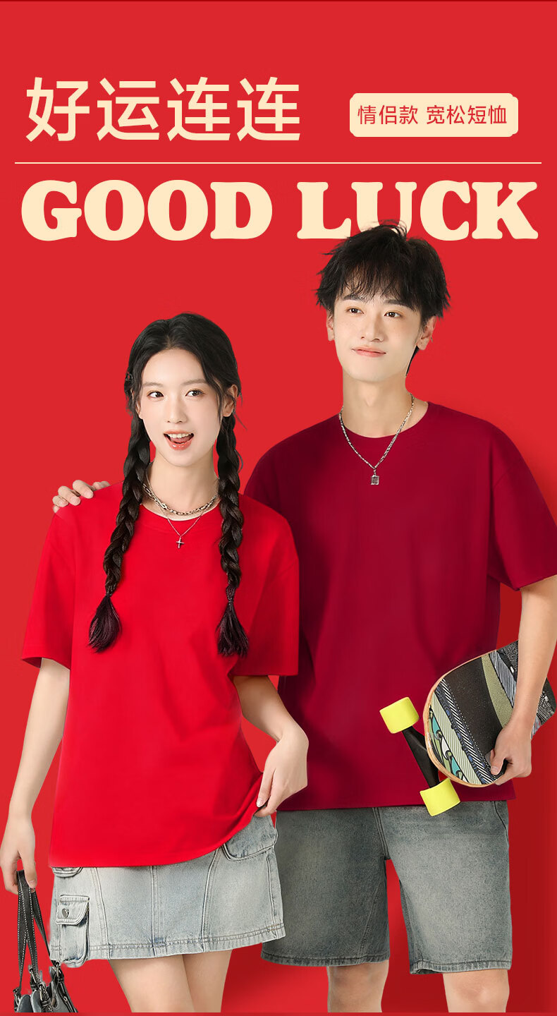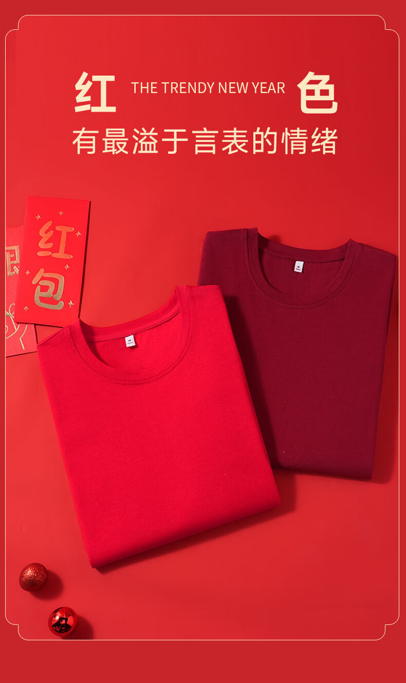 真维斯(Jeanswest)红色短袖t恤男女款纯棉重磅2026本命年衣服男士马年新年喜庆上衣 红色 好事发生马 2XL