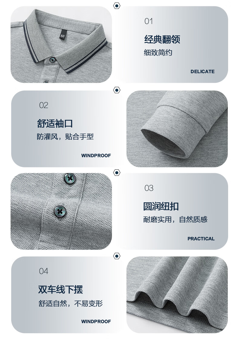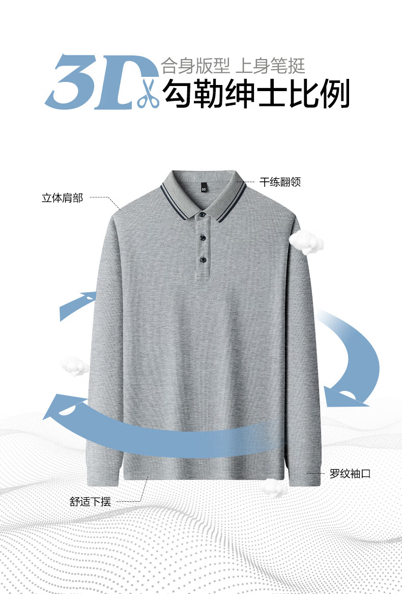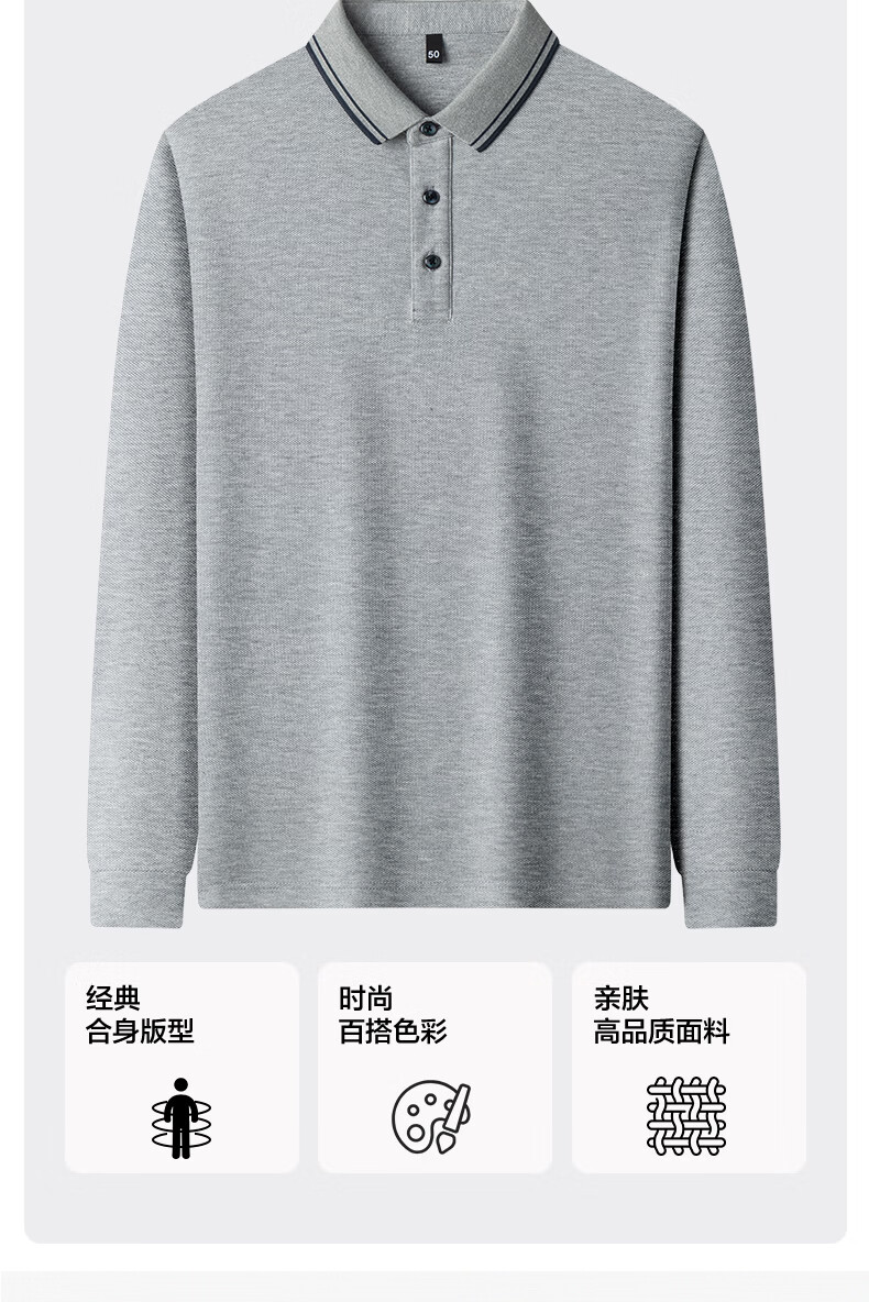 SHANSHAN杉杉纯棉长袖T恤男春季新款纯色百搭男士打底衫商务休闲Polo衫男 花灰色 M /170