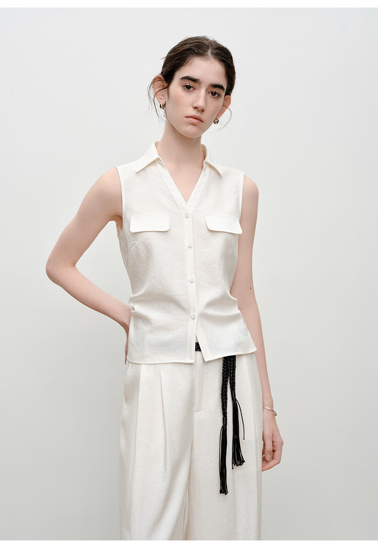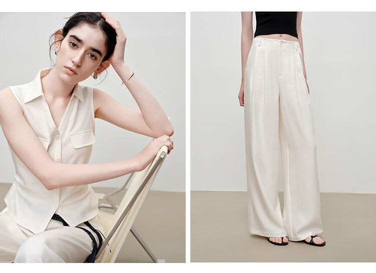 自巧小个子老钱风收腰马甲直筒休闲裤套装女2026夏季新品无袖衬衫 雅白色衬衫 XXS (尺码:1)