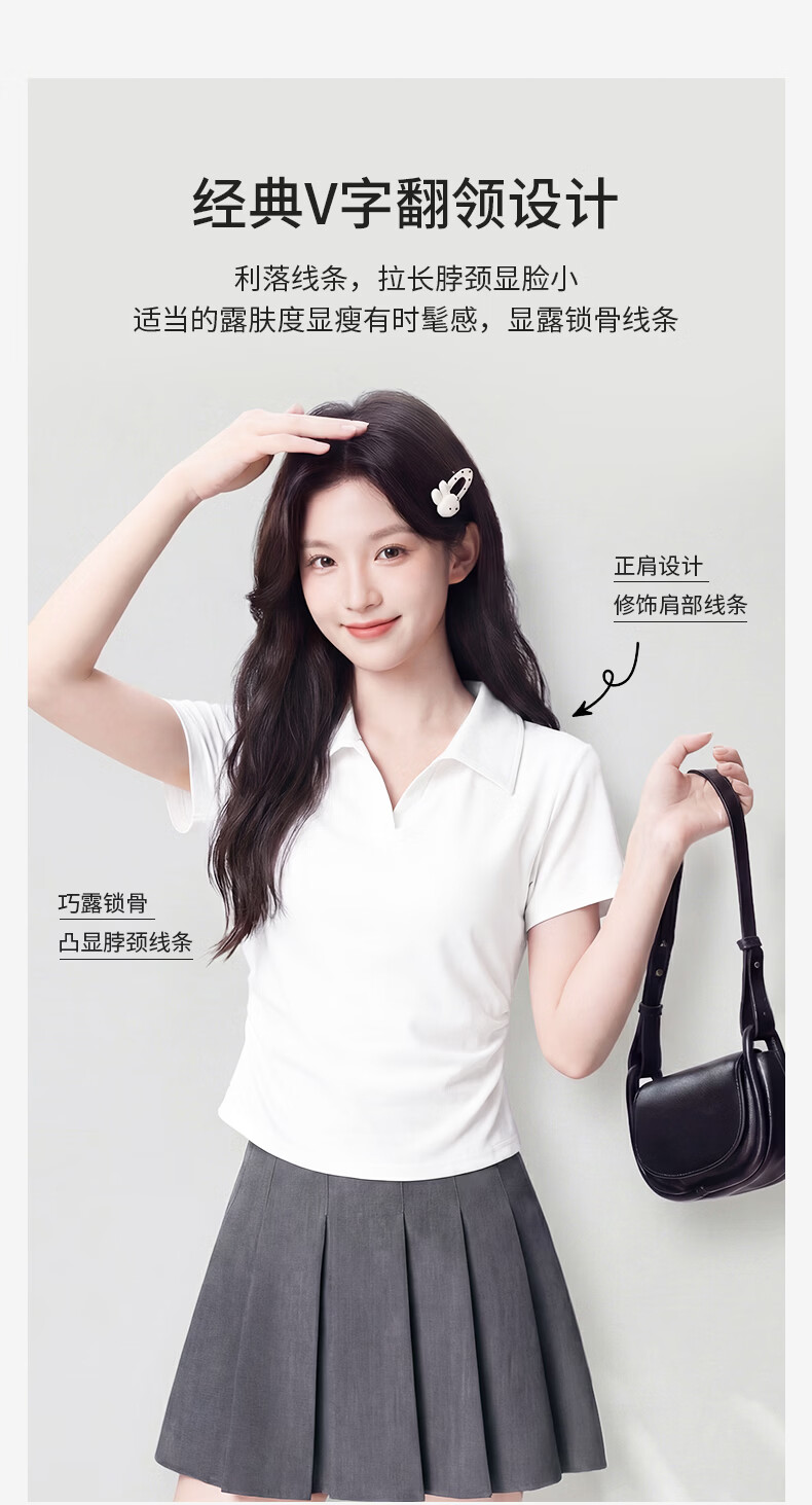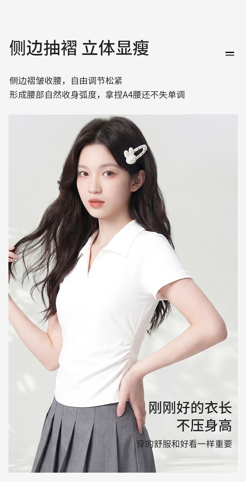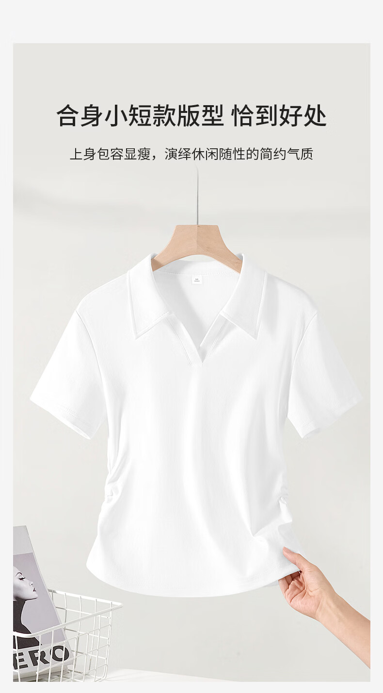 真维斯(Jeanswest)polo衫t恤女2026新款爆款V领正肩短袖修身显瘦女抽皱收腰短款上衣 白色 带帽小熊_K S