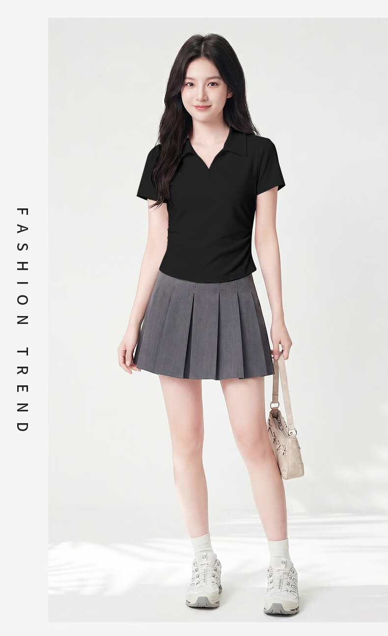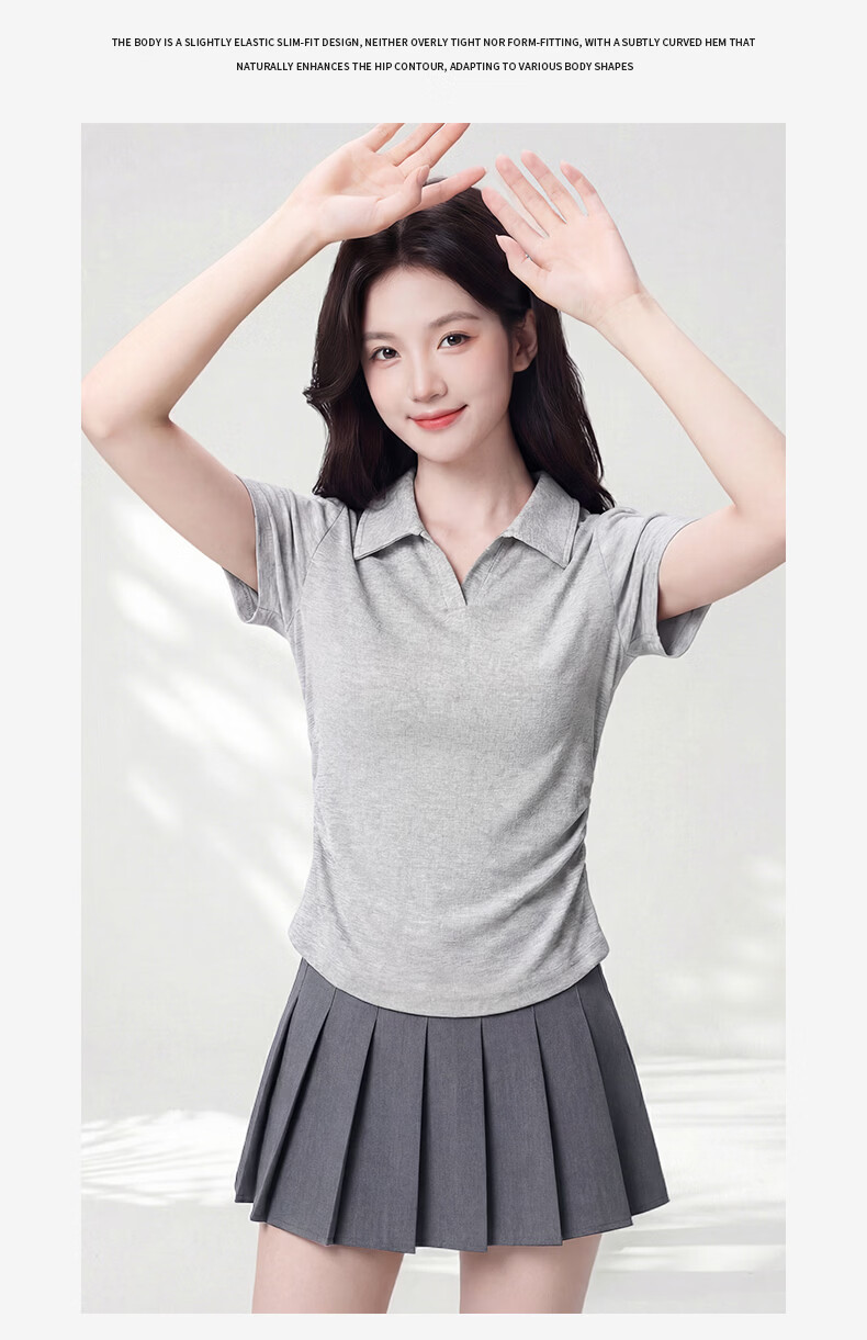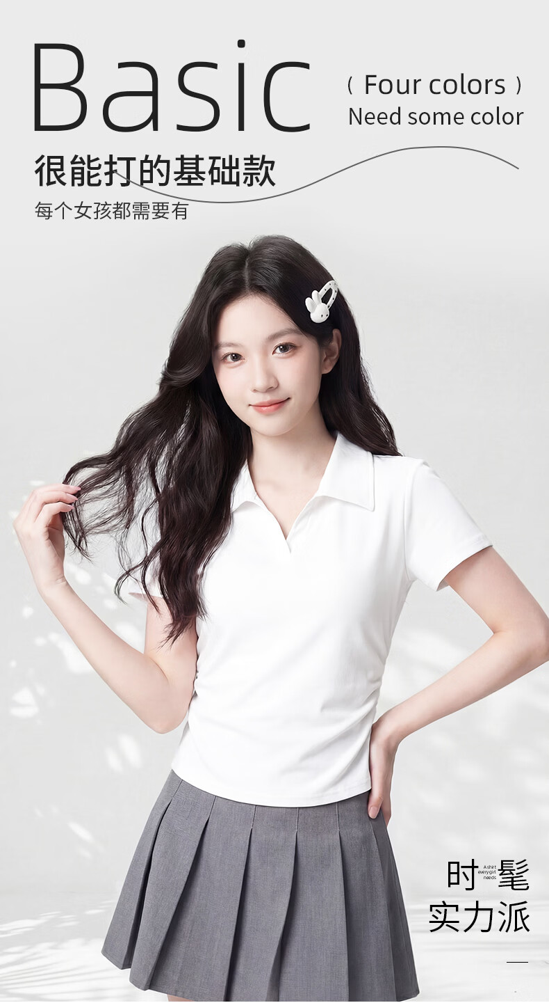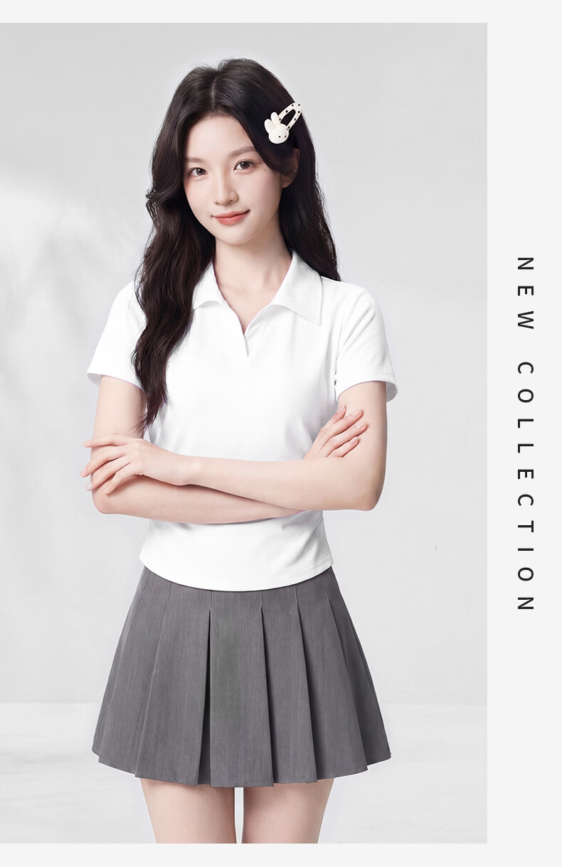 真维斯(Jeanswest)polo衫t恤女2026新款爆款V领正肩短袖修身显瘦女抽皱收腰短款上衣 白色 带帽小熊_K S