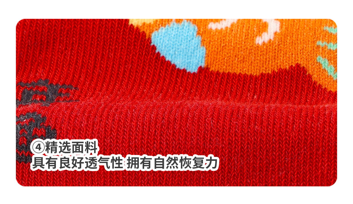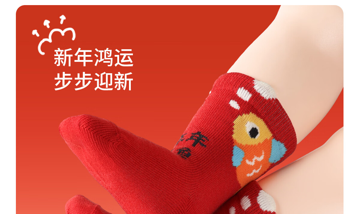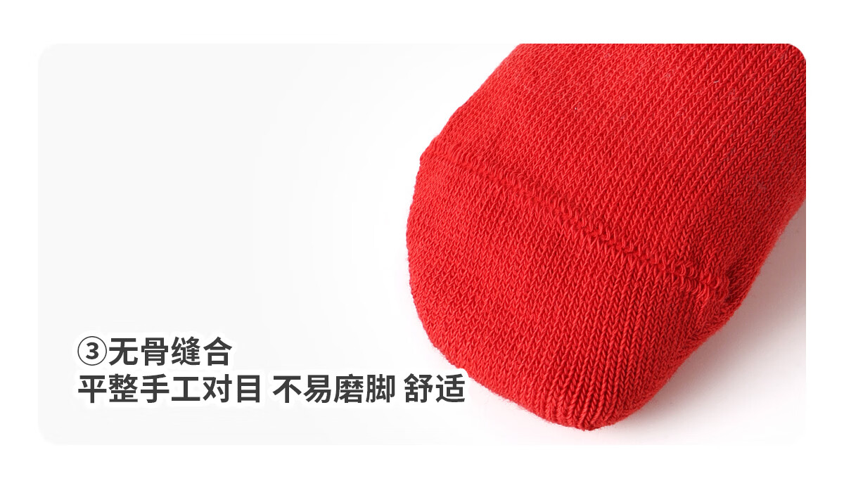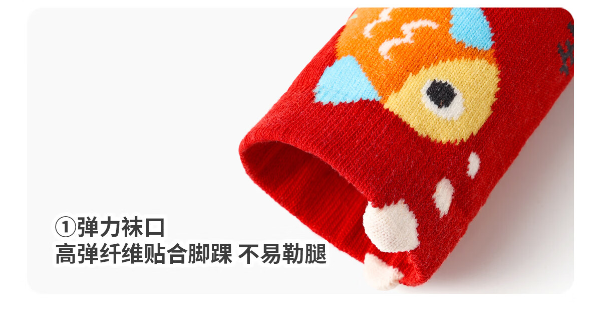 斑比100%棉马年婴儿新年红色袜子秋冬季棉袜新生儿宝宝无骨中筒袜 B468 婴儿新年红袜(100%棉 袜筒加长) 3双 2-3岁 底长11.5-12cm【12-14】