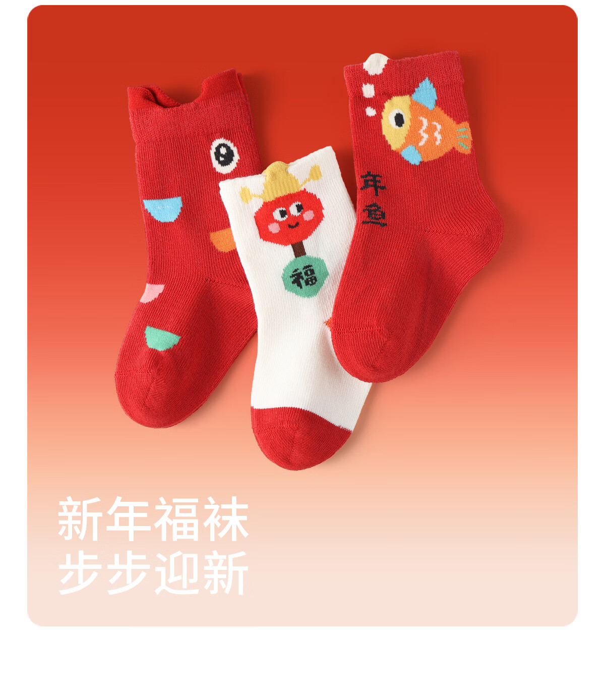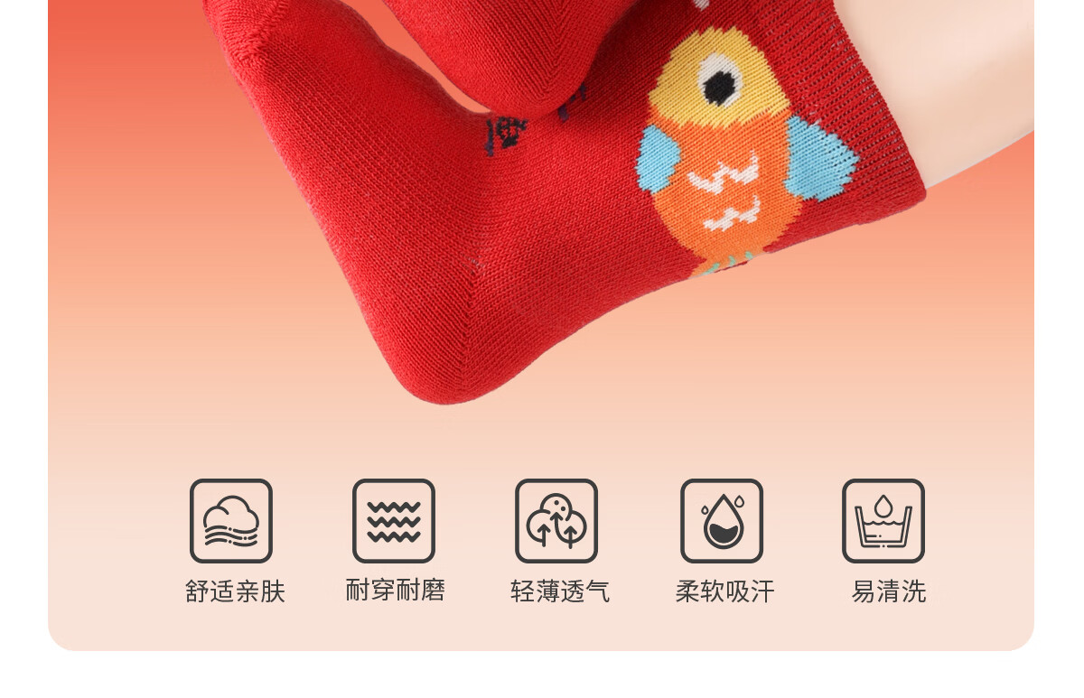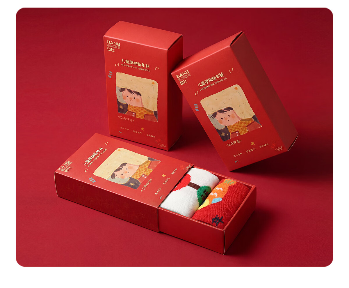 斑比100%棉马年婴儿新年红色袜子秋冬季棉袜新生儿宝宝无骨中筒袜 B468 婴儿新年红袜(100%棉 袜筒加长) 3双 2-3岁 底长11.5-12cm【12-14】