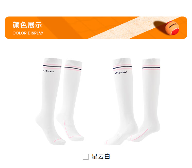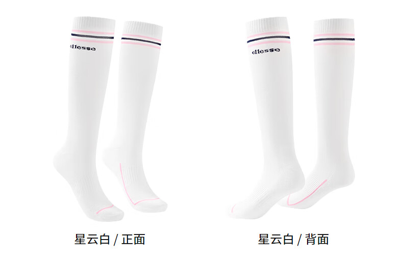 ellesse小贝壳舒适亲肤弹力撞色长筒运动袜女 星云白 F