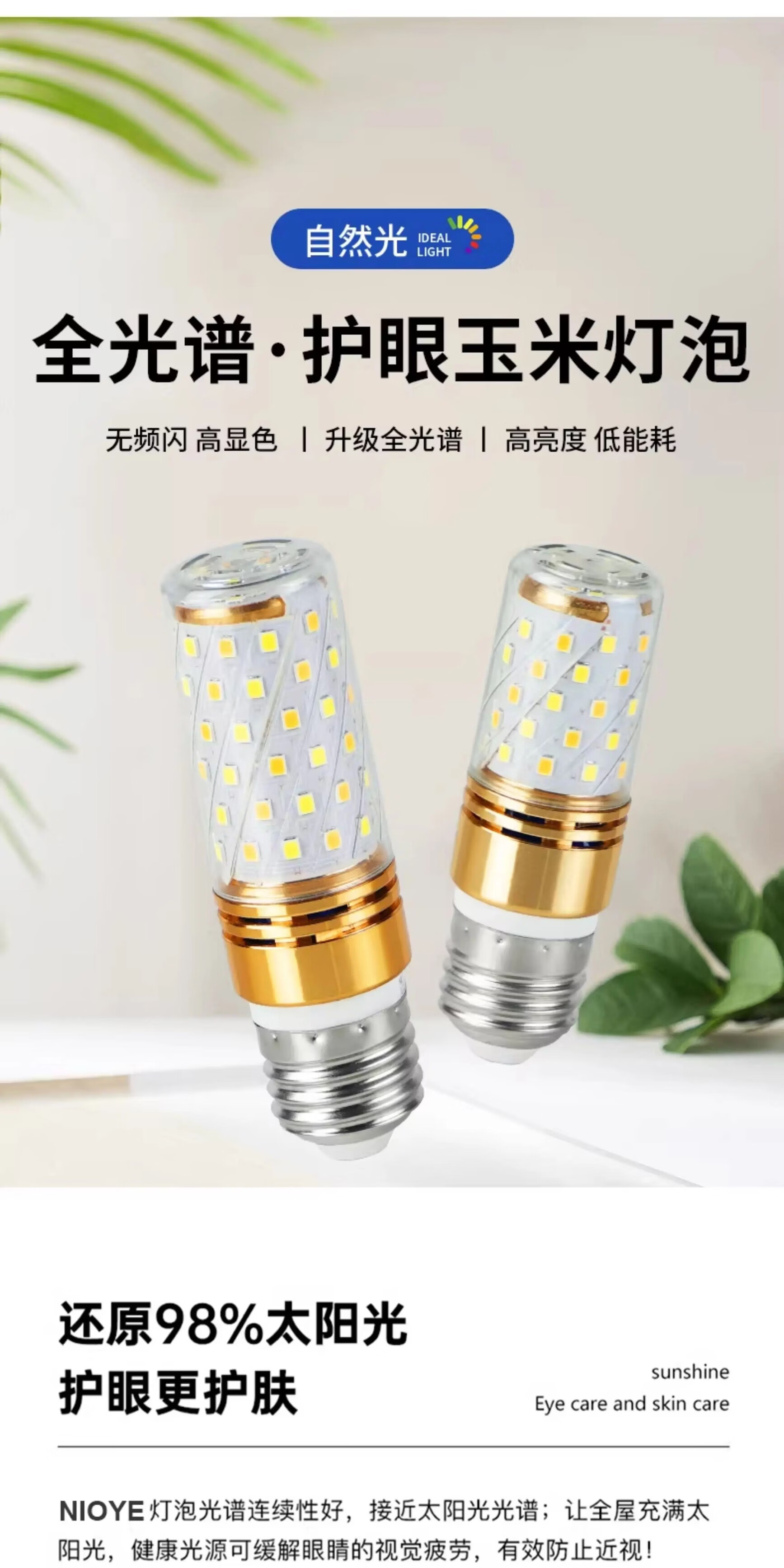 金匠空间全光谱灯泡LED超亮护眼家用落地灯台灯吊灯护眼E27国标灯泡 全光谱灯泡_三色变光