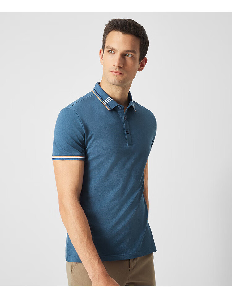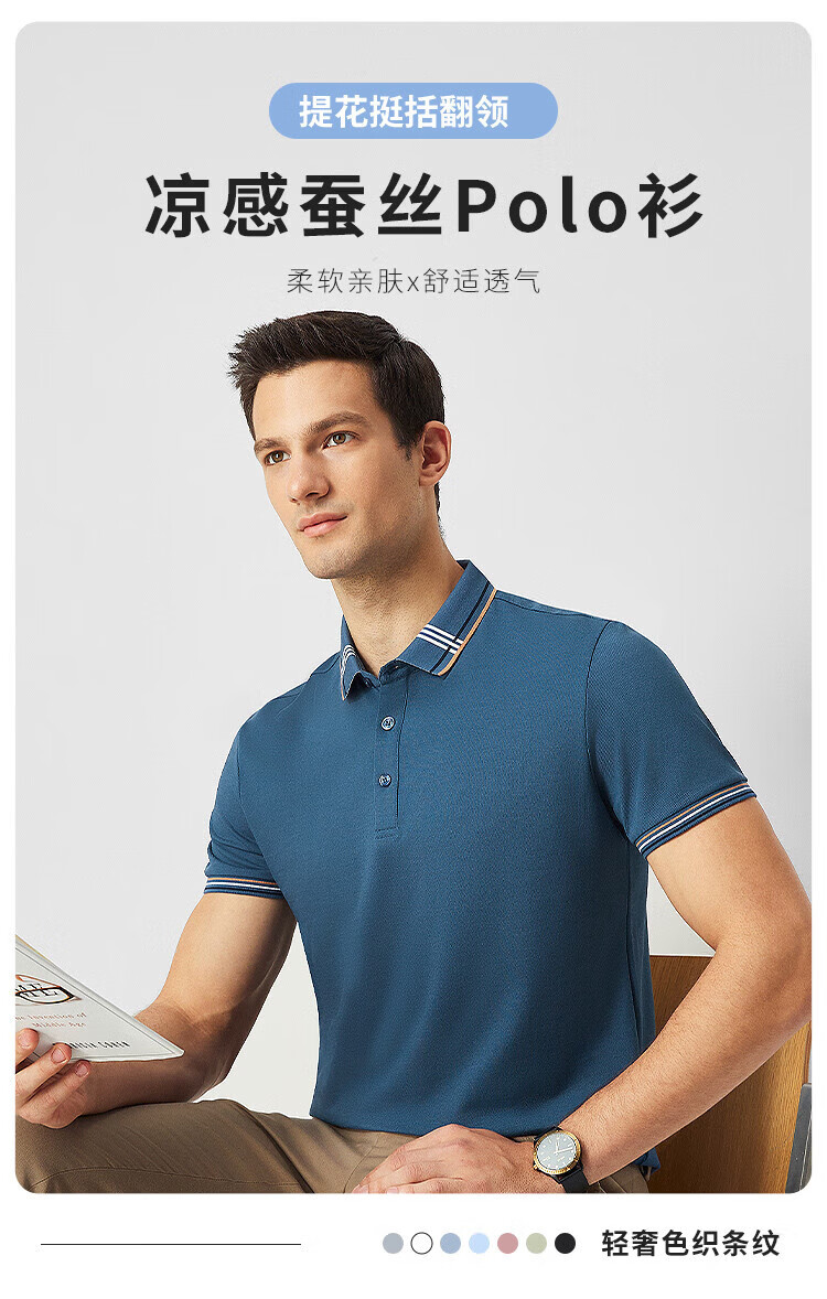 杉杉(FIRS)夏季短袖polo衫男士撞色罗纹商务休闲上衣舒适亲肤半袖桑蚕丝体恤 藏青 M (170/88A)