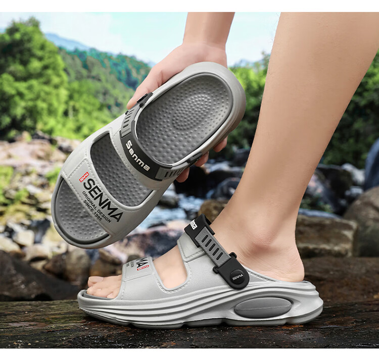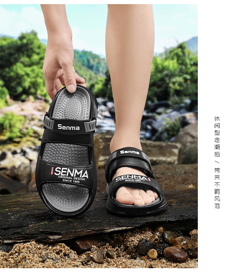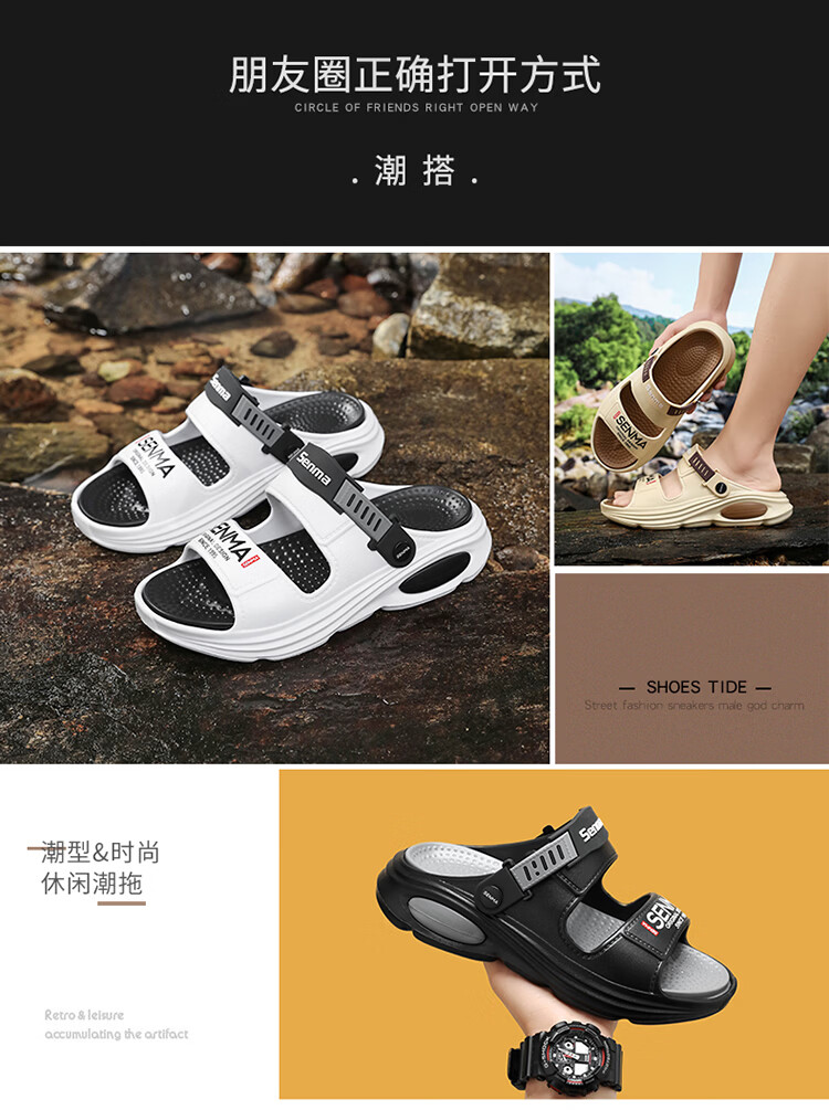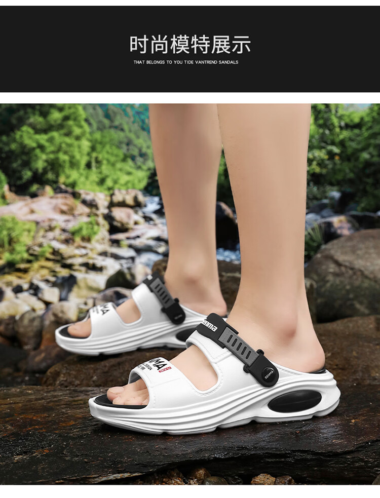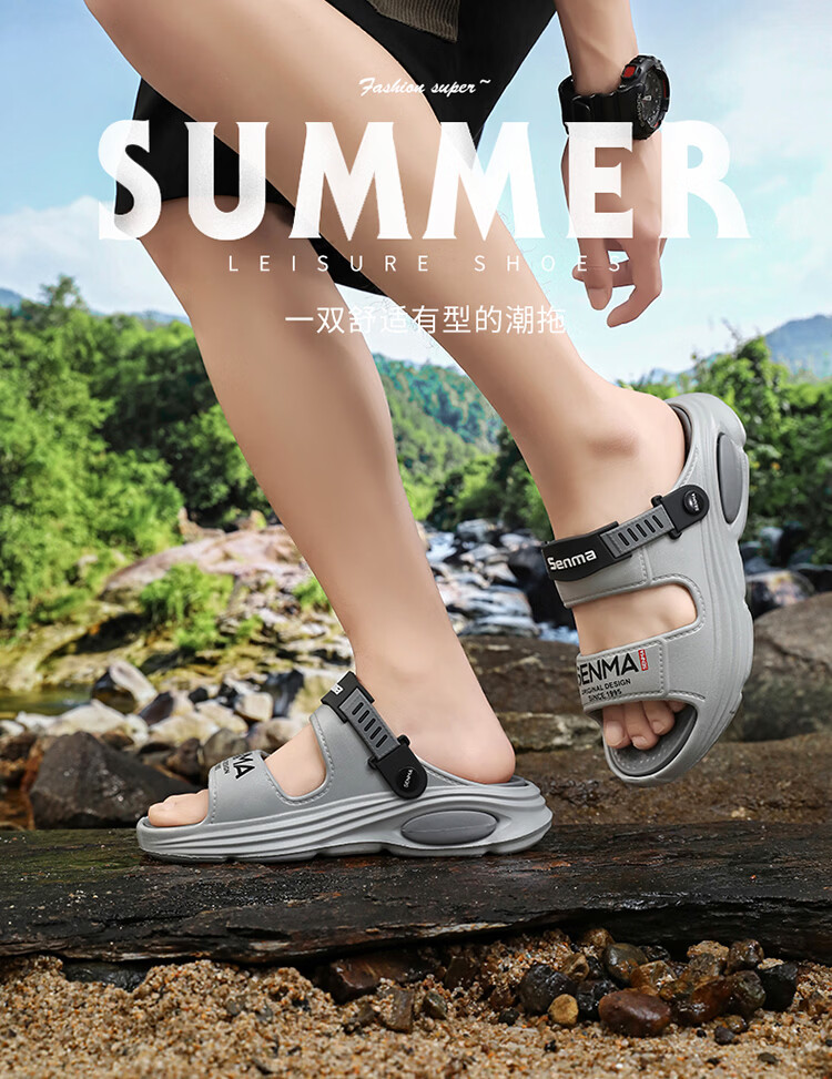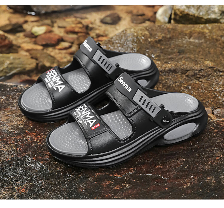 森馬拖鞋男士2026新款夏季潮流外穿厚底凉拖鞋两穿防滑运动开车沙滩鞋 黑色【基础款】 36-37 【现货秒发】