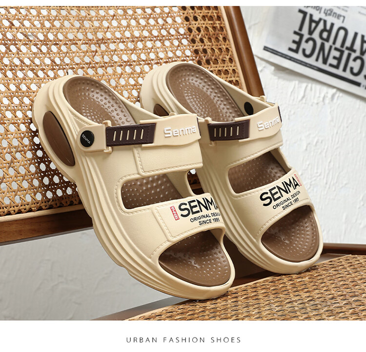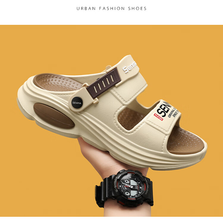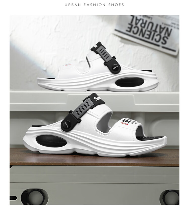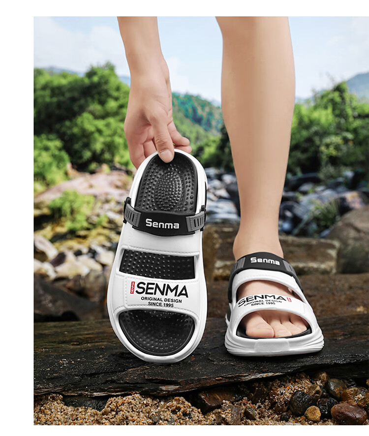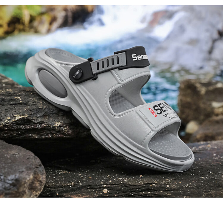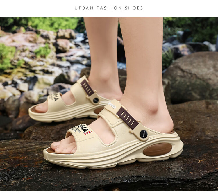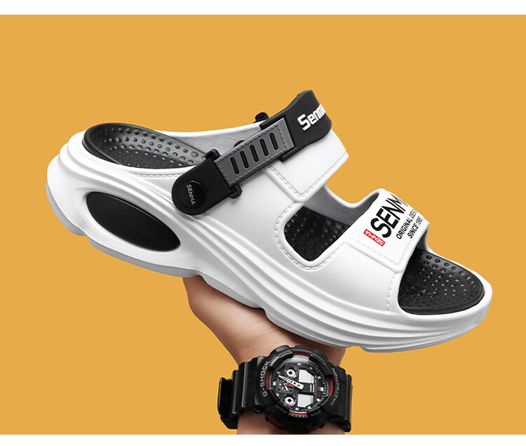 森馬拖鞋男士2026新款夏季潮流外穿厚底凉拖鞋两穿防滑运动开车沙滩鞋 黑色【基础款】 36-37 【现货秒发】