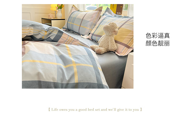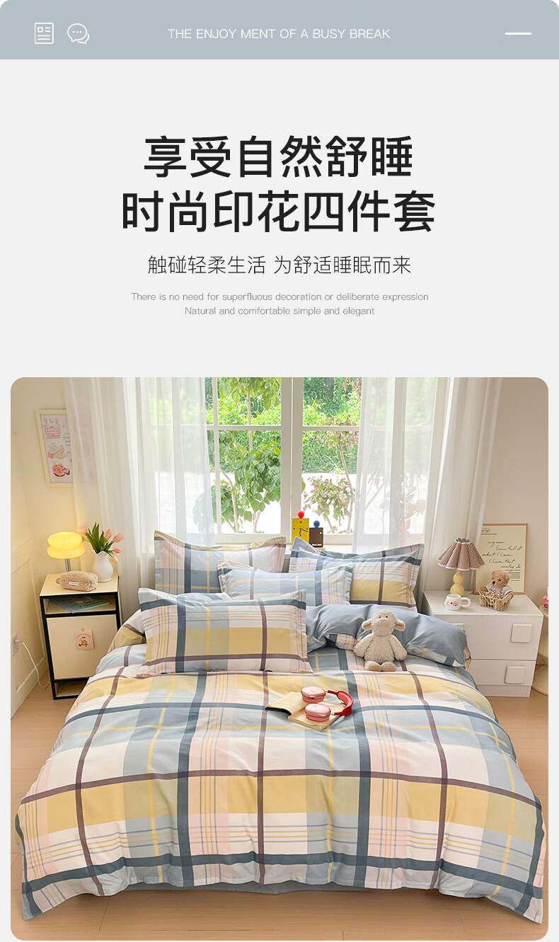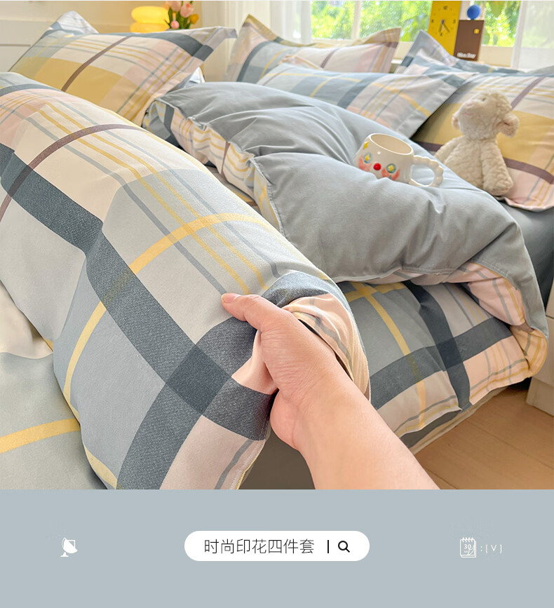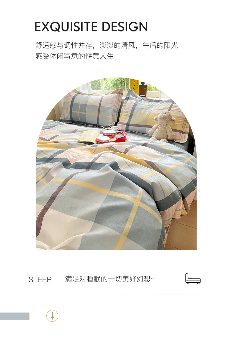 南极人(Nanjiren)磨毛被套150x200cm单件家用单双人被罩床单床上四件套床上用品 英伦格 【柔软亲肤 四季通用】 单被套-150*200cm