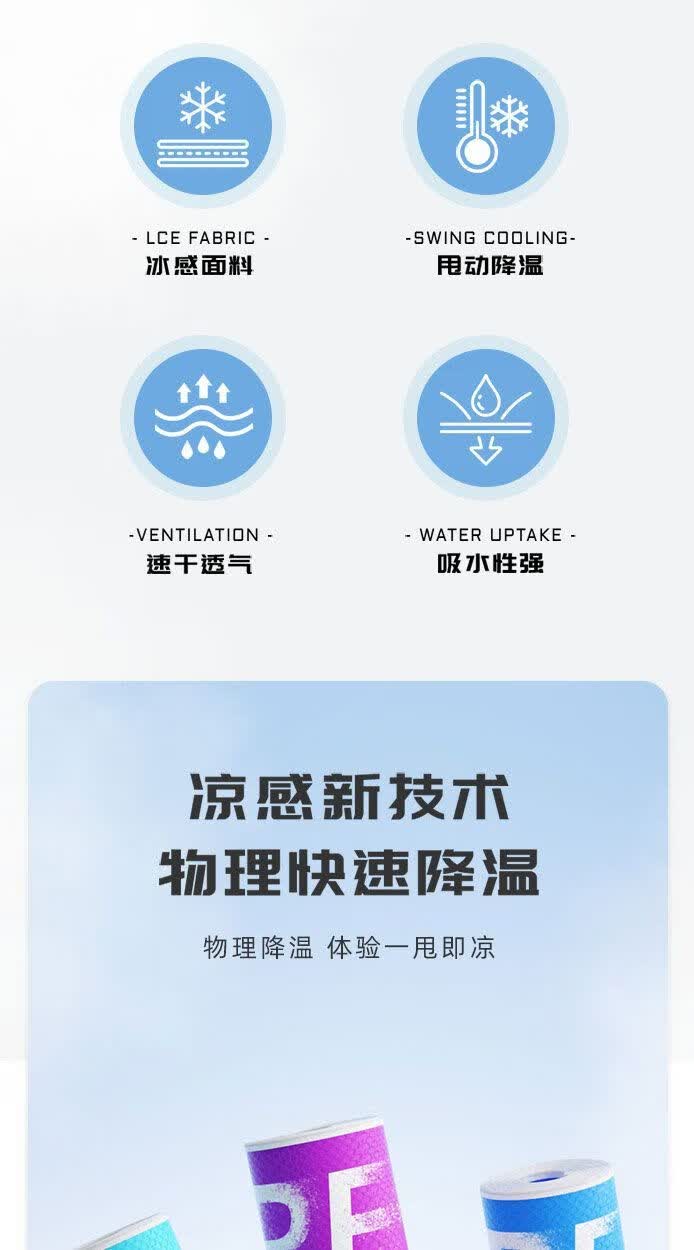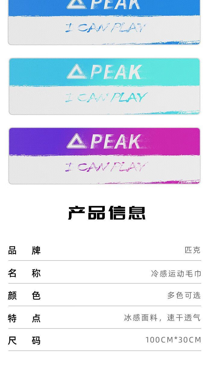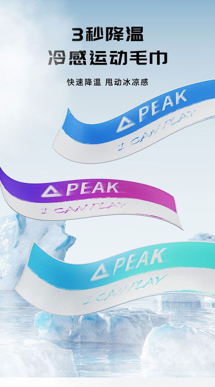 匹克(PEAK)冷感运动毛巾冰丝吸汗降温汗巾速干跑步瑜伽健身房吸水毛巾 蓝白渐变30*60