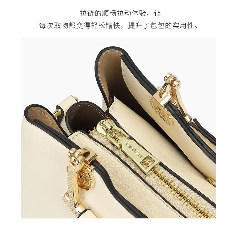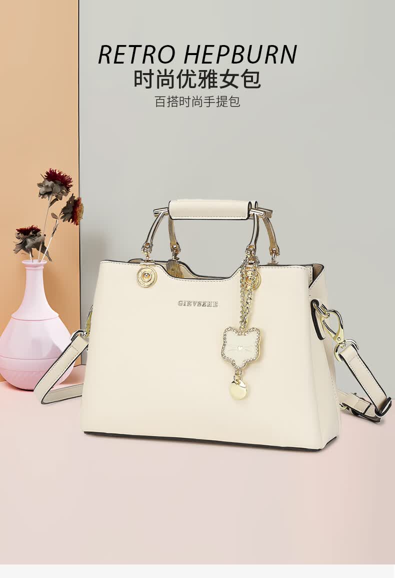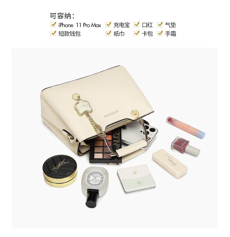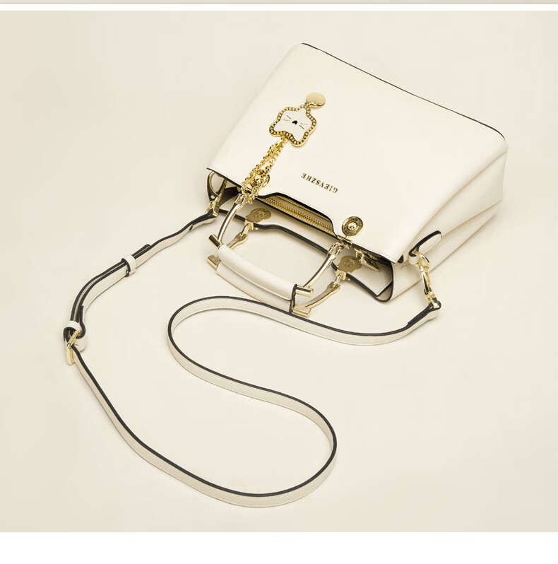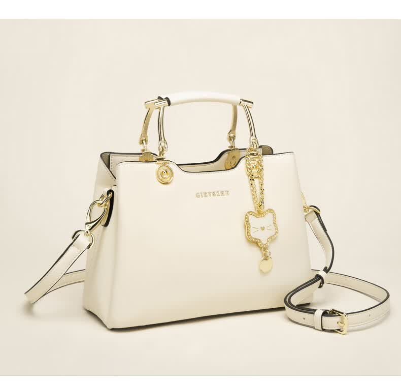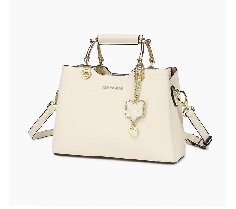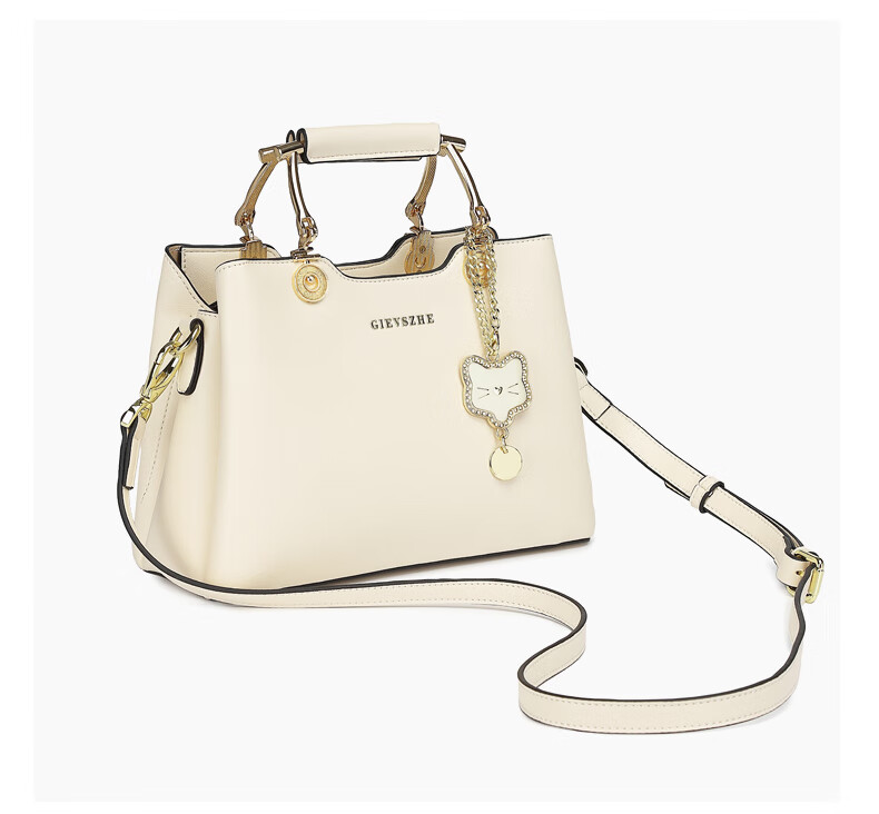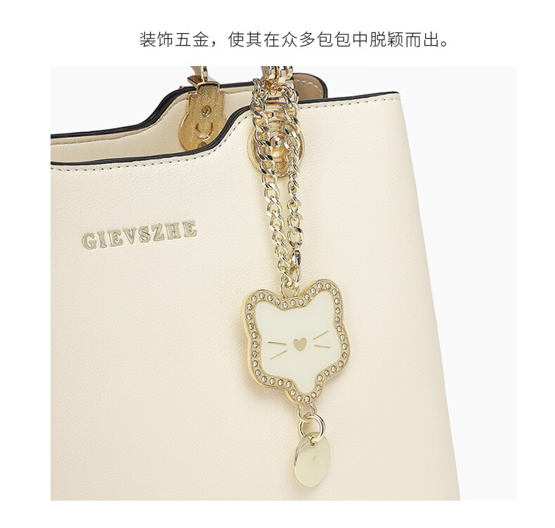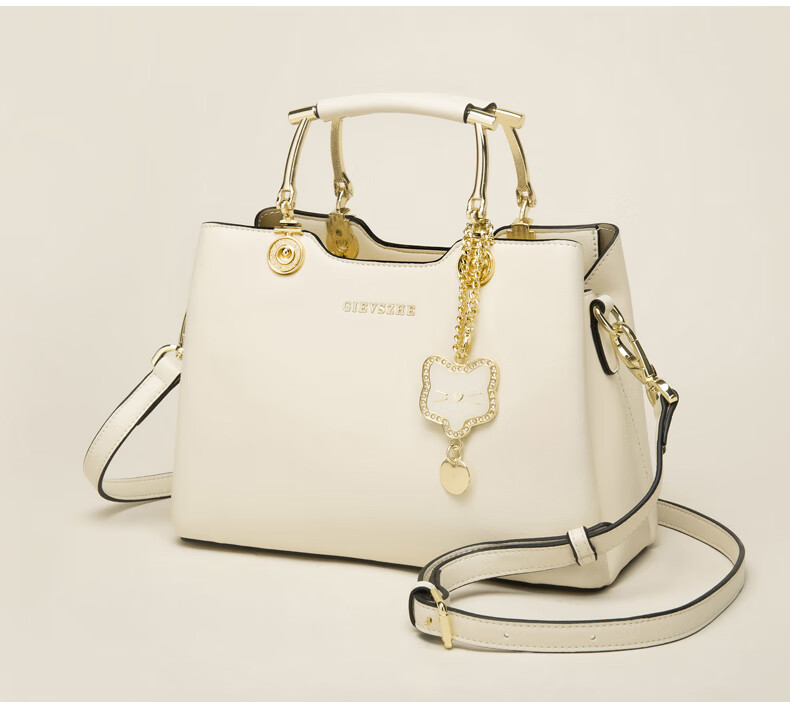 纪诗哲品牌包包女包2026年新款奢侈女士手提包情人节生日礼物送老婆女友 米白色【猫咪挂件】 中包